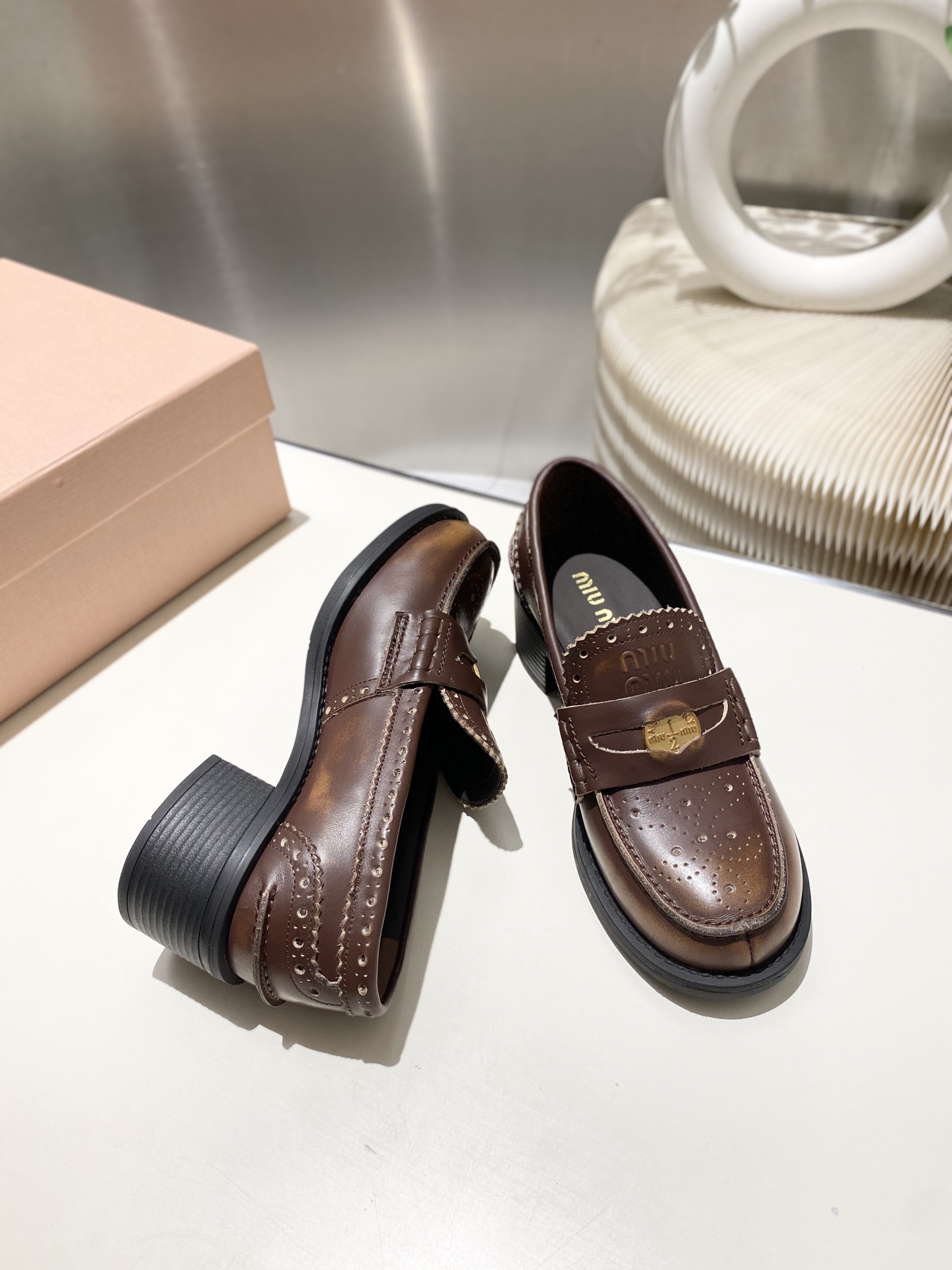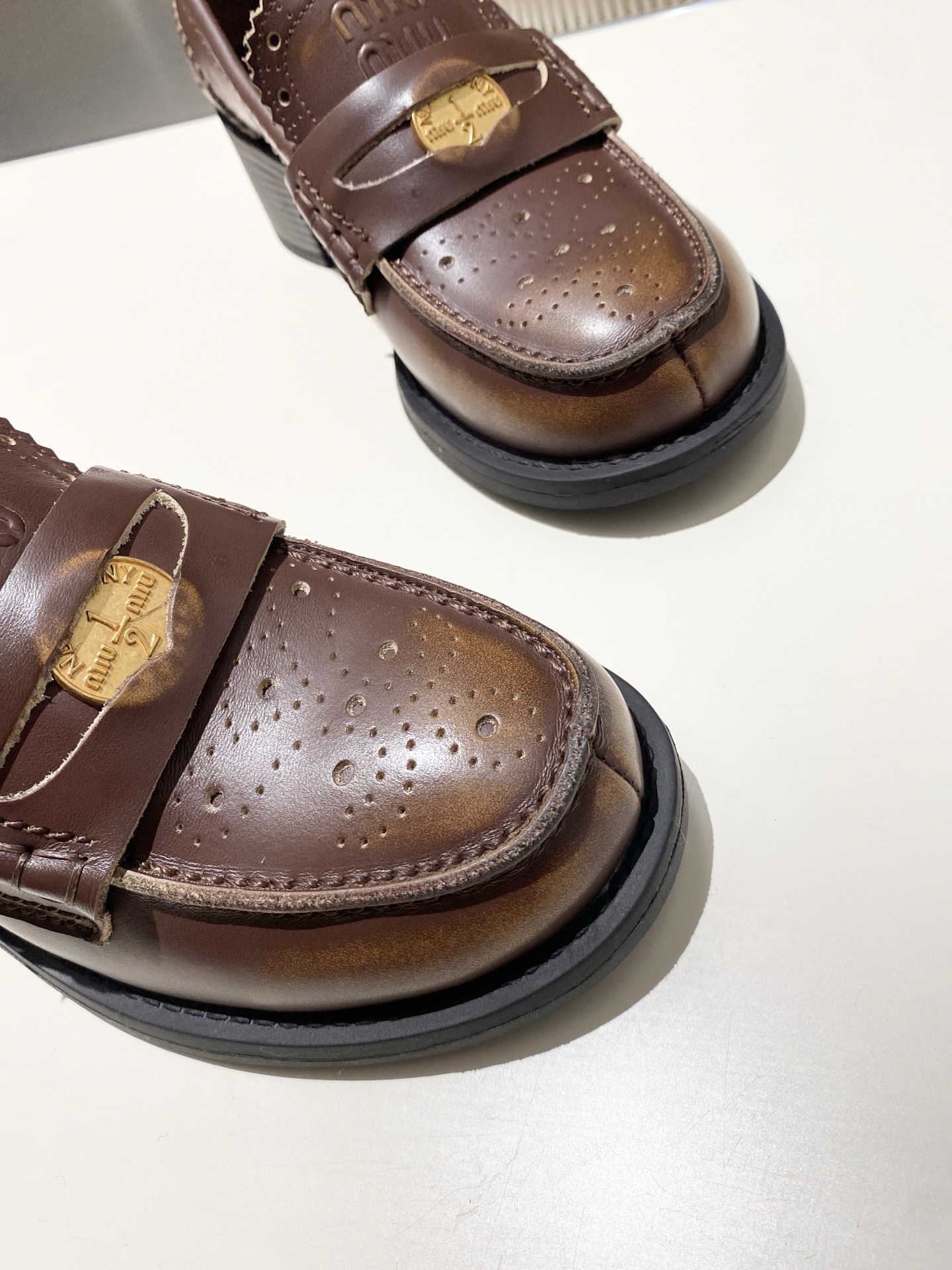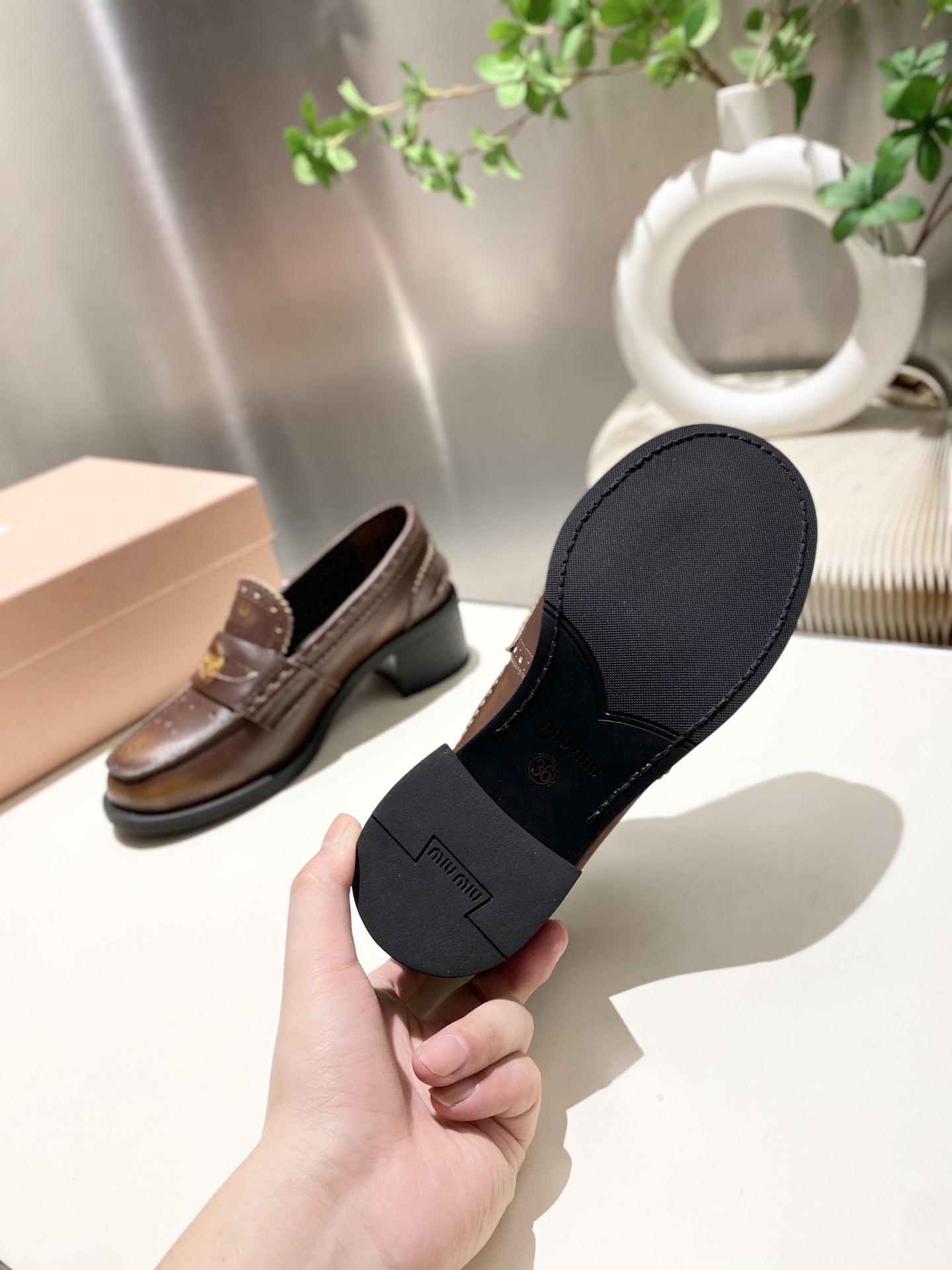 这款鞋子是AAAAA 1:1 质量 (非常棒). 使用了和原版一模一样的材料. 商标部分也保持了和缪缪/Miu Miu一样. 图片拍摄是实物鞋子拍摄, 您所收到的实物保证和我们图片一模一样.