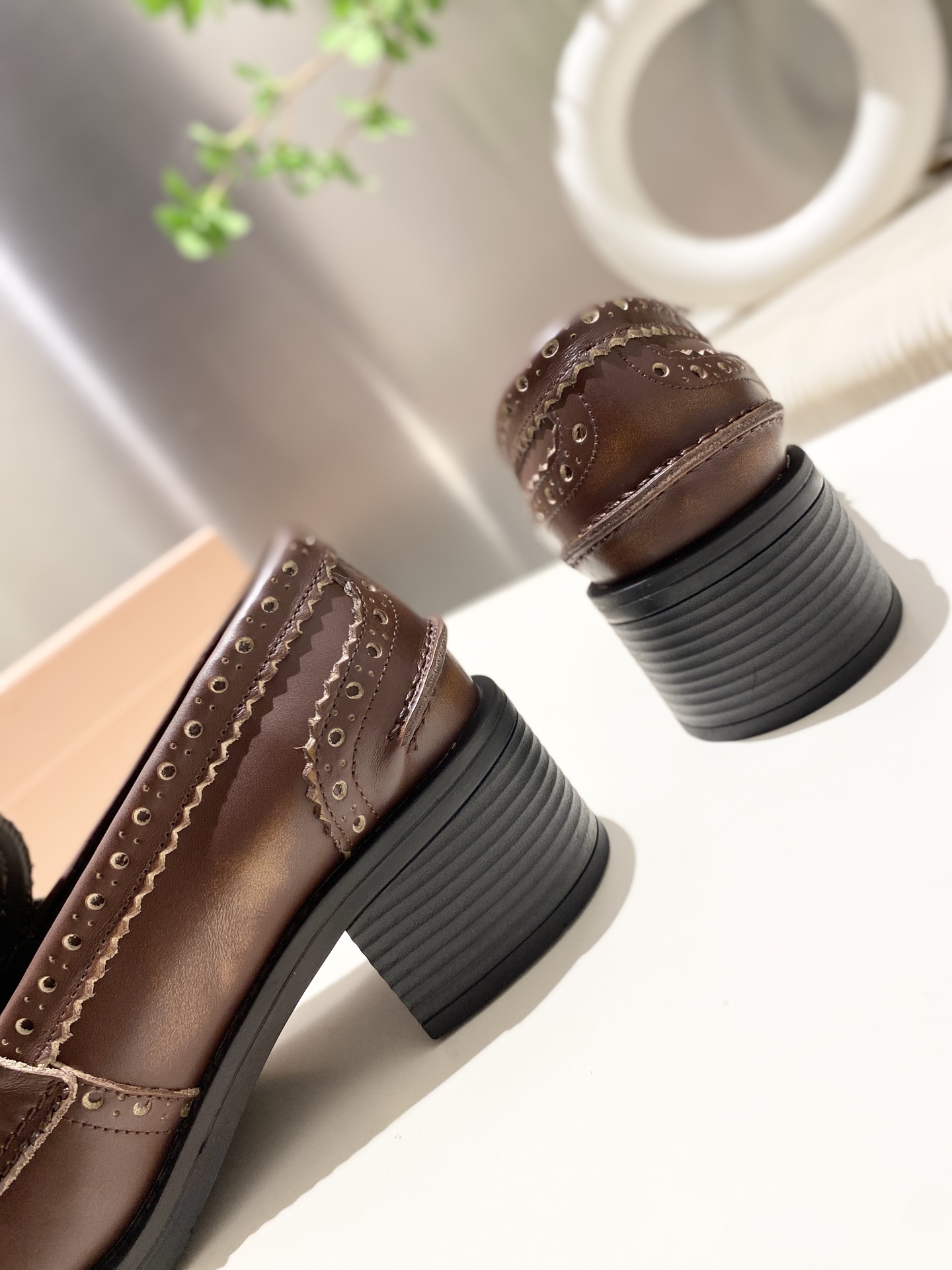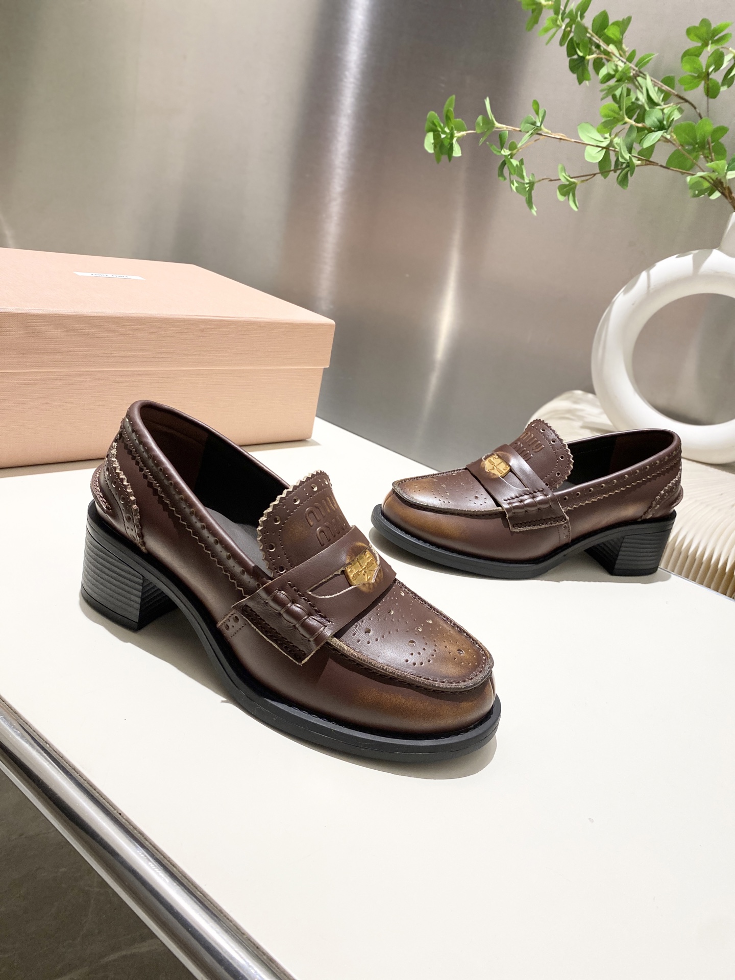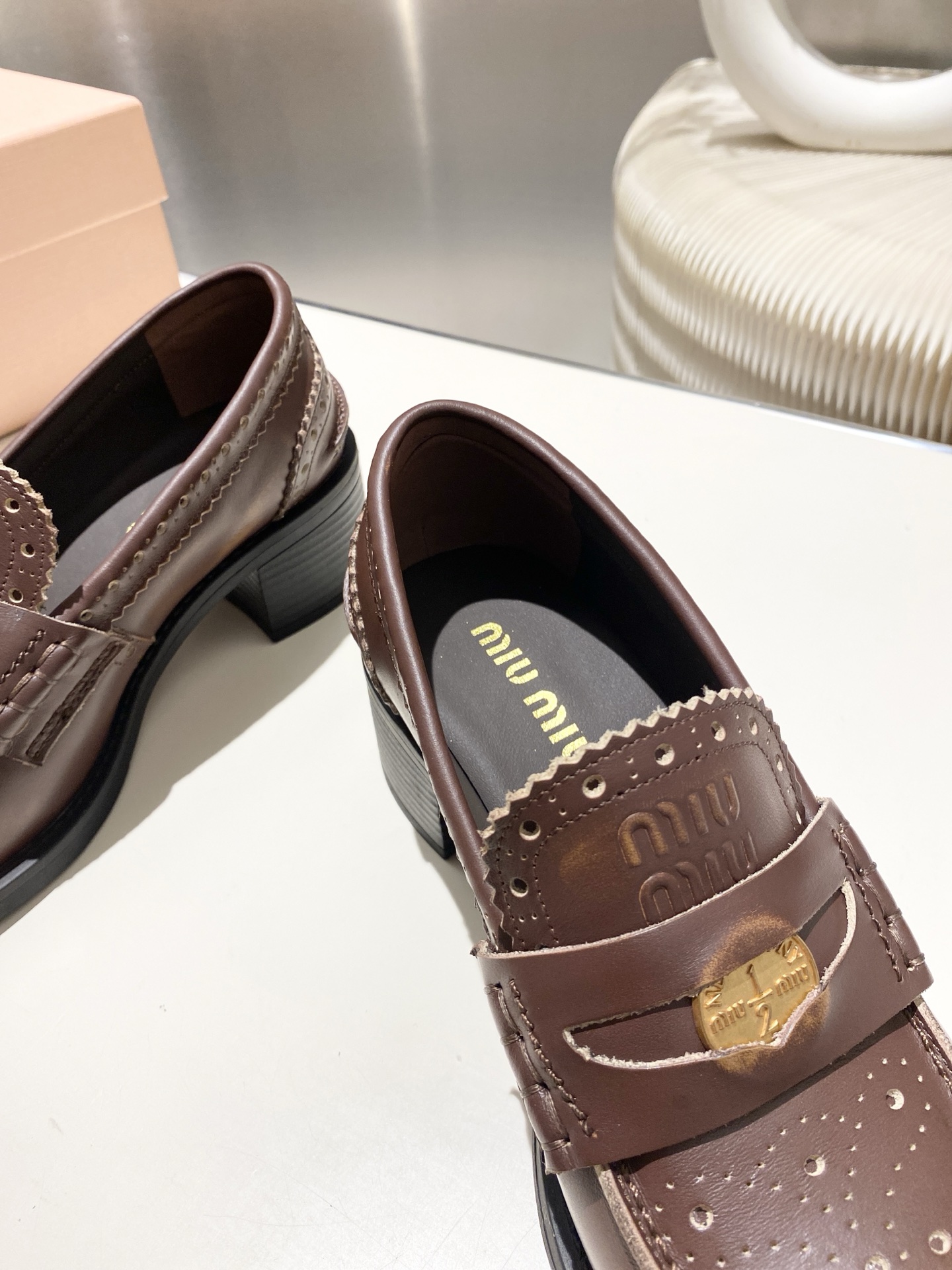 这款鞋子是AAAAA 1:1 质量 (非常棒). 使用了和原版一模一样的材料. 商标部分也保持了和缪缪/Miu Miu一样. 图片拍摄是实物鞋子拍摄, 您所收到的实物保证和我们图片一模一样.