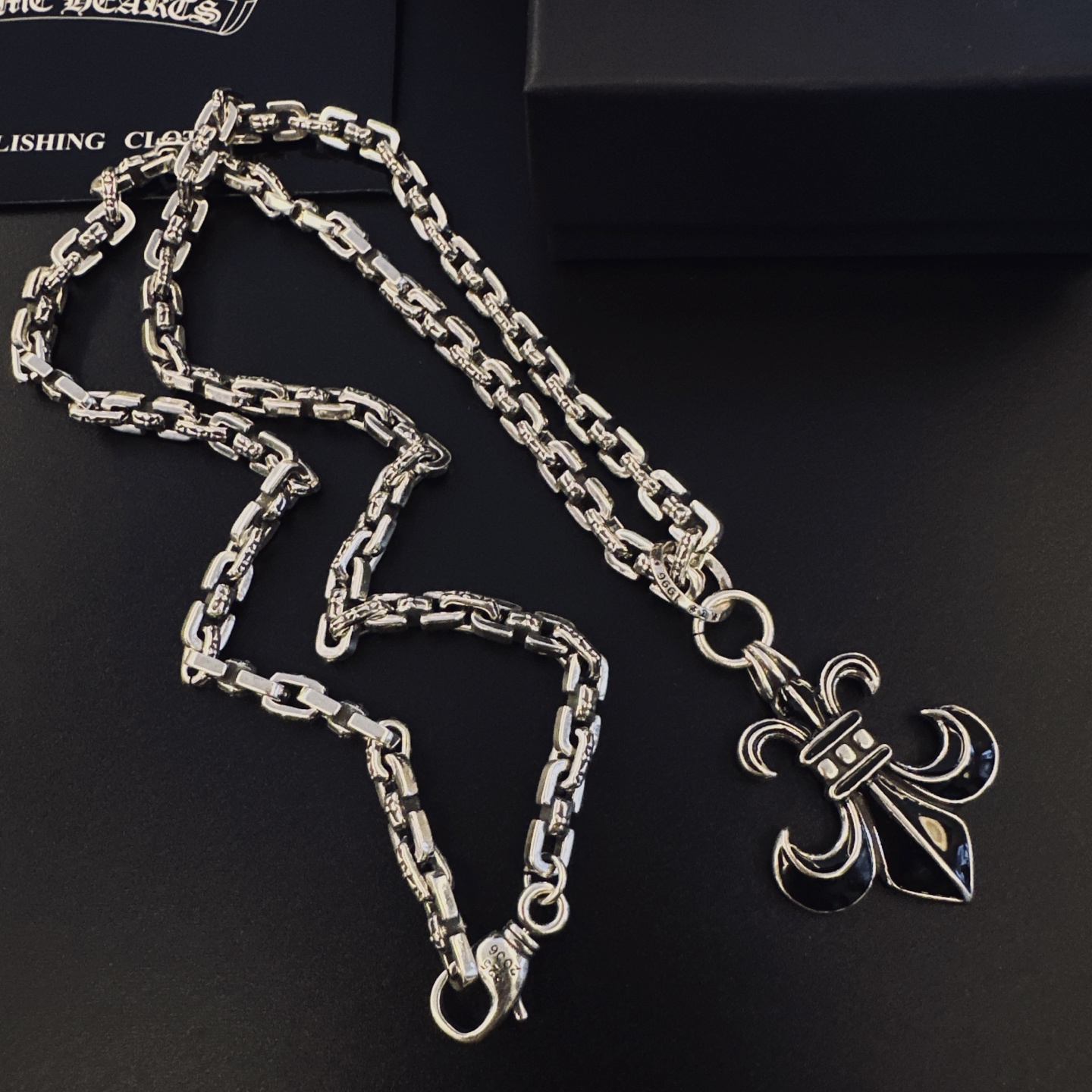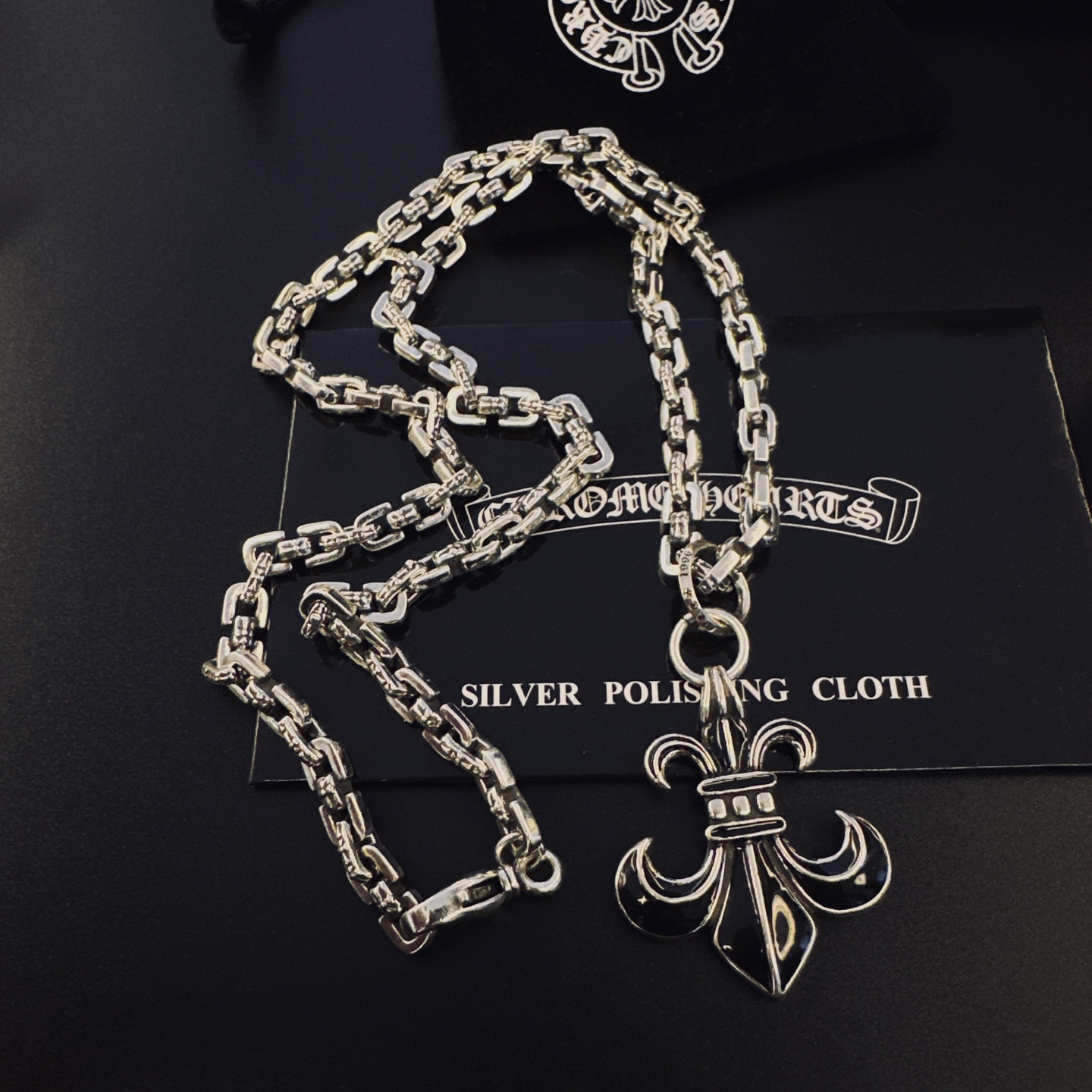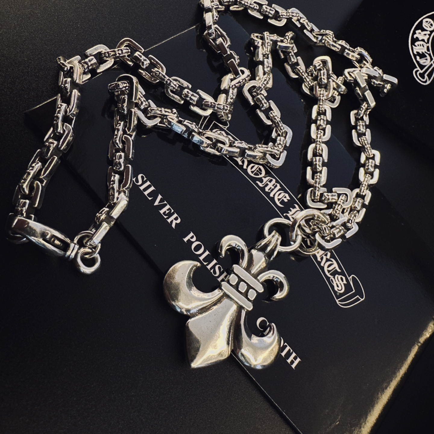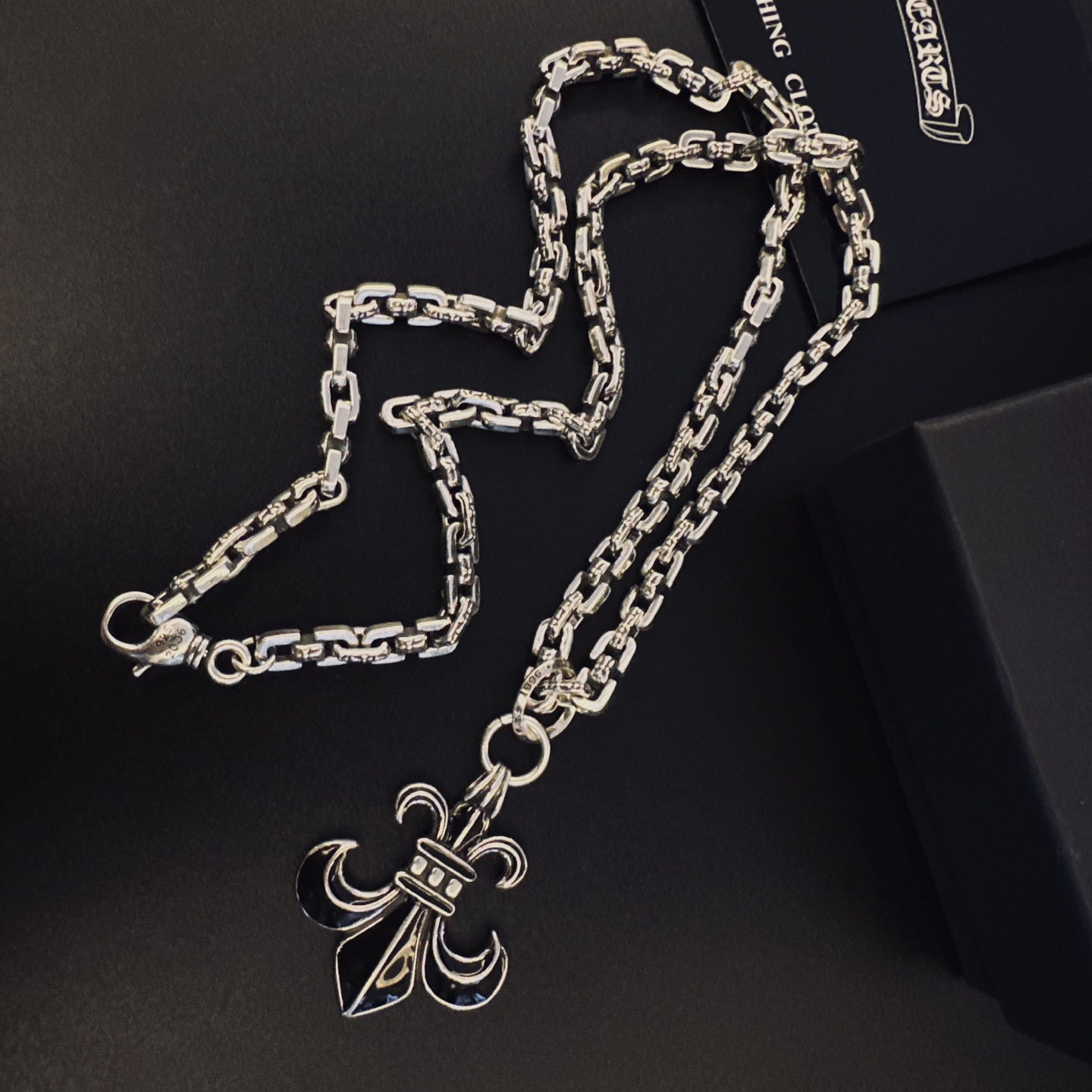 这款首饰是AAAAA 1:1 质量 (非常棒). 使用了和原版一模一样的材料. 商标部分也保持了和克罗心/Chrome Hearts一样. 图片拍摄是实物首饰拍摄, 您所收到的实物保证和我们图片一模一样.