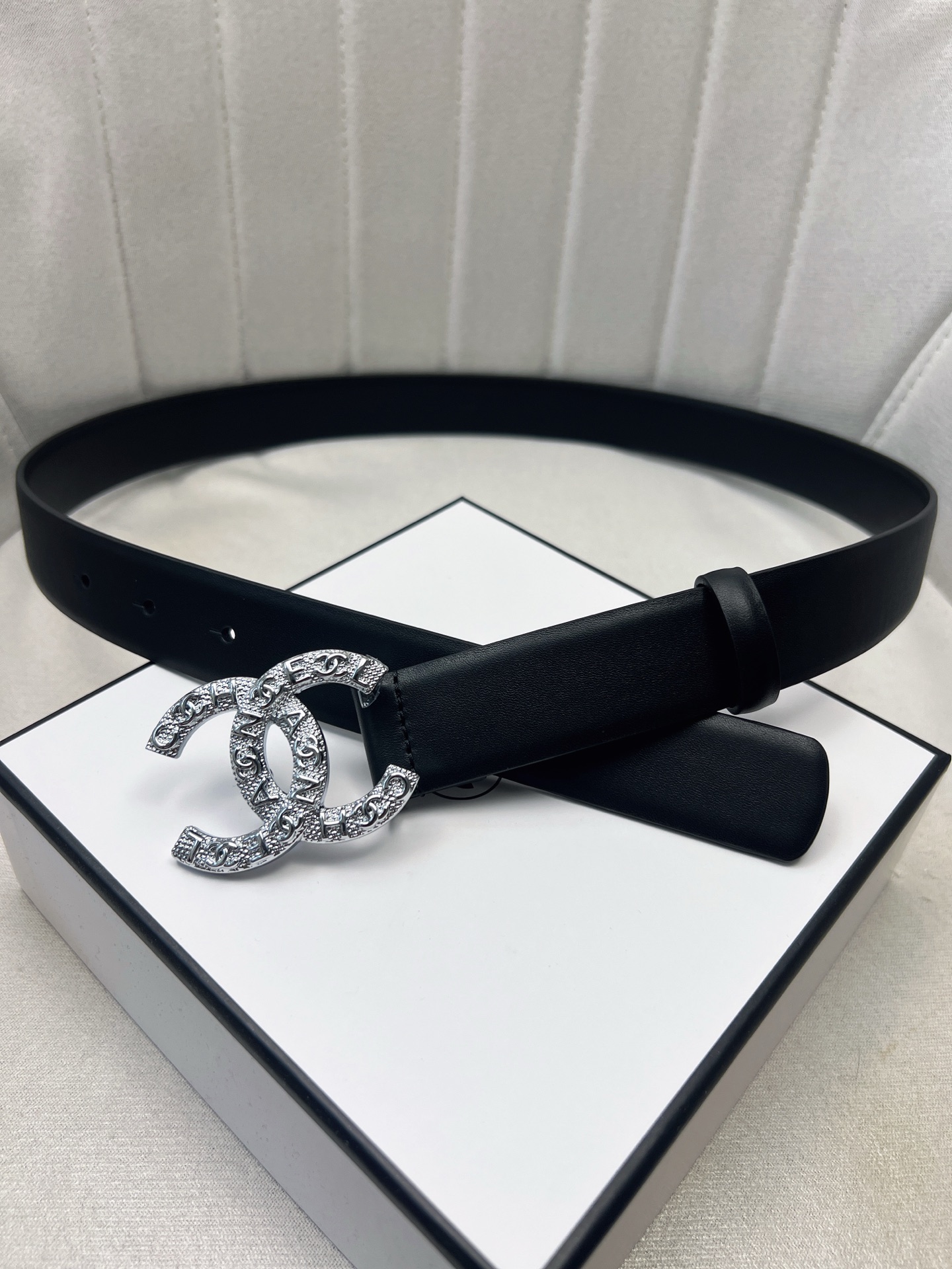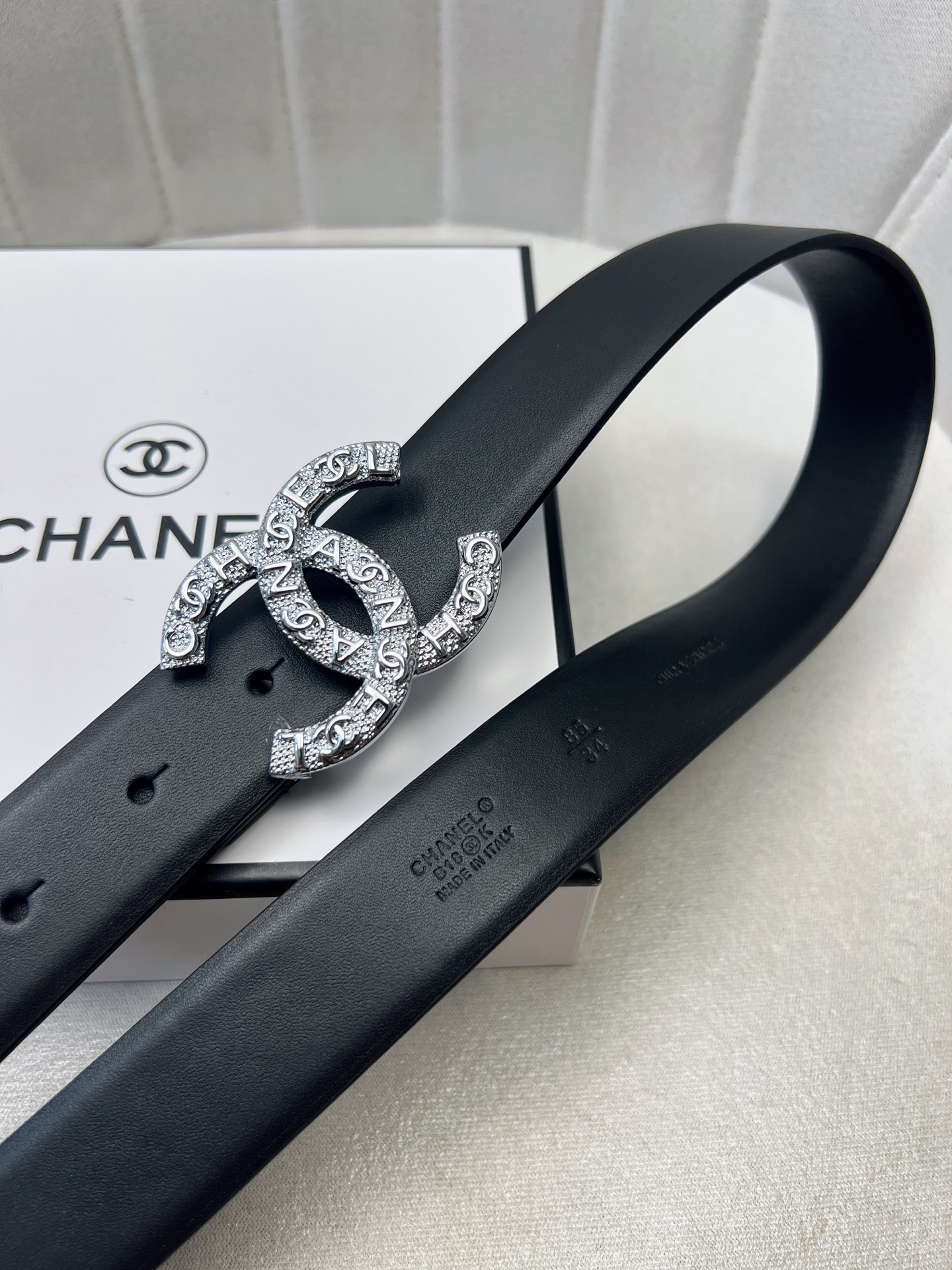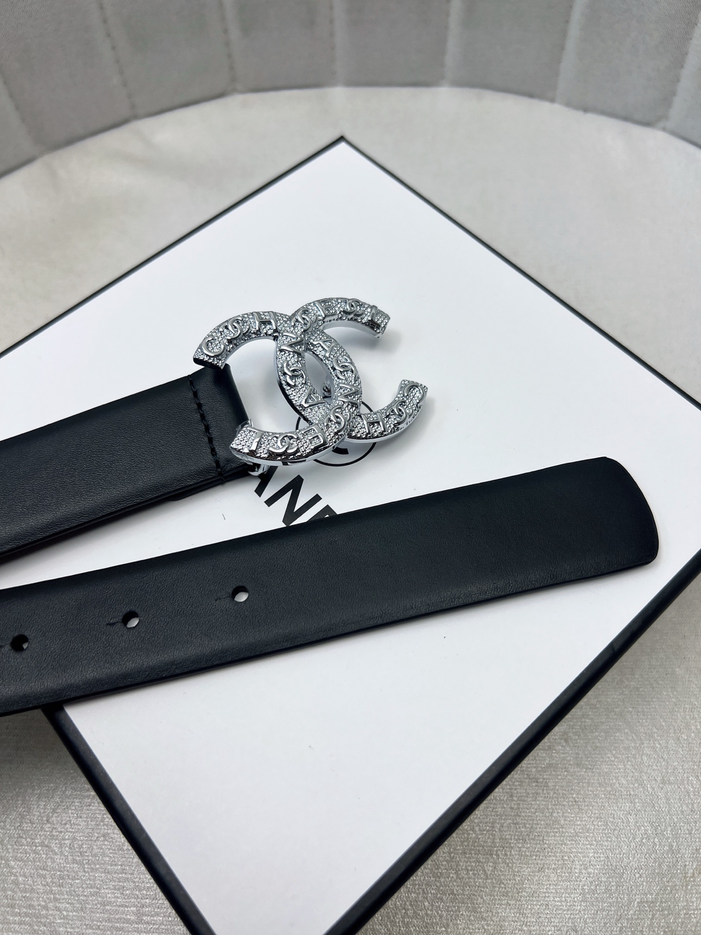 这款皮带是AAAAA 1:1 质量 (非常棒). 使用了和原版一模一样的材料. 商标部分也保持了和香奈儿/Chanel一样. 图片拍摄是实物皮带拍摄, 您所收到的实物保证和我们图片一模一样.