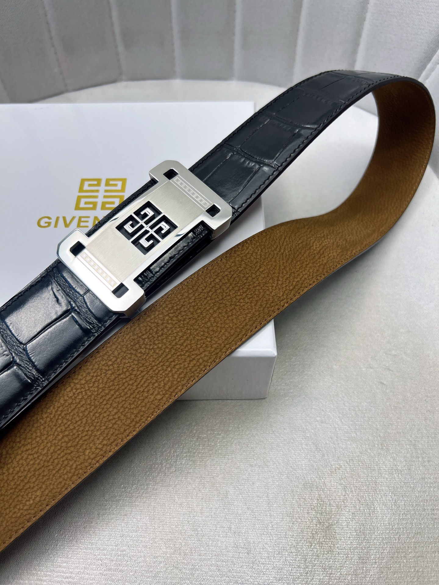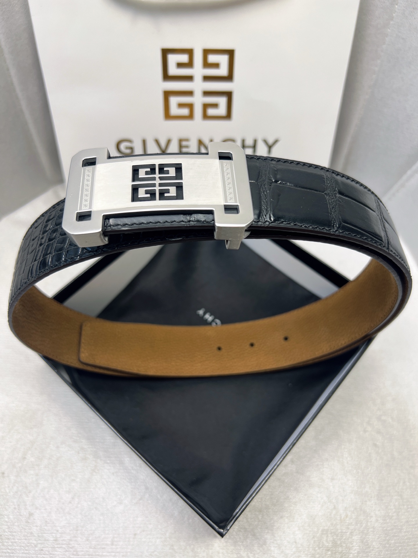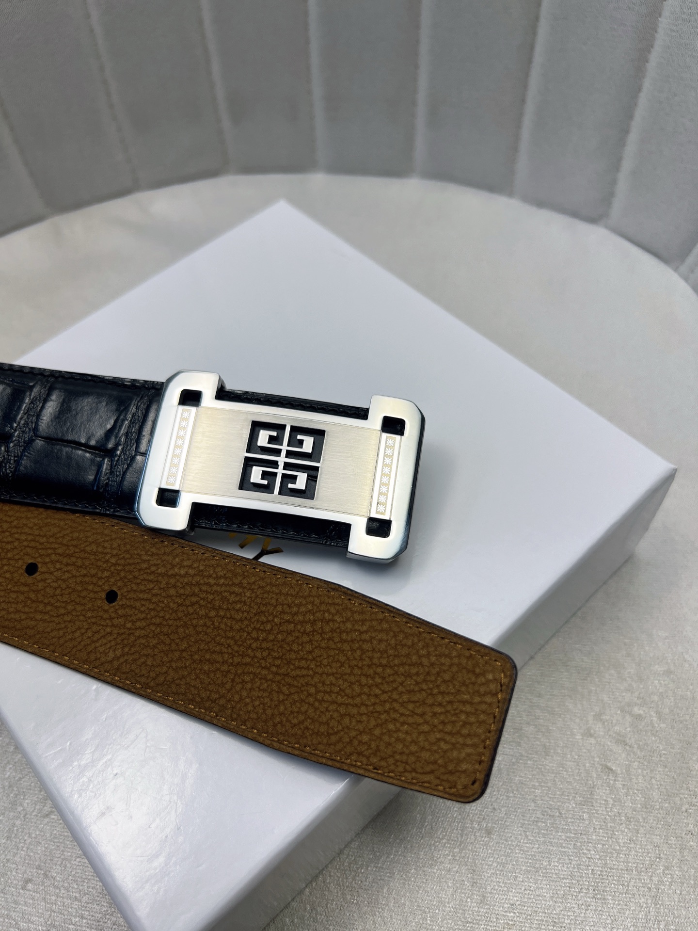 这款皮带是AAAAA 1:1 质量 (非常棒). 使用了和原版一模一样的材料. 商标部分也保持了和纪梵希/Givenchy一样. 图片拍摄是实物皮带拍摄, 您所收到的实物保证和我们图片一模一样.