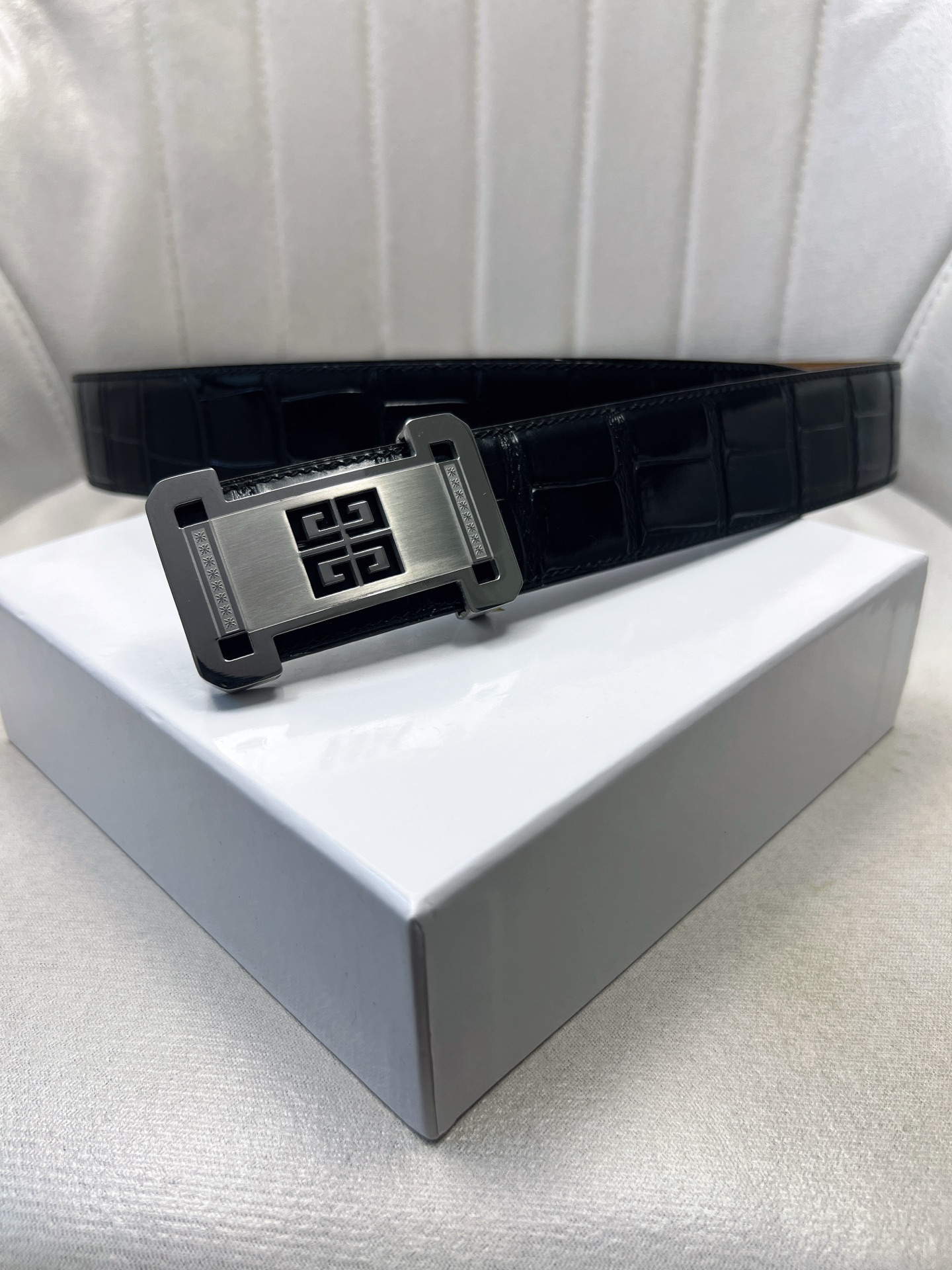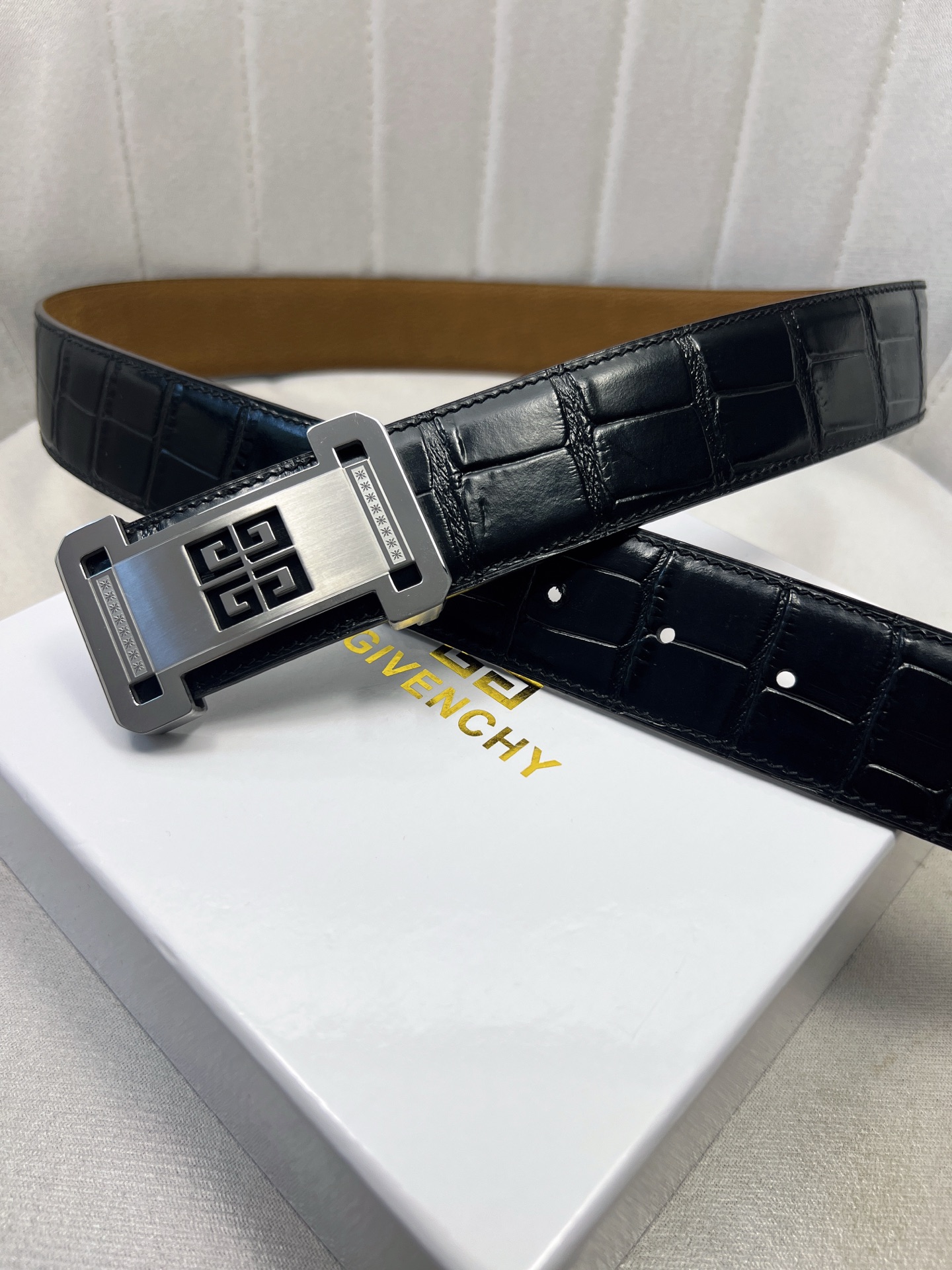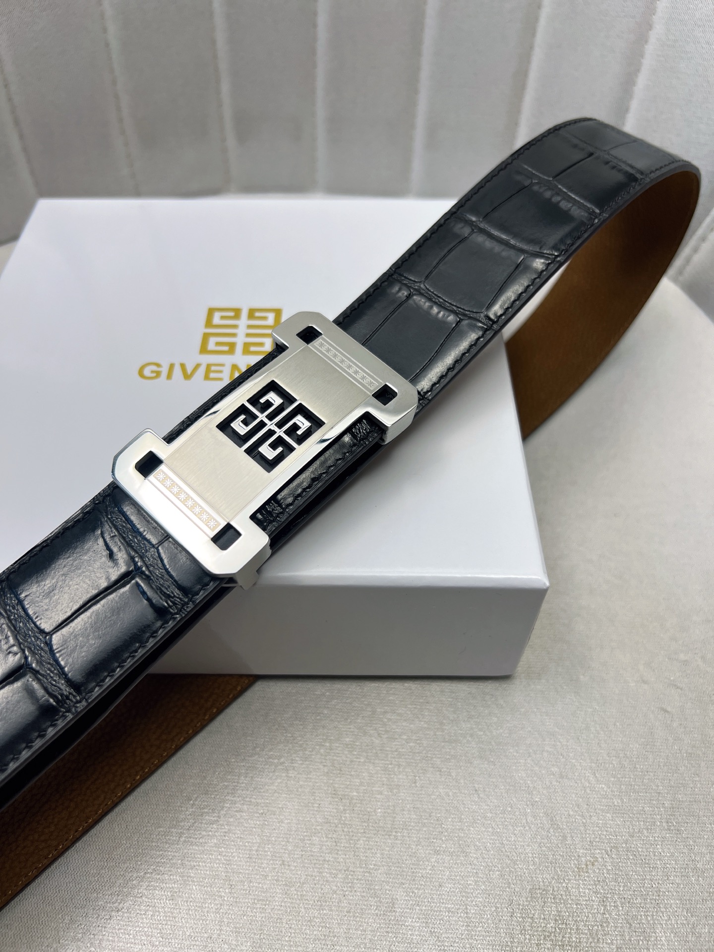 这款皮带是AAAAA 1:1 质量 (非常棒). 使用了和原版一模一样的材料. 商标部分也保持了和纪梵希/Givenchy一样. 图片拍摄是实物皮带拍摄, 您所收到的实物保证和我们图片一模一样.