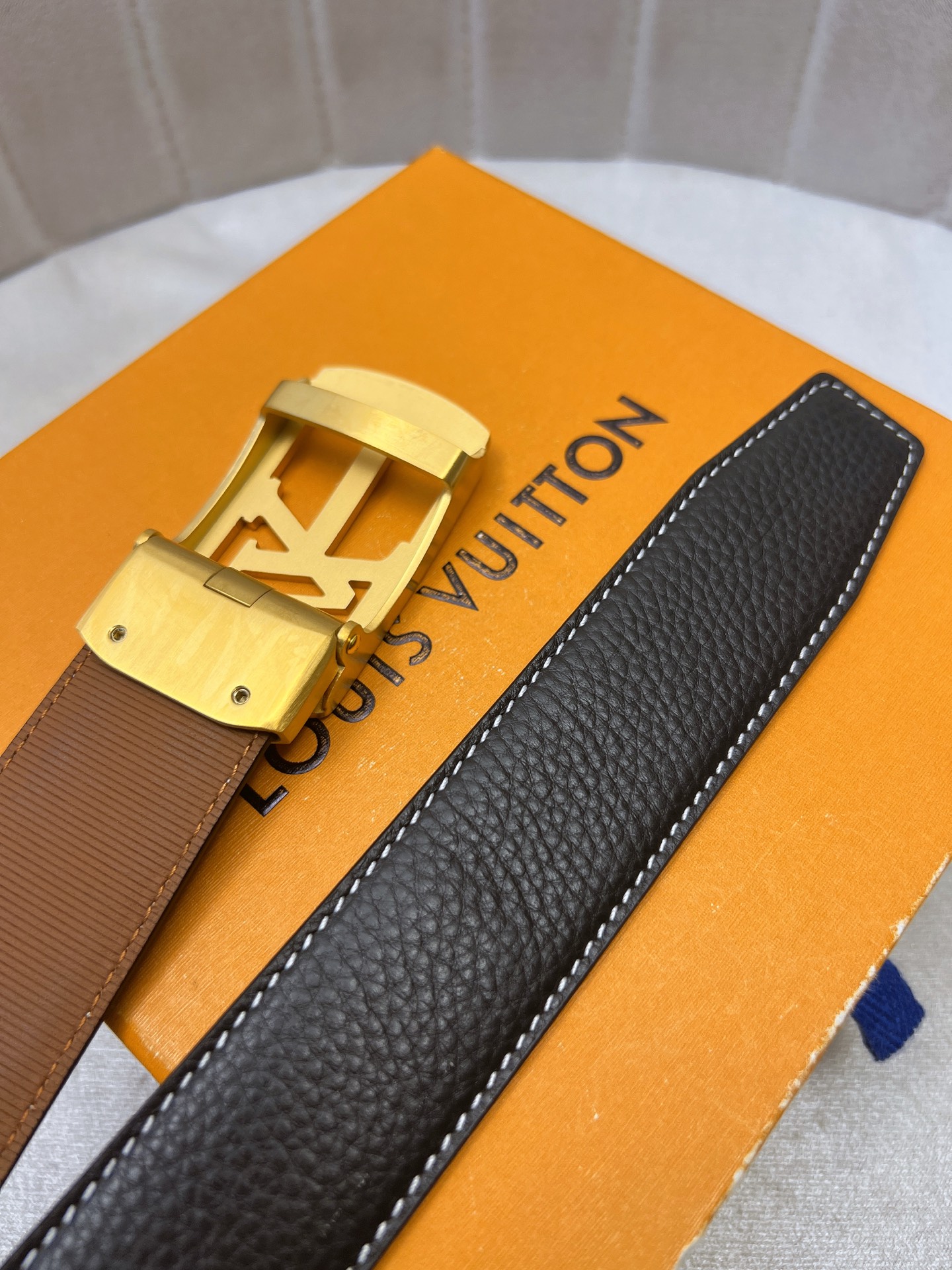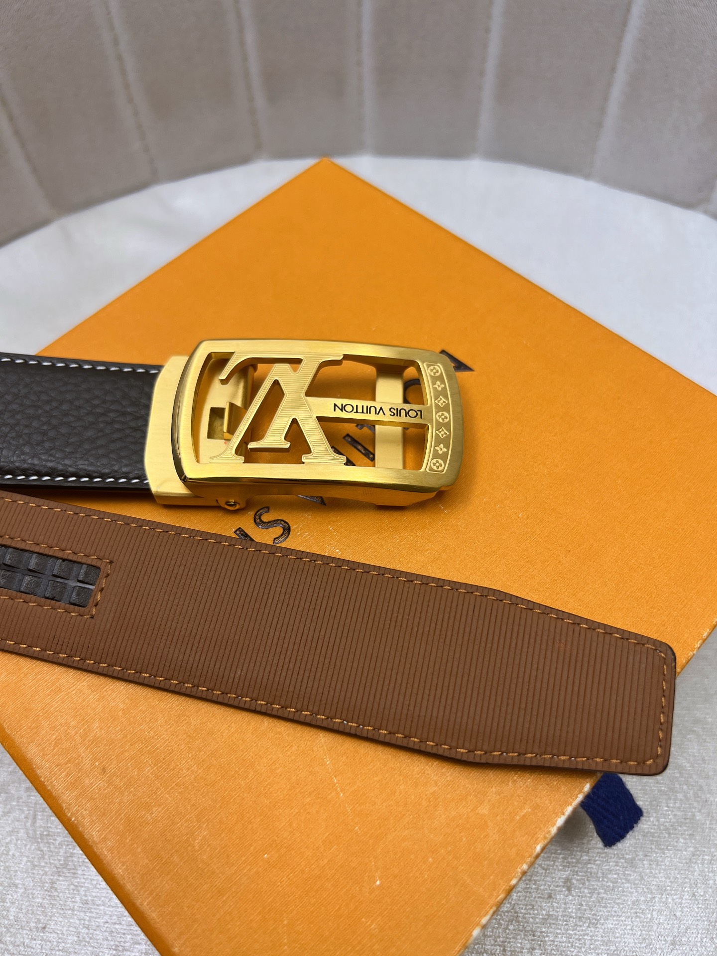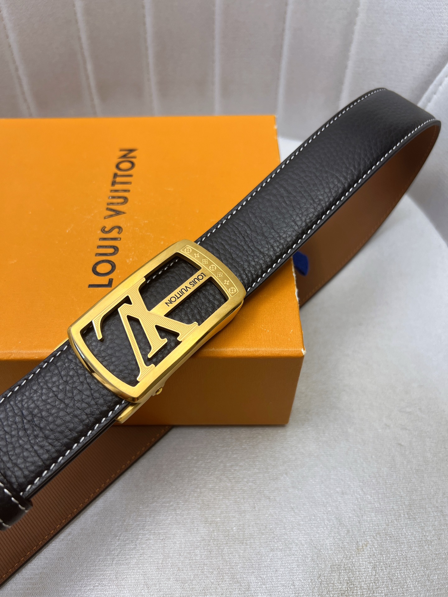 这款皮带是AAAAA 1:1 质量 (非常棒). 使用了和原版一模一样的材料. 商标部分也保持了和路易威登/Louis Vuitton一样. 图片拍摄是实物皮带拍摄, 您所收到的实物保证和我们图片一模一样.