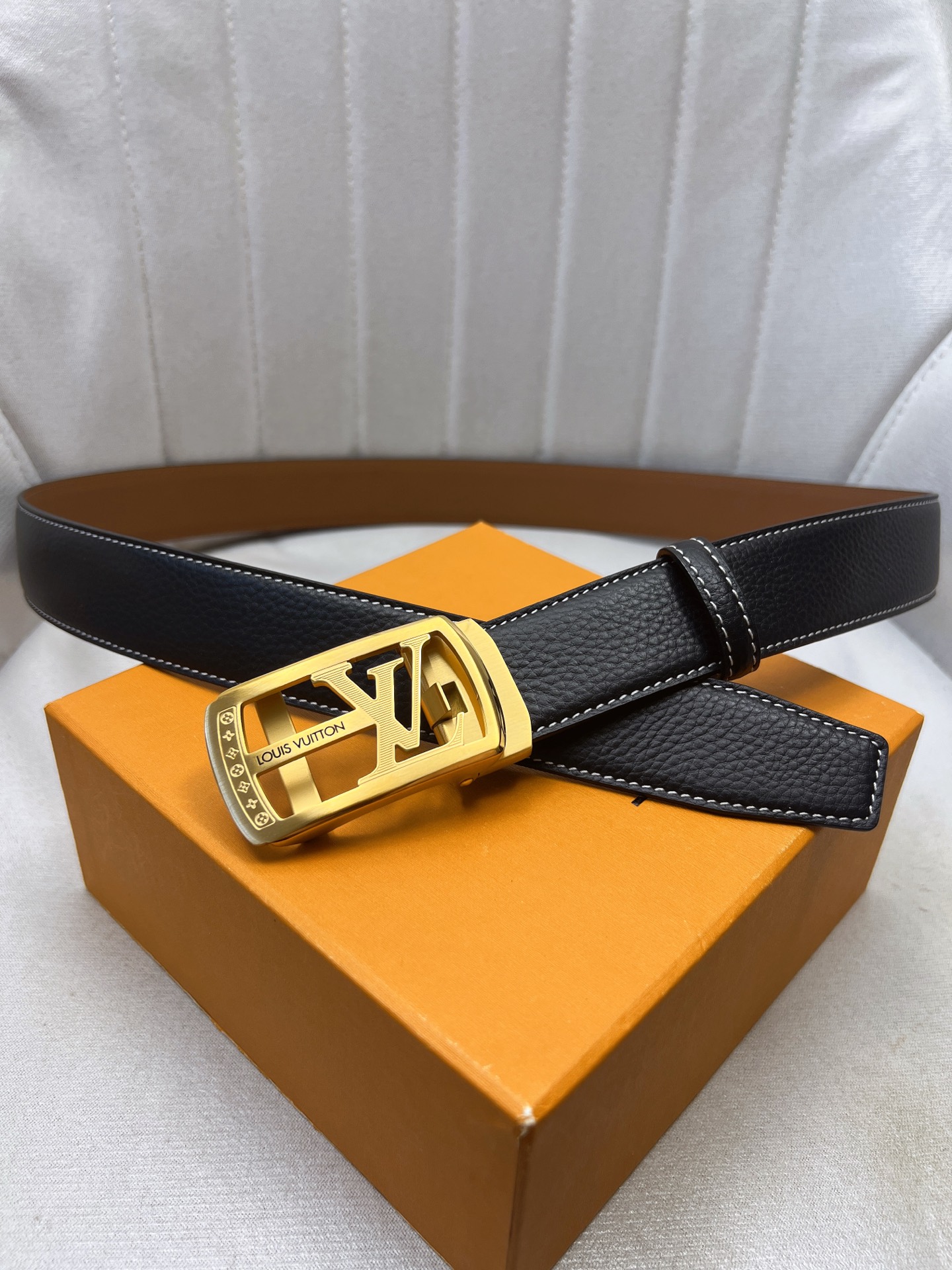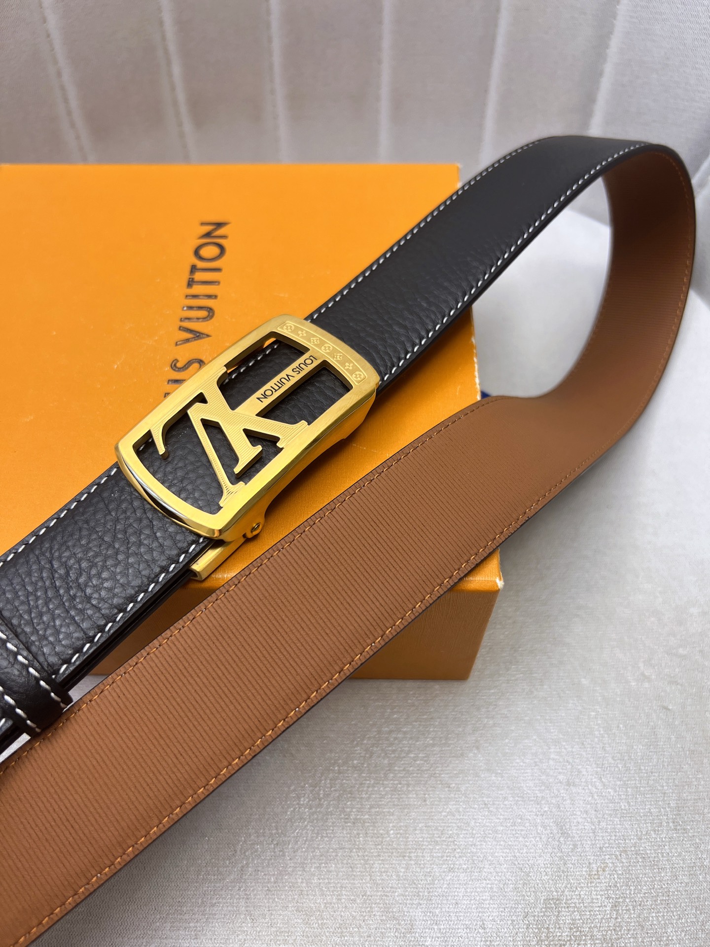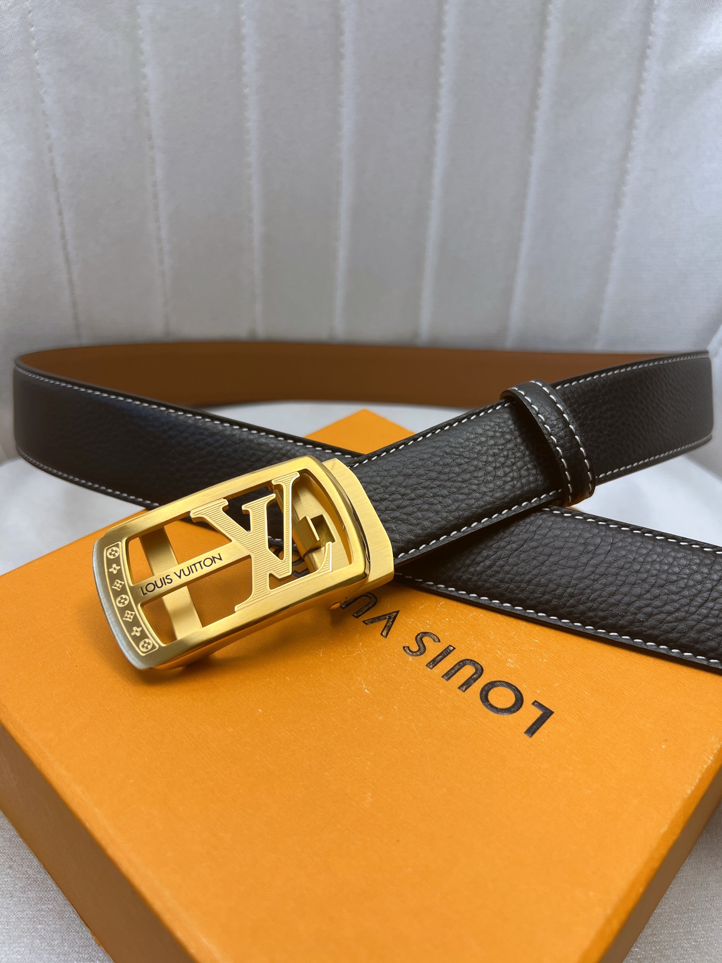 这款皮带是AAAAA 1:1 质量 (非常棒). 使用了和原版一模一样的材料. 商标部分也保持了和路易威登/Louis Vuitton一样. 图片拍摄是实物皮带拍摄, 您所收到的实物保证和我们图片一模一样.