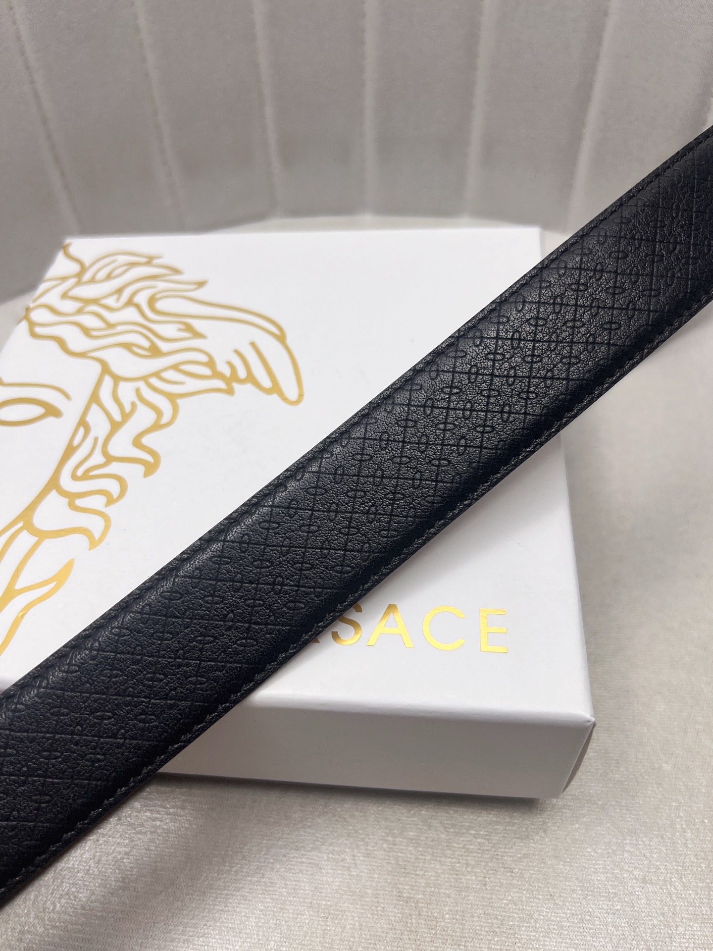 这款皮带是AAAAA 1:1 质量 (非常棒). 使用了和原版一模一样的材料. 商标部分也保持了和范思哲/Versace一样. 图片拍摄是实物皮带拍摄, 您所收到的实物保证和我们图片一模一样.