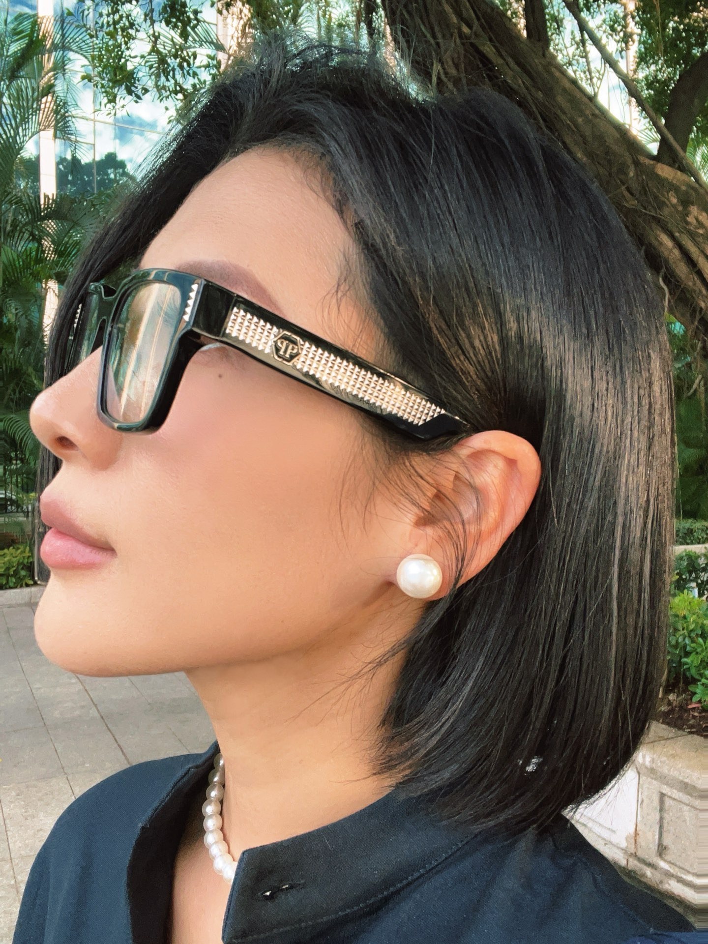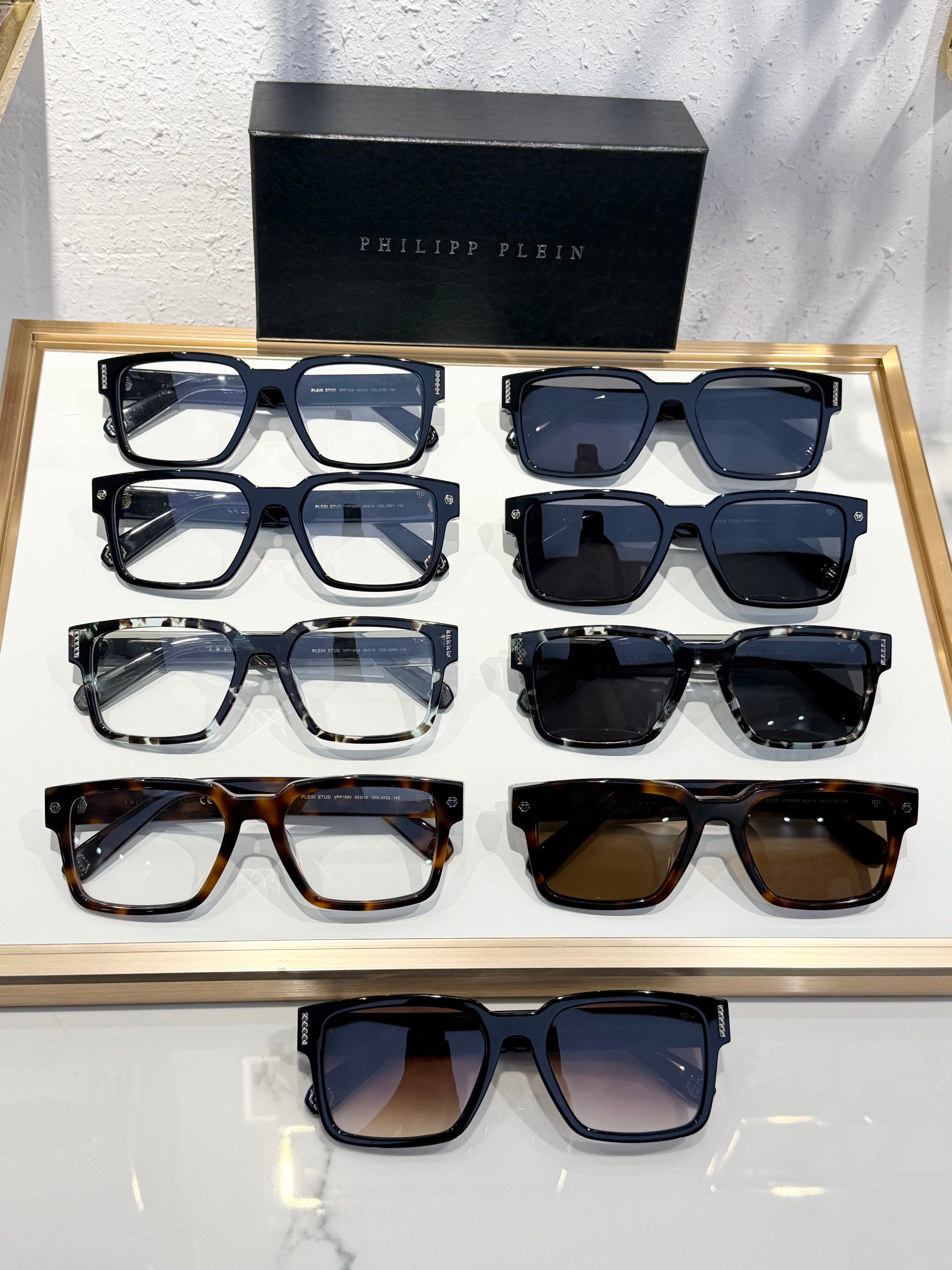 这款太阳眼镜是AAAAA 1:1 质量 (非常棒). 使用了和原版一模一样的材料. 商标部分也保持了和菲利普·普林/Philipp Plein一样. 图片拍摄是实物太阳眼镜拍摄, 您所收到的实物保证和我们图片一模一样.