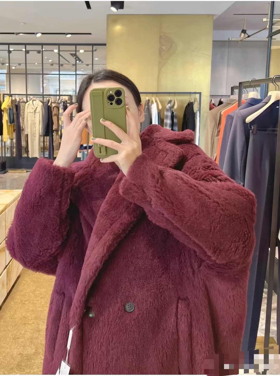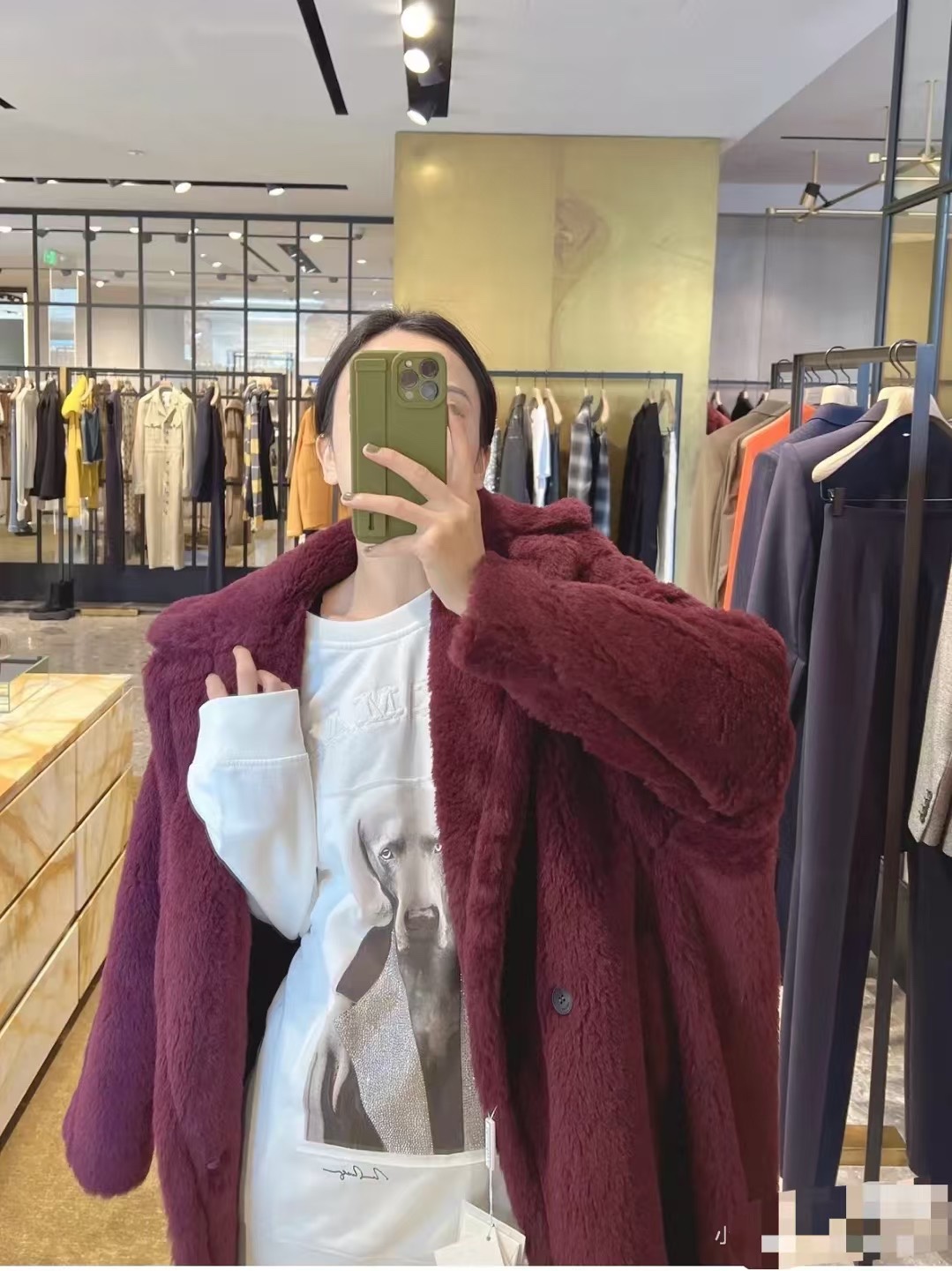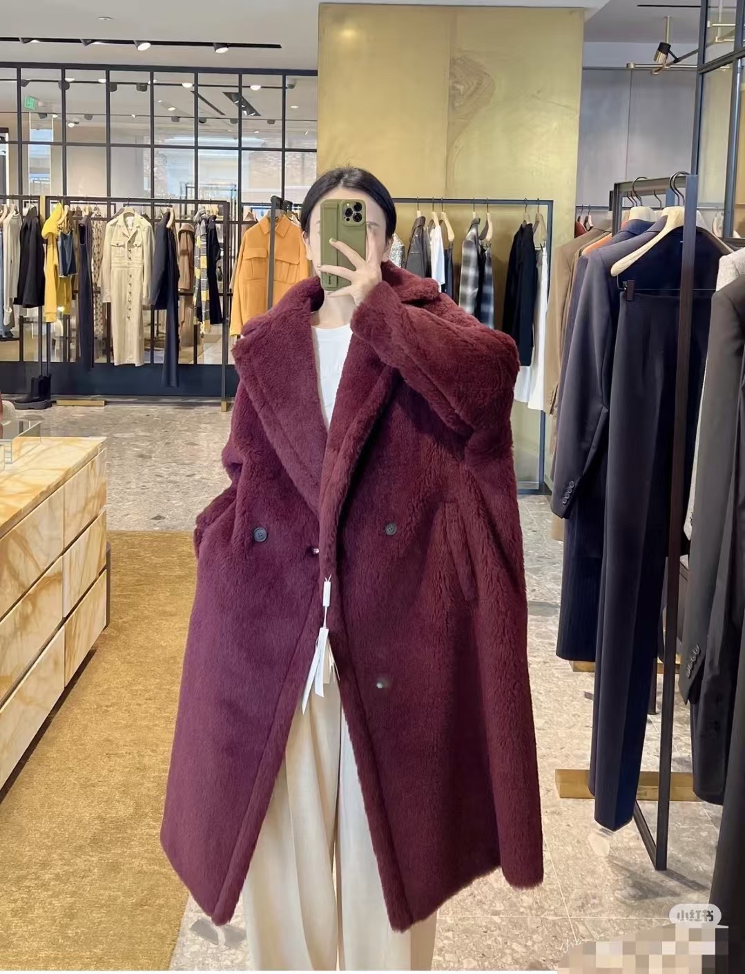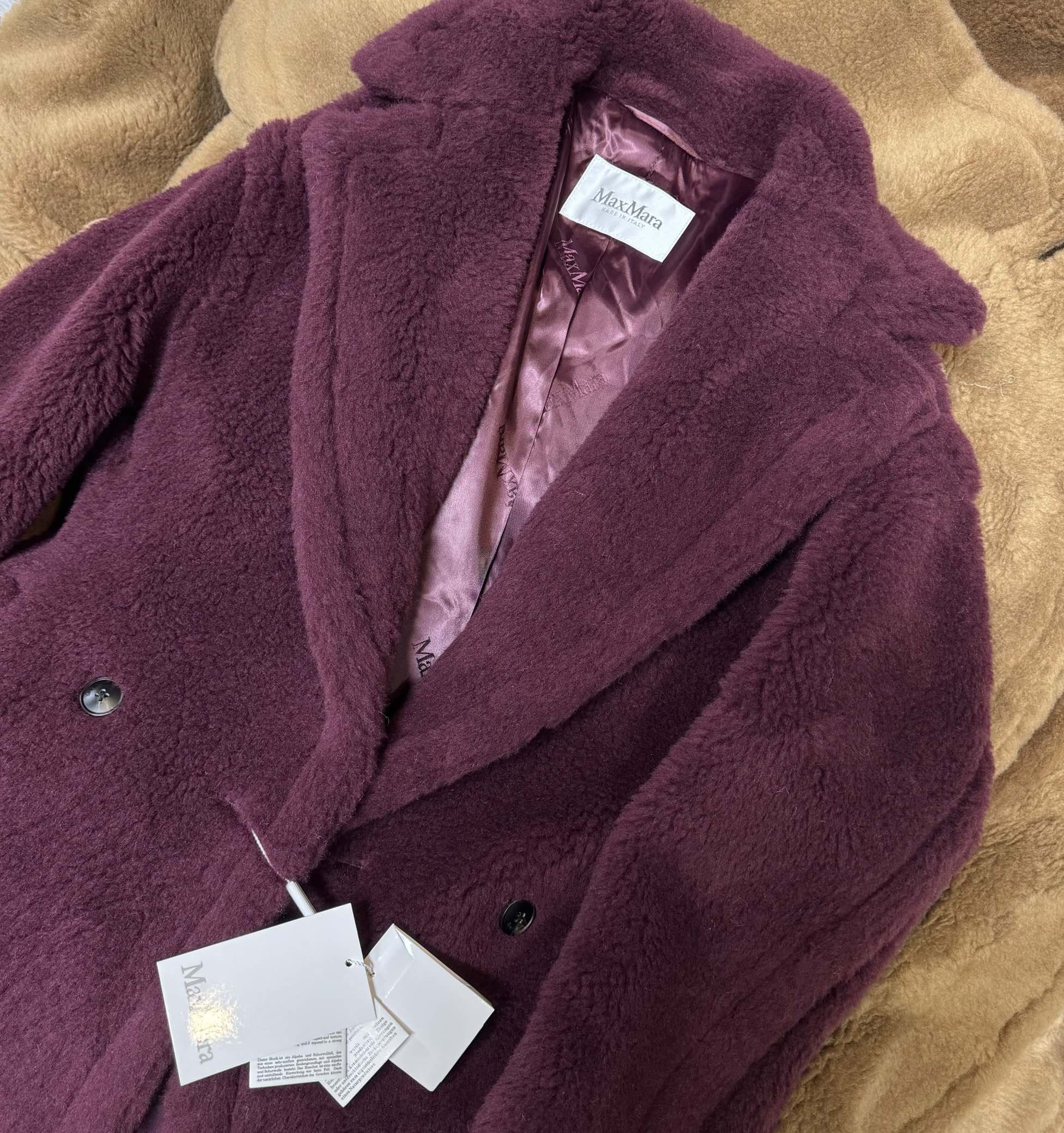 这款衣服是AAAAA 1:1 质量 (非常棒). 使用了和原版一模一样的材料. 商标部分也保持了和Max Mara一样. 图片拍摄是实物衣服拍摄, 您所收到的实物保证和我们图片一模一样.