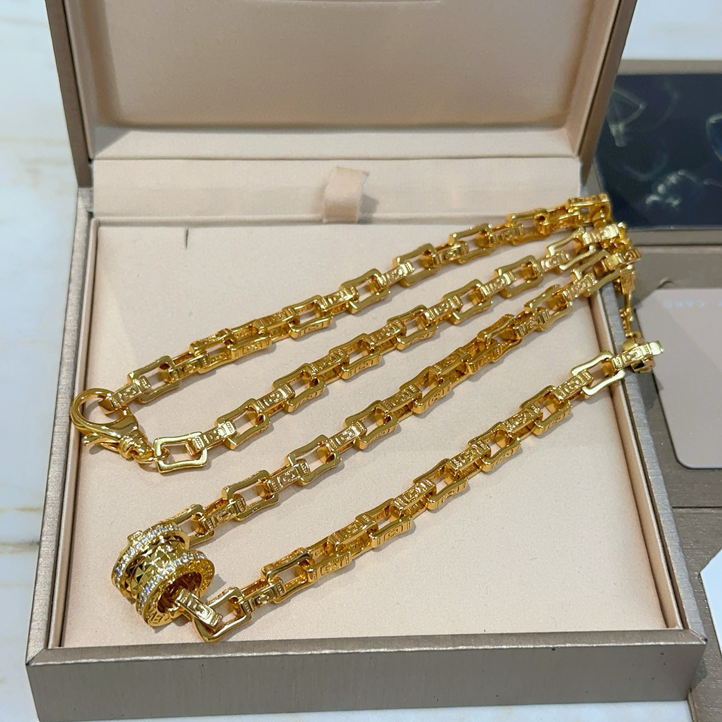 这款首饰是AAAAA 1:1 质量 (非常棒). 使用了和原版一模一样的材料. 商标部分也保持了和宝格丽/Bulgari一样. 图片拍摄是实物首饰拍摄, 您所收到的实物保证和我们图片一模一样.