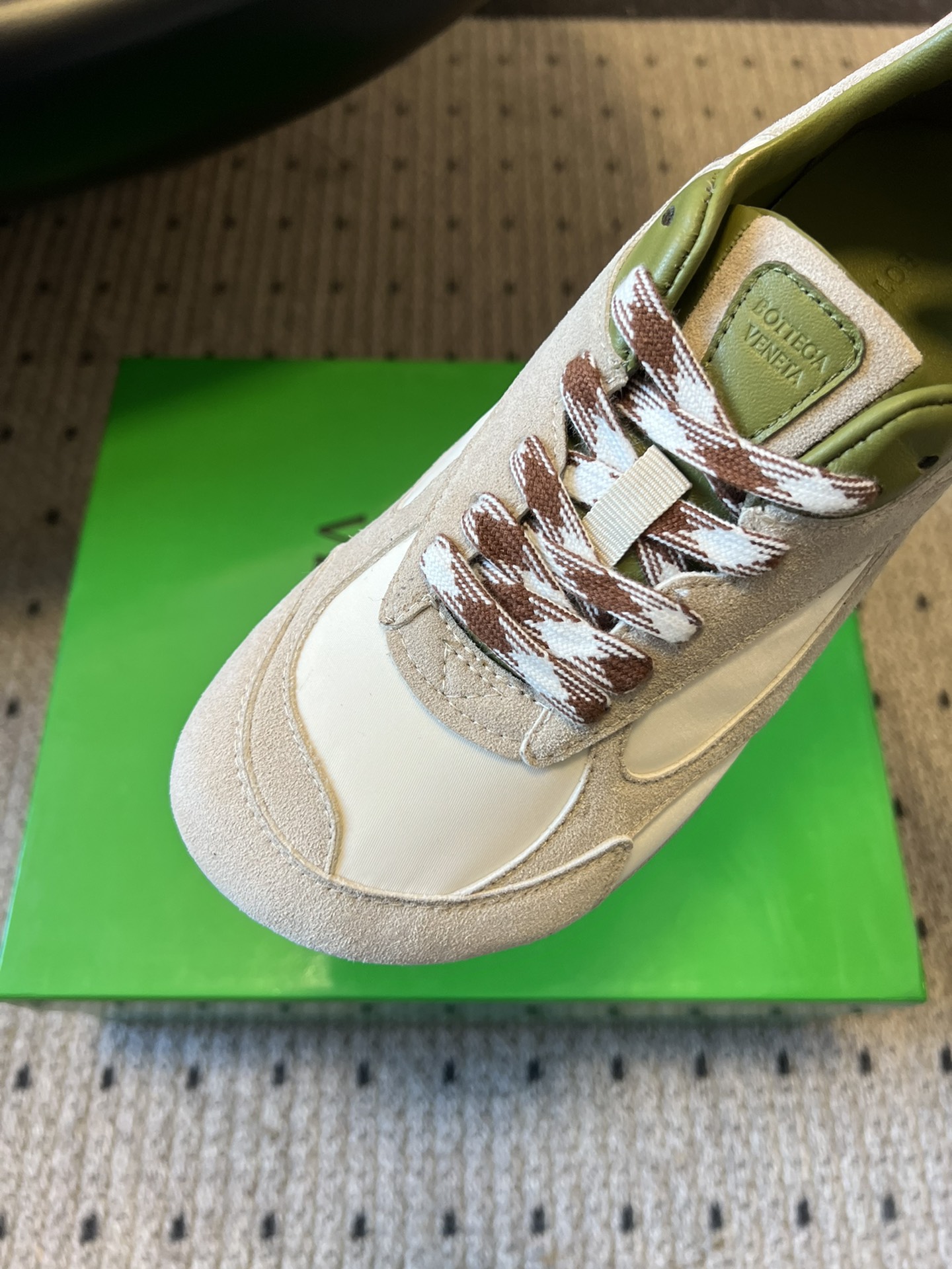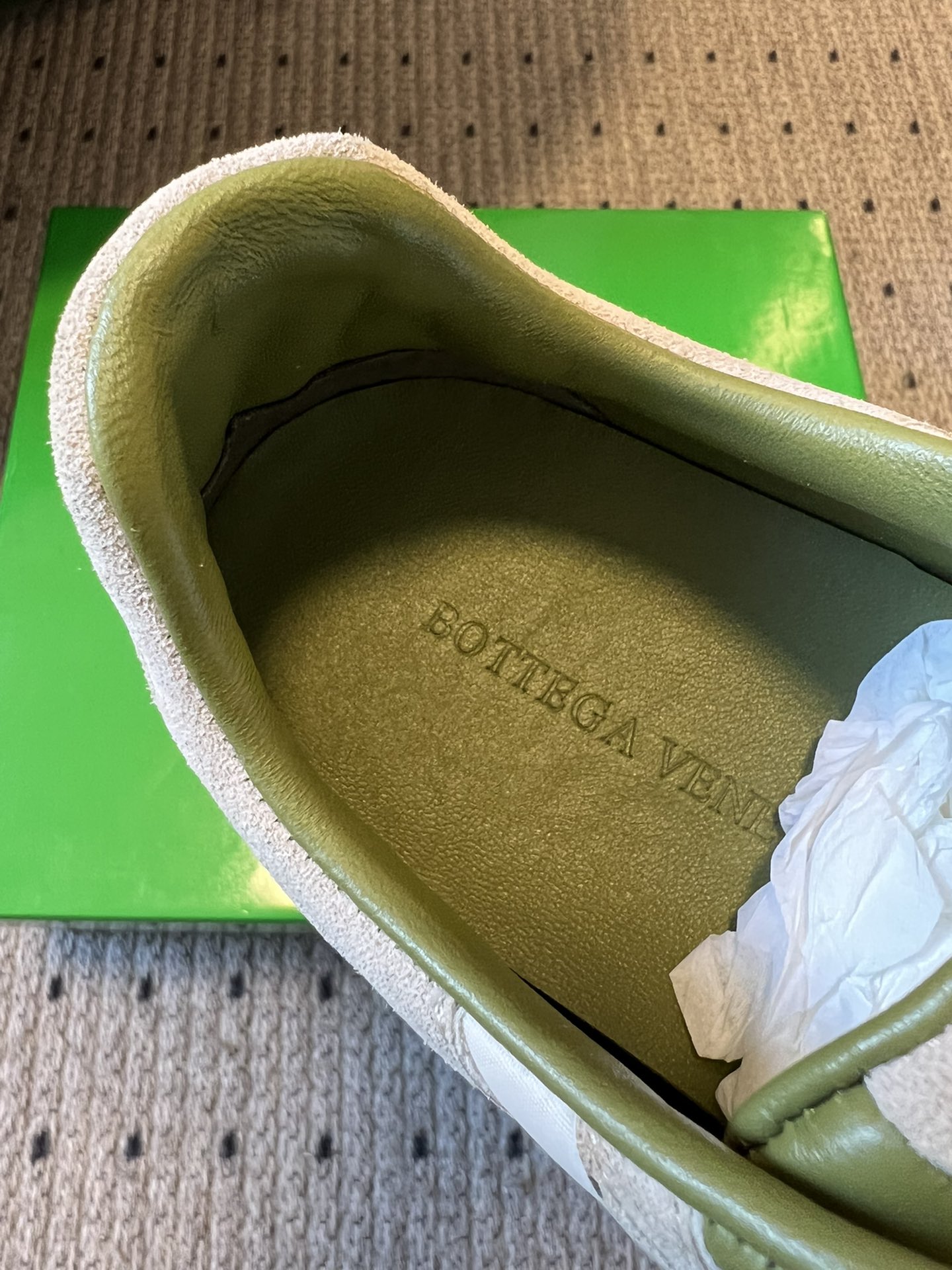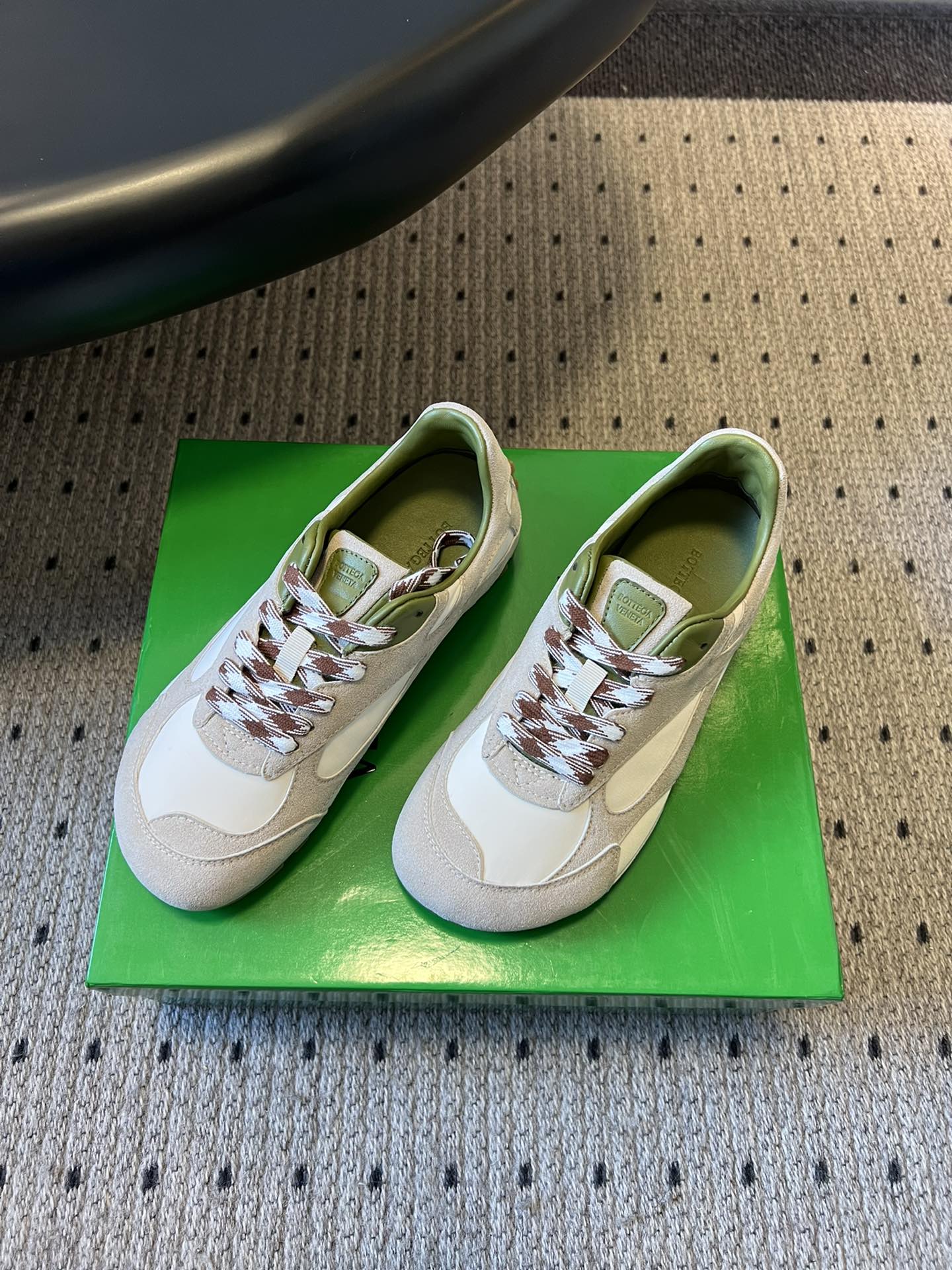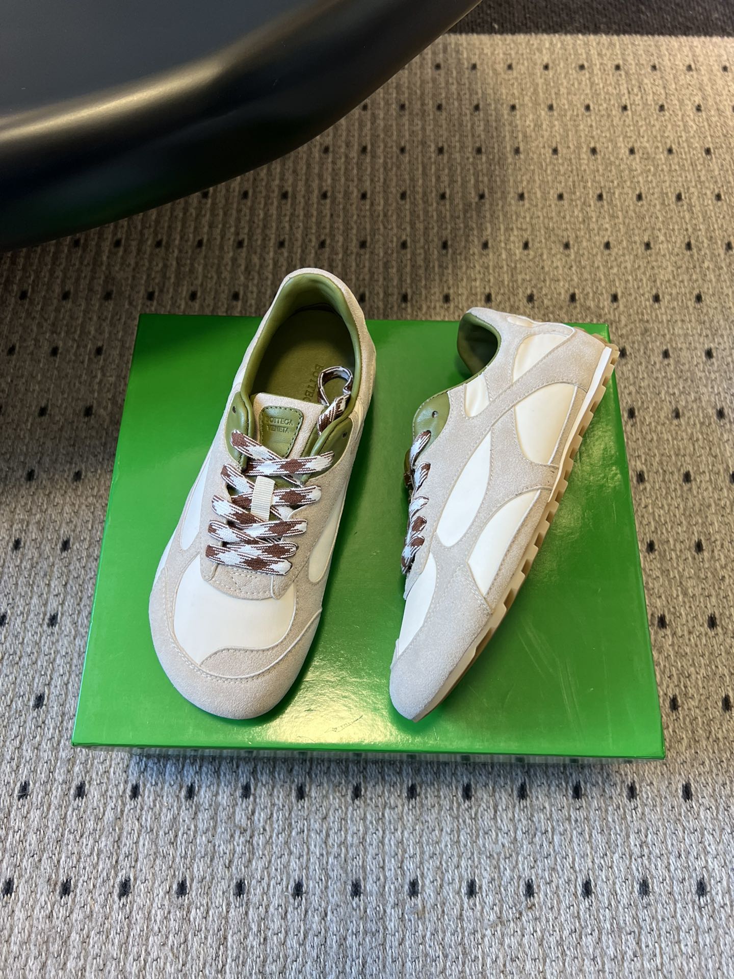 这款鞋子是AAAAA 1:1 质量 (非常棒). 使用了和原版一模一样的材料. 商标部分也保持了和葆蝶家/Bottega Veneta一样. 图片拍摄是实物鞋子拍摄, 您所收到的实物保证和我们图片一模一样.