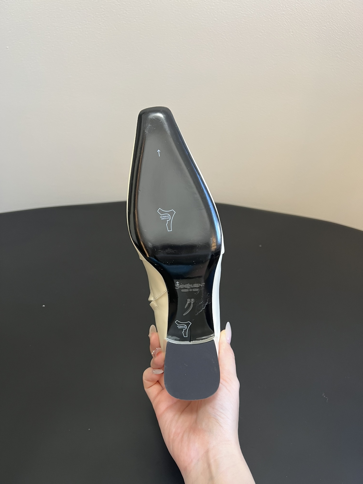 这款鞋子是AAAAA 1:1 质量 (非常棒). 使用了和原版一模一样的材料. 商标部分也保持了和圣罗兰/Saint Laurent一样. 图片拍摄是实物鞋子拍摄, 您所收到的实物保证和我们图片一模一样.