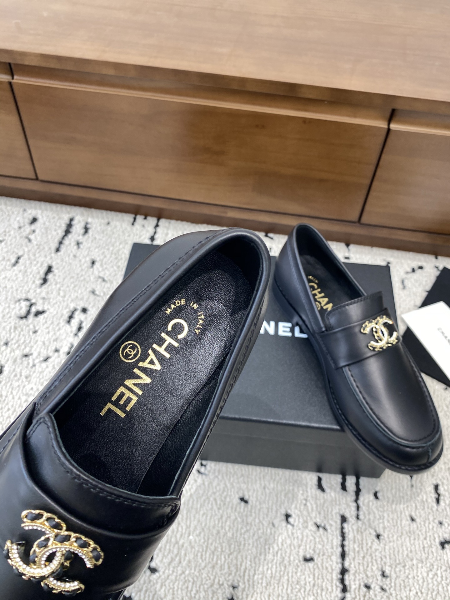 这款鞋子是AAAAA 1:1 质量 (非常棒). 使用了和原版一模一样的材料. 商标部分也保持了和香奈儿/Chanel一样. 图片拍摄是实物鞋子拍摄, 您所收到的实物保证和我们图片一模一样.
