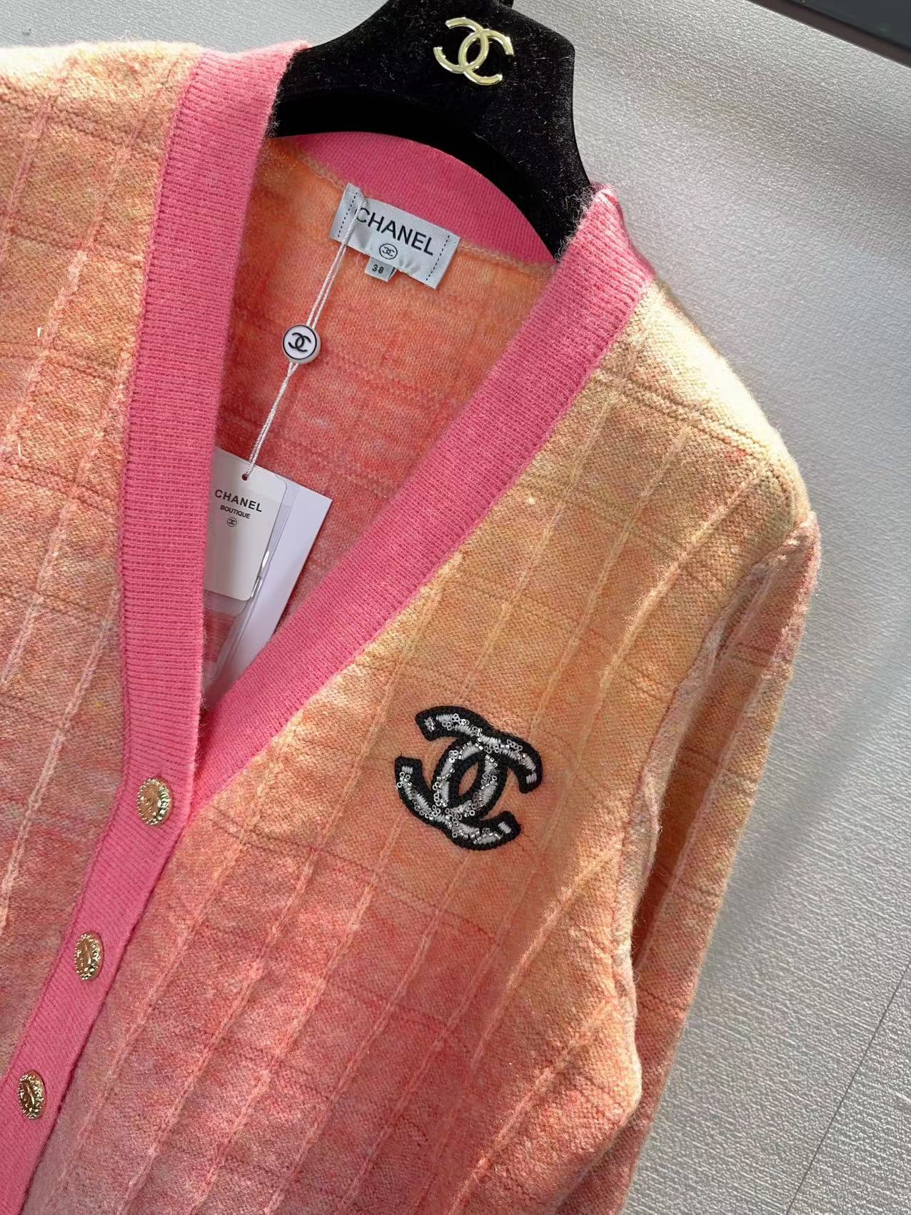 这款衣服是AAAAA 1:1 质量 (非常棒). 使用了和原版一模一样的材料. 商标部分也保持了和香奈儿/Chanel一样. 图片拍摄是实物衣服拍摄, 您所收到的实物保证和我们图片一模一样.