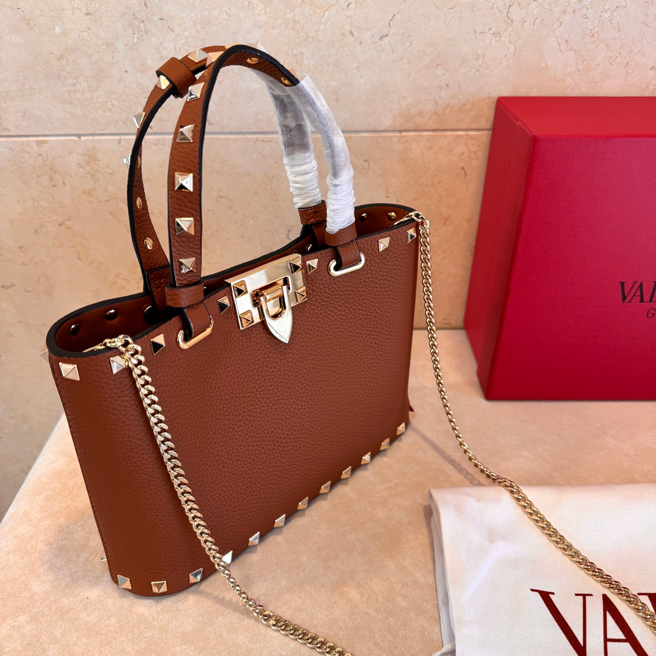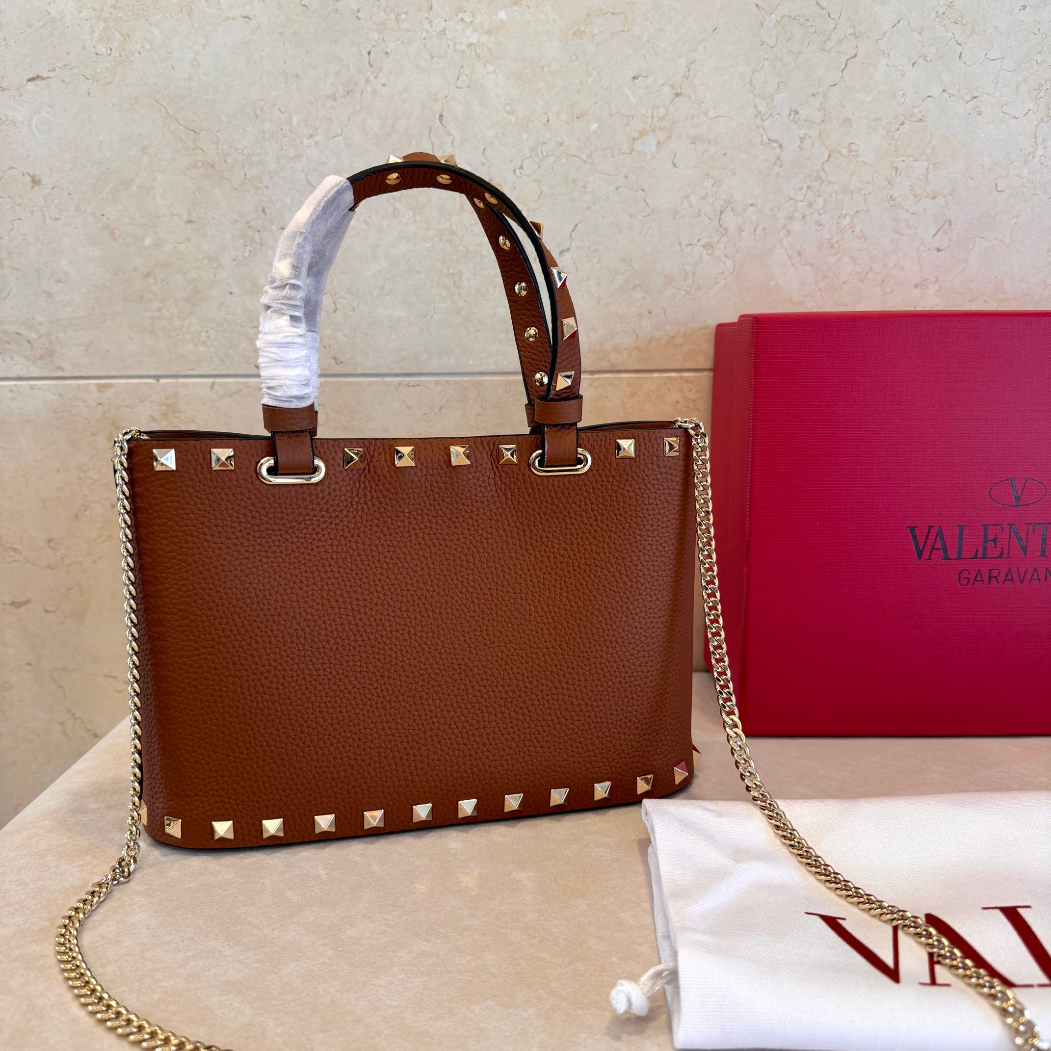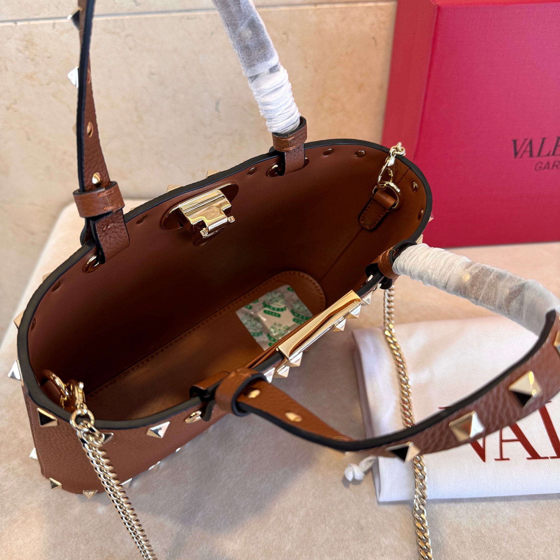 这款包包是AAAAA 1:1 质量 (非常棒). 使用了和原版一模一样的材料. 商标部分也保持了和华伦天奴/Valentino一样. 图片拍摄是实物包包拍摄, 您所收到的实物保证和我们图片一模一样.