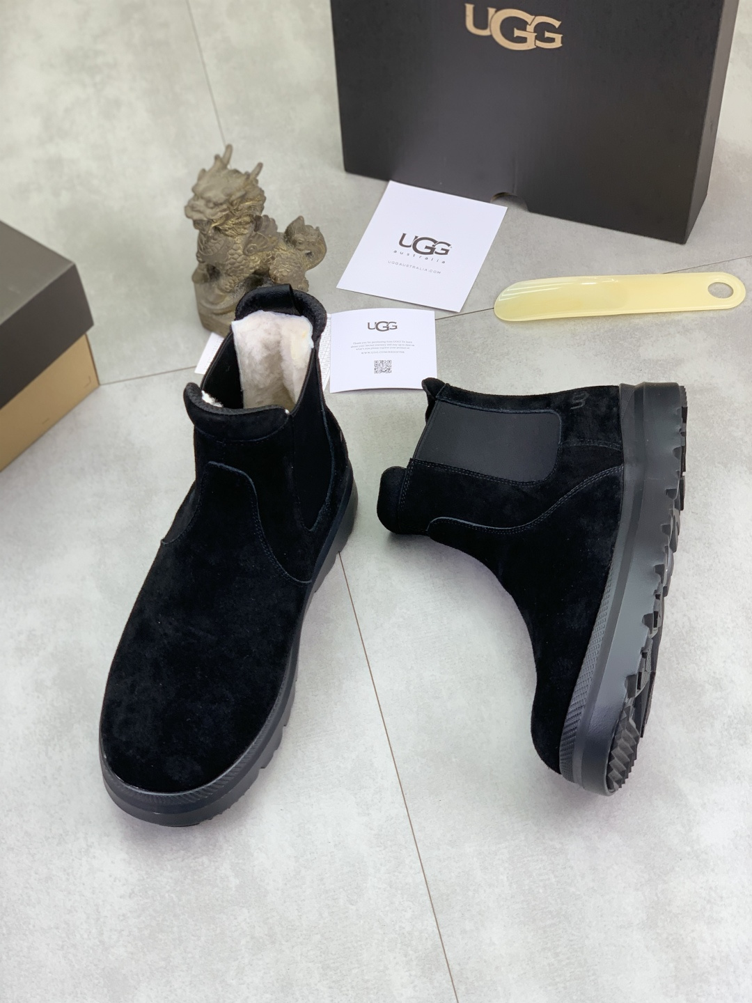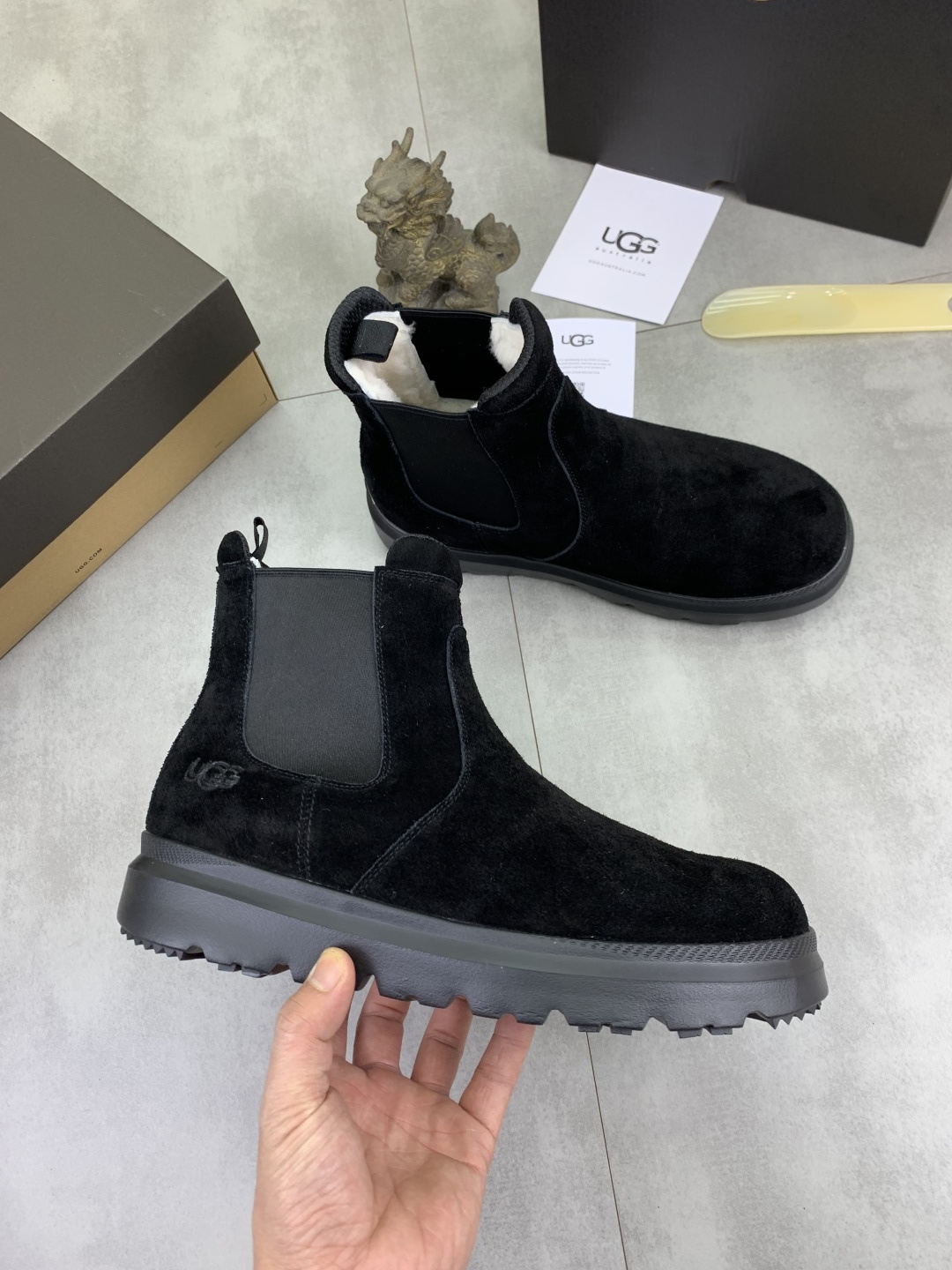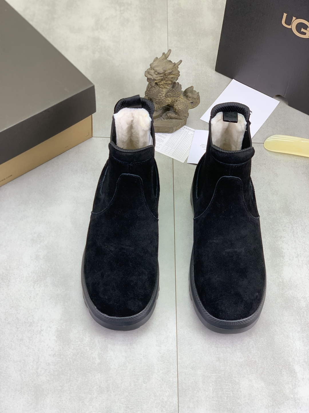 这款鞋子是AAAAA 1:1 质量 (非常棒). 使用了和原版一模一样的材料. 商标部分也保持了和UGG雪地靴一样. 图片拍摄是实物鞋子拍摄, 您所收到的实物保证和我们图片一模一样.