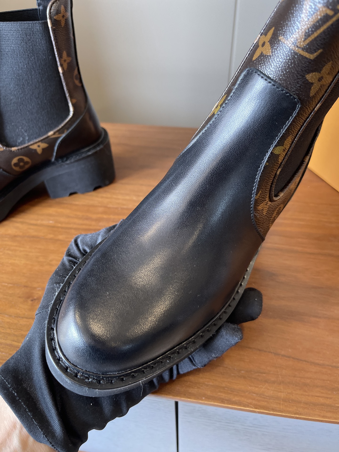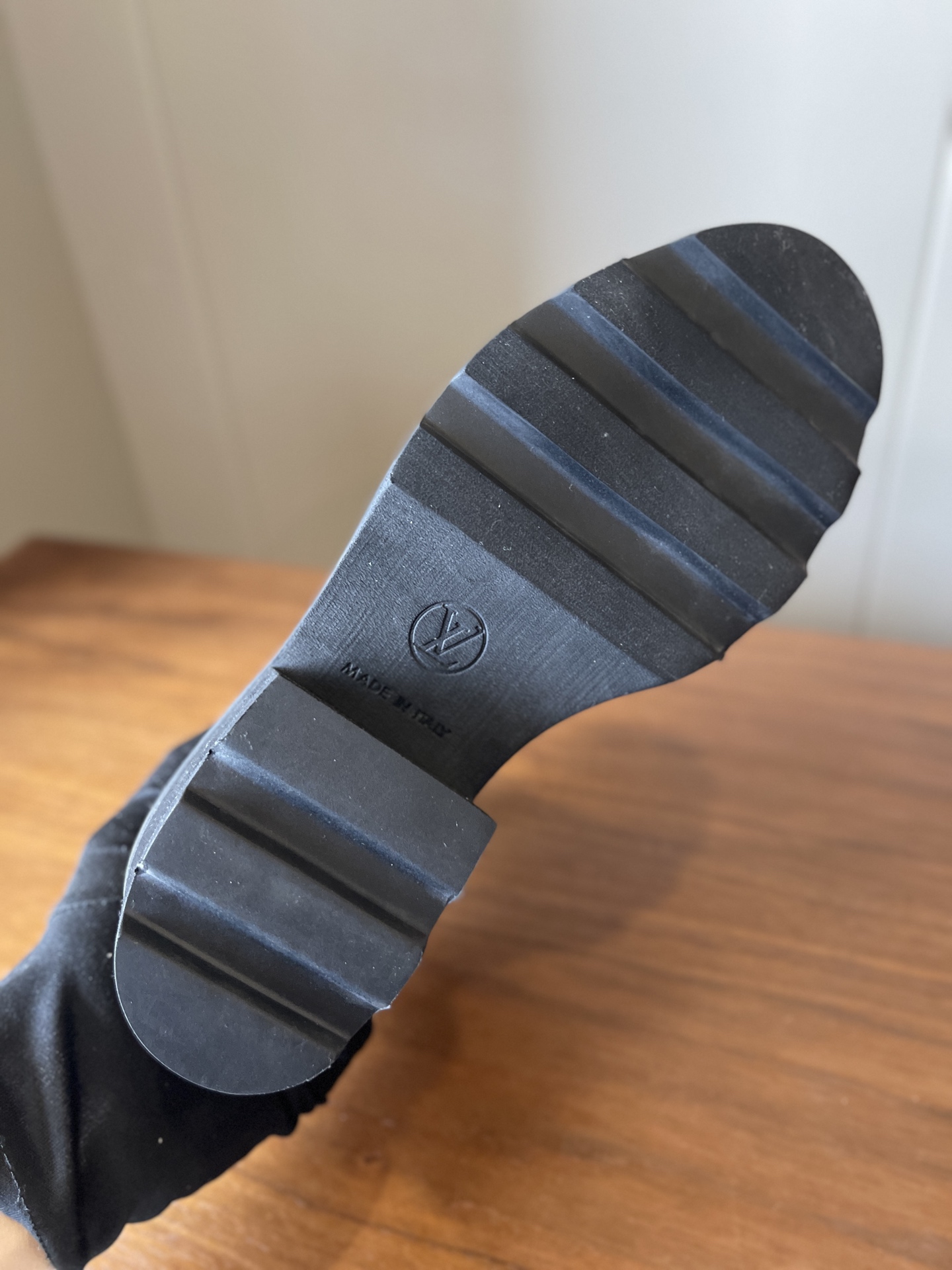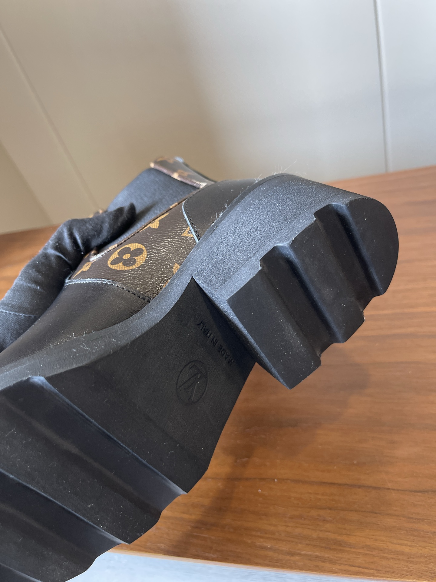 这款鞋子是AAAAA 1:1 质量 (非常棒). 使用了和原版一模一样的材料. 商标部分也保持了和路易威登/Louis Vuitton一样. 图片拍摄是实物鞋子拍摄, 您所收到的实物保证和我们图片一模一样.