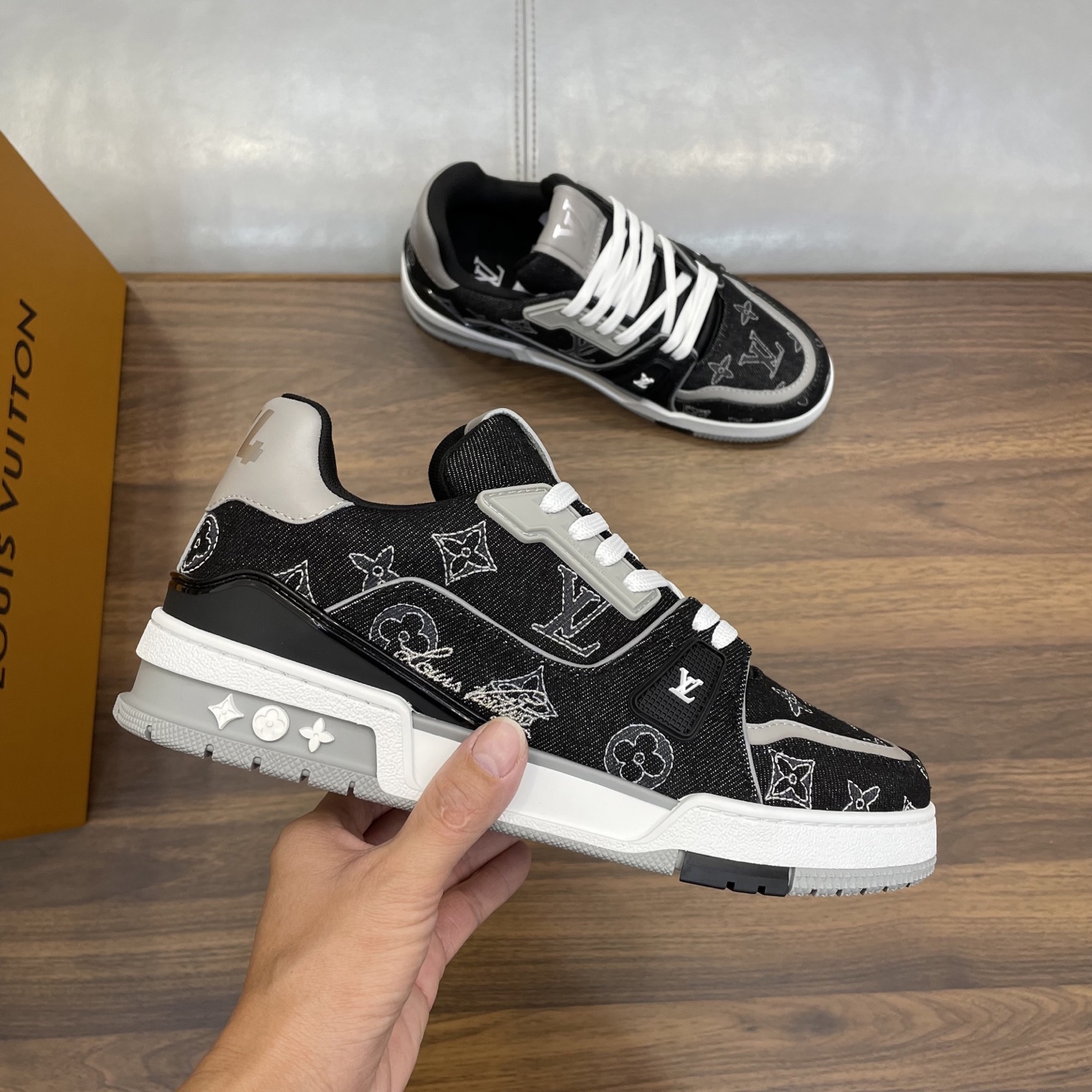这款鞋子是AAAAA 1:1 质量 (非常棒). 使用了和原版一模一样的材料. 商标部分也保持了和路易威登/Louis Vuitton一样. 图片拍摄是实物鞋子拍摄, 您所收到的实物保证和我们图片一模一样.