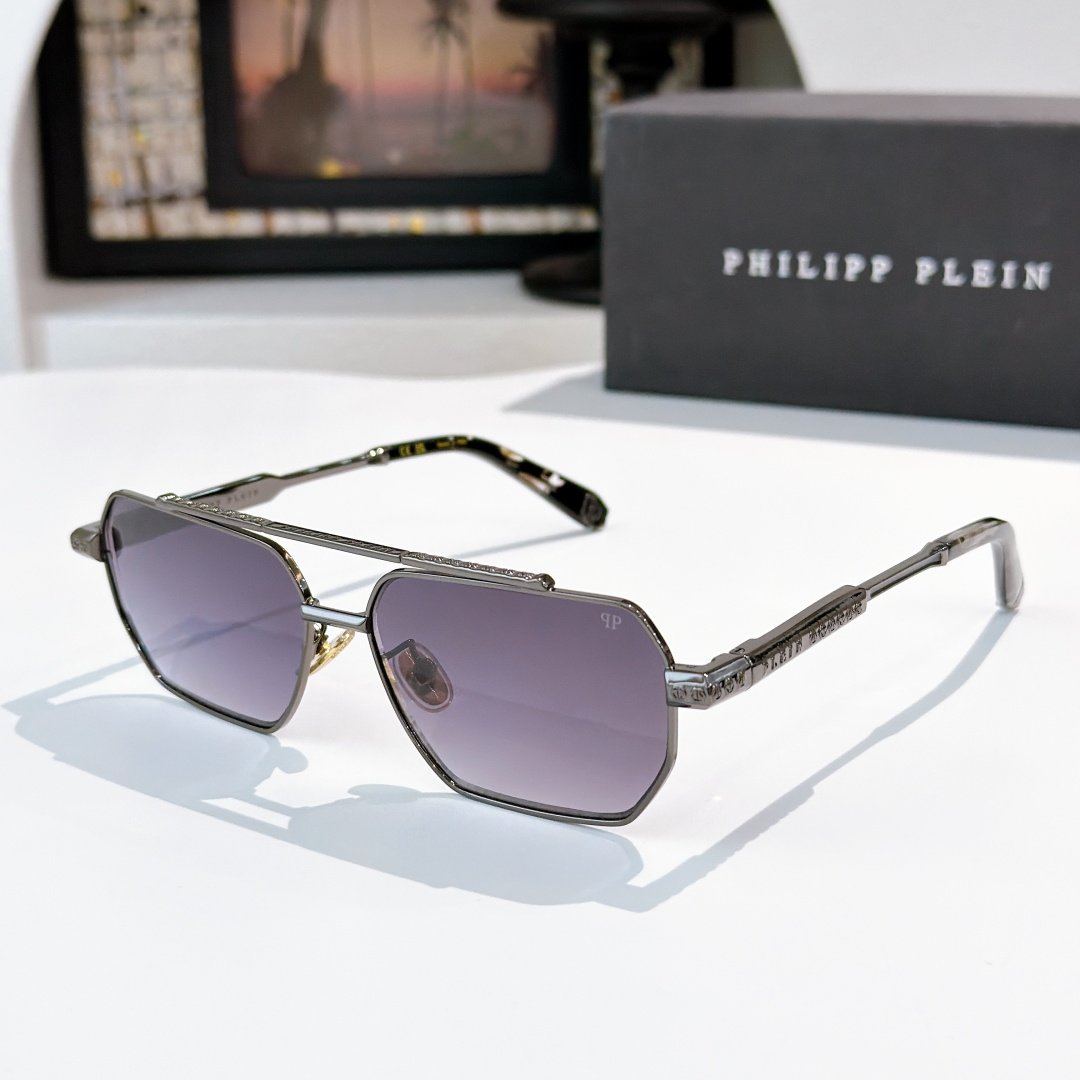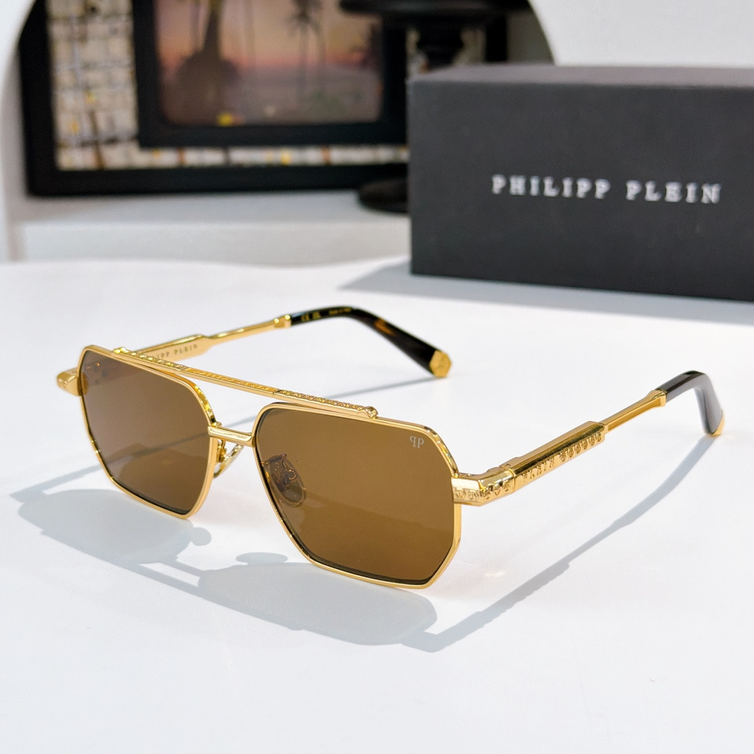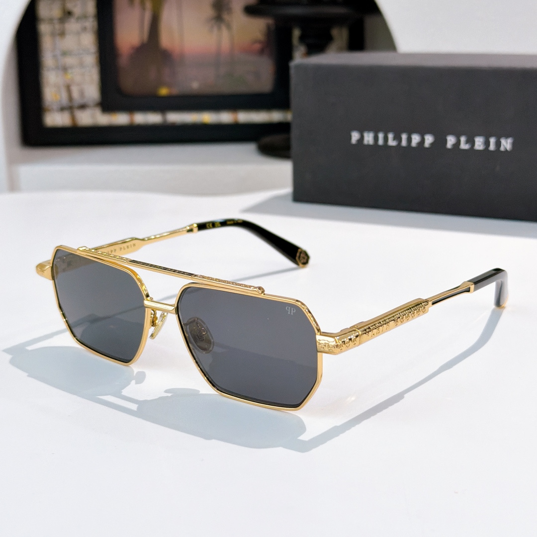这款太阳眼镜是AAAAA 1:1 质量 (非常棒). 使用了和原版一模一样的材料. 商标部分也保持了和菲利普·普林/Philipp Plein一样. 图片拍摄是实物太阳眼镜拍摄, 您所收到的实物保证和我们图片一模一样.