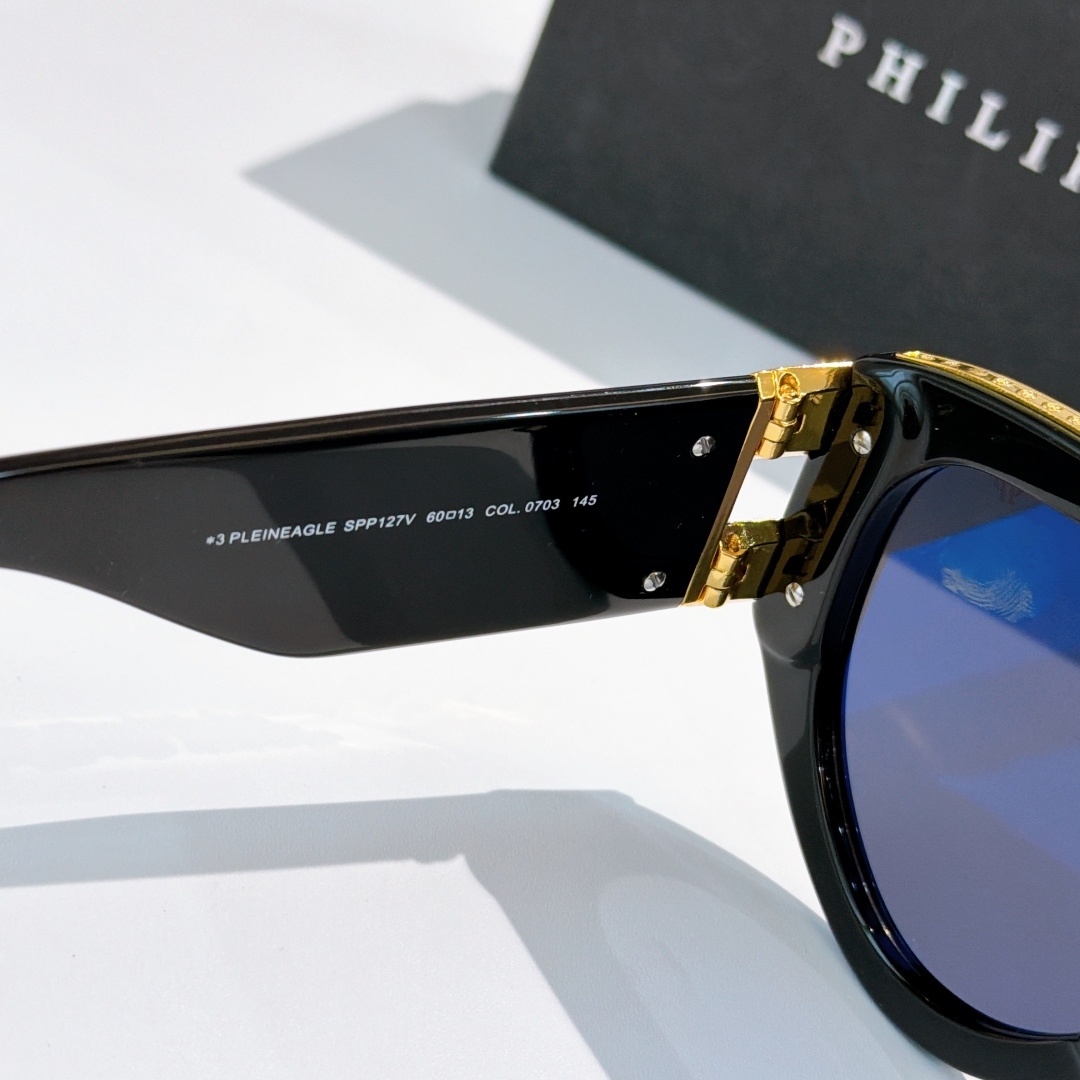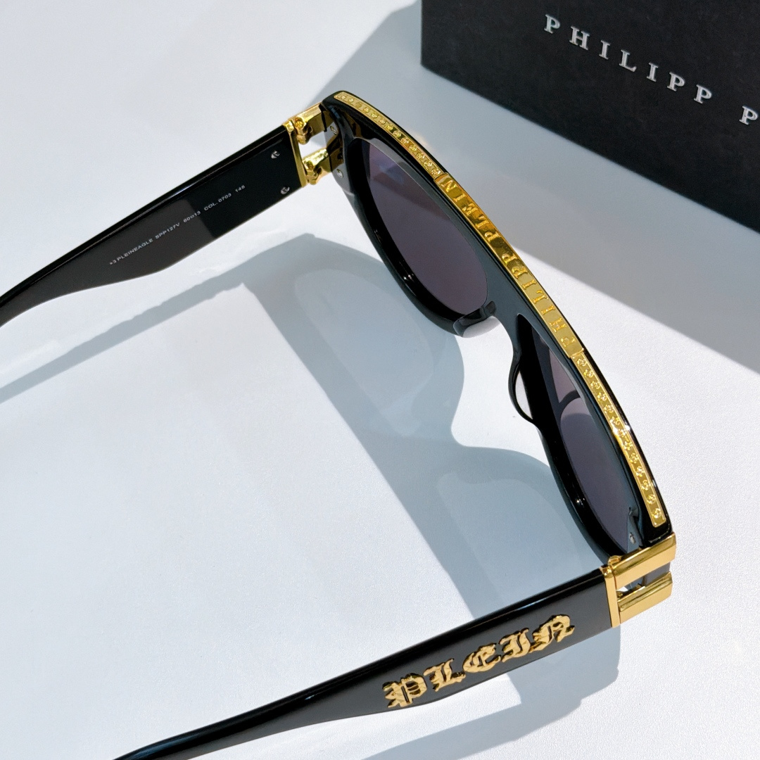 这款太阳眼镜是AAAAA 1:1 质量 (非常棒). 使用了和原版一模一样的材料. 商标部分也保持了和菲利普·普林/Philipp Plein一样. 图片拍摄是实物太阳眼镜拍摄, 您所收到的实物保证和我们图片一模一样.