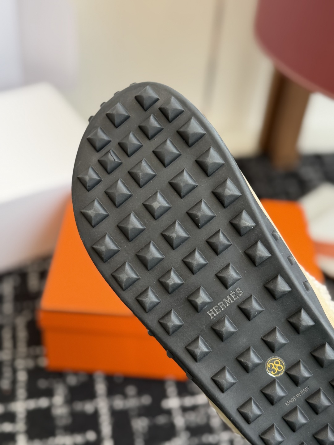 这款鞋子是AAAAA 1:1 质量 (非常棒). 使用了和原版一模一样的材料. 商标部分也保持了和爱马仕/Hermes一样. 图片拍摄是实物鞋子拍摄, 您所收到的实物保证和我们图片一模一样.