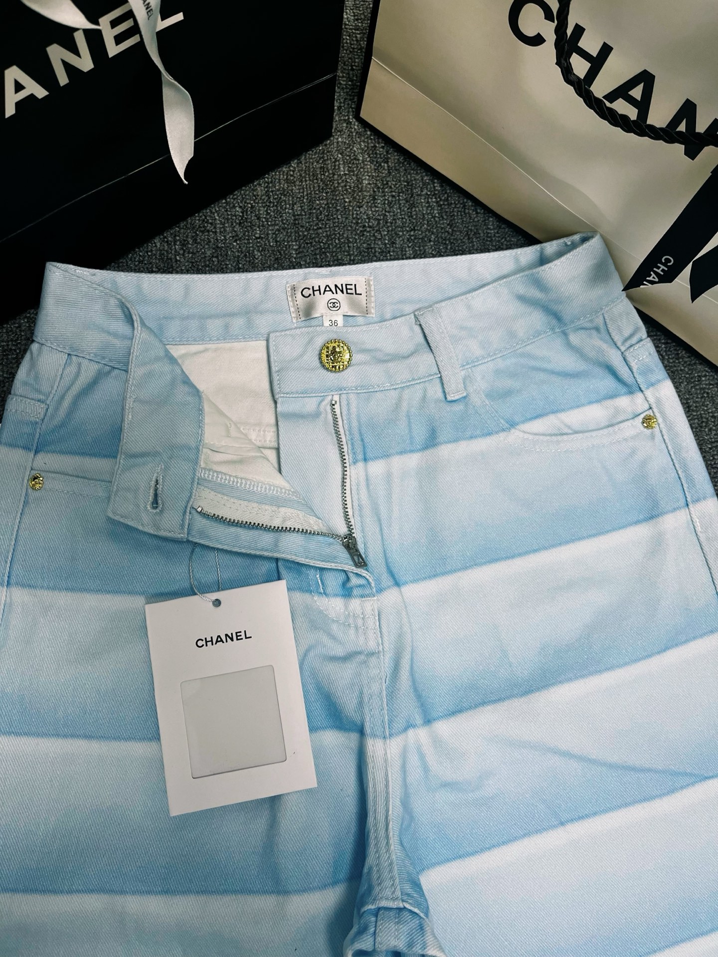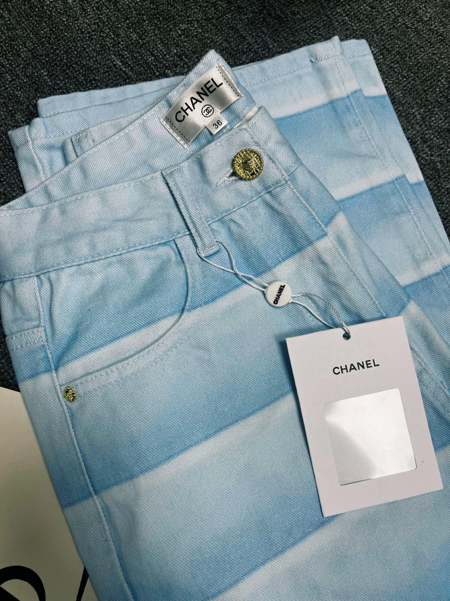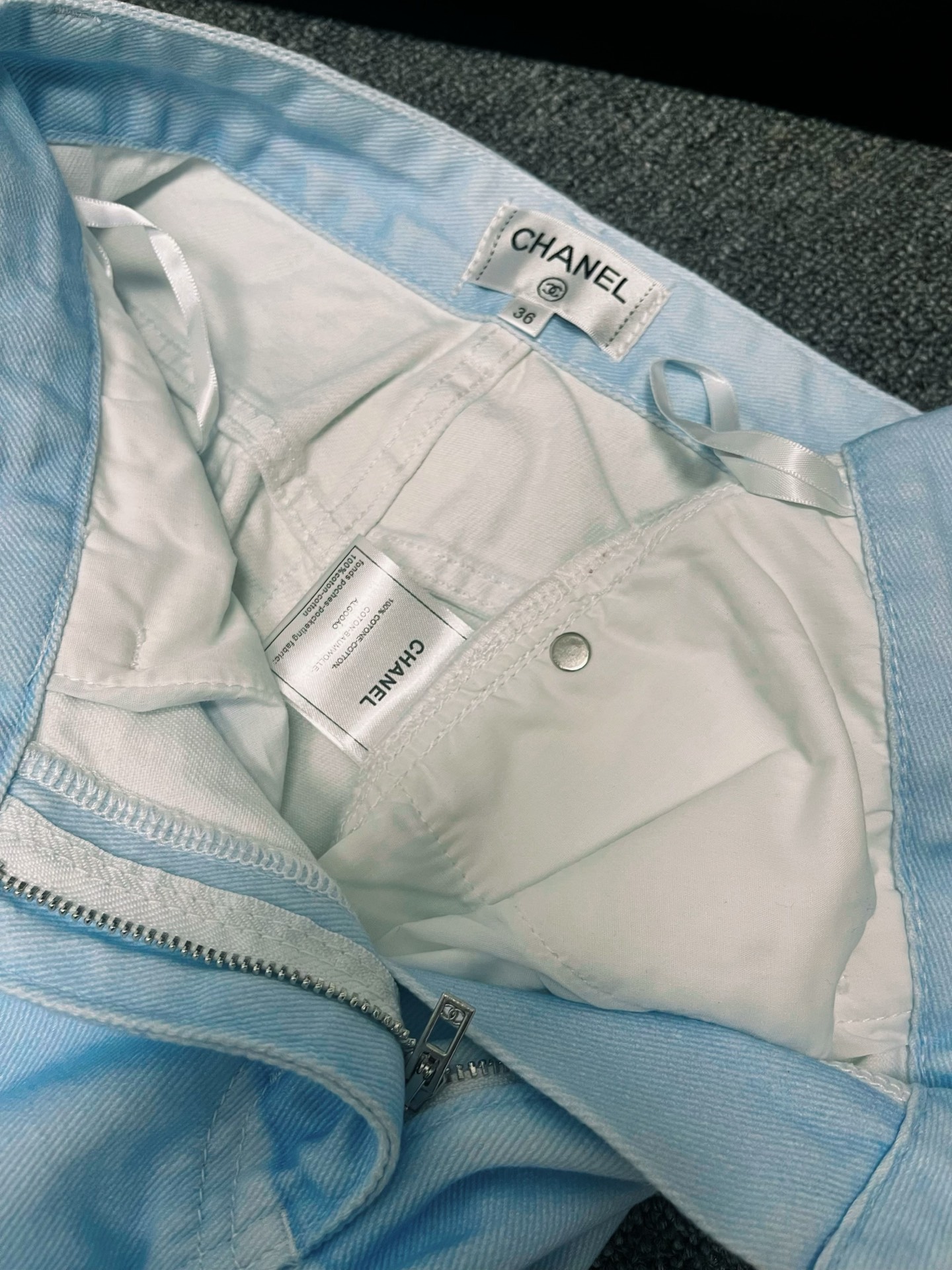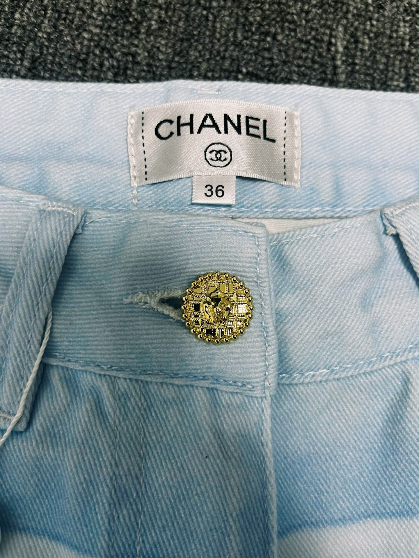 这款衣服是AAAAA 1:1 质量 (非常棒). 使用了和原版一模一样的材料. 商标部分也保持了和香奈儿/Chanel一样. 图片拍摄是实物衣服拍摄, 您所收到的实物保证和我们图片一模一样.