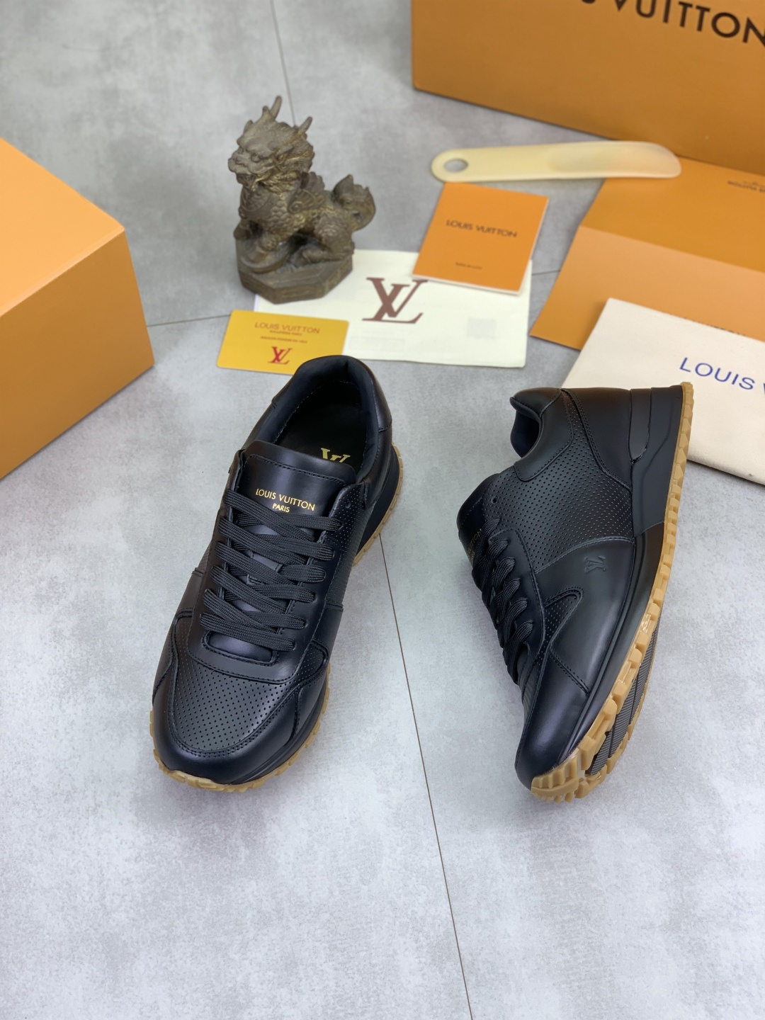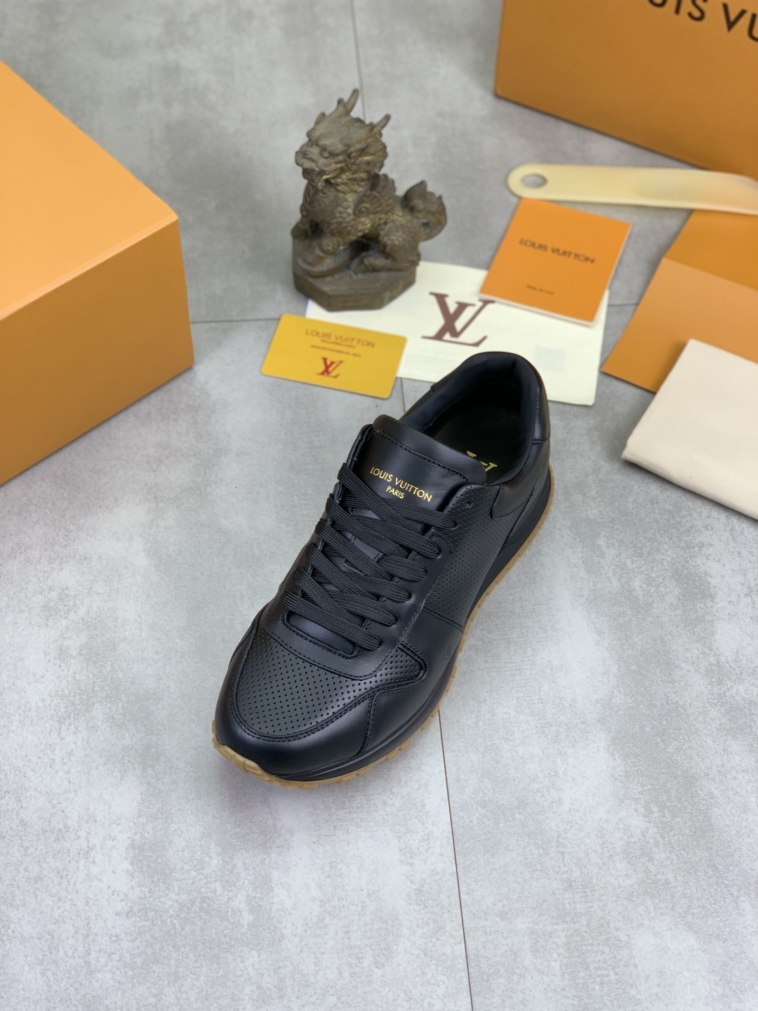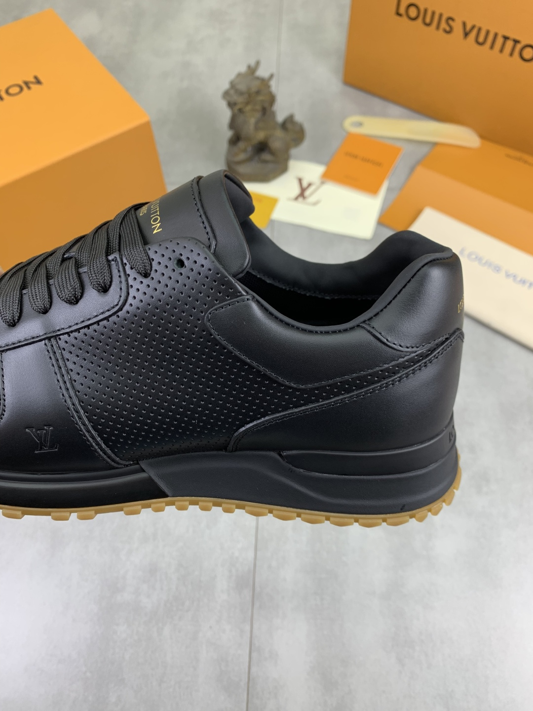 这款鞋子是AAAAA 1:1 质量 (非常棒). 使用了和原版一模一样的材料. 商标部分也保持了和路易威登/Louis Vuitton一样. 图片拍摄是实物鞋子拍摄, 您所收到的实物保证和我们图片一模一样.