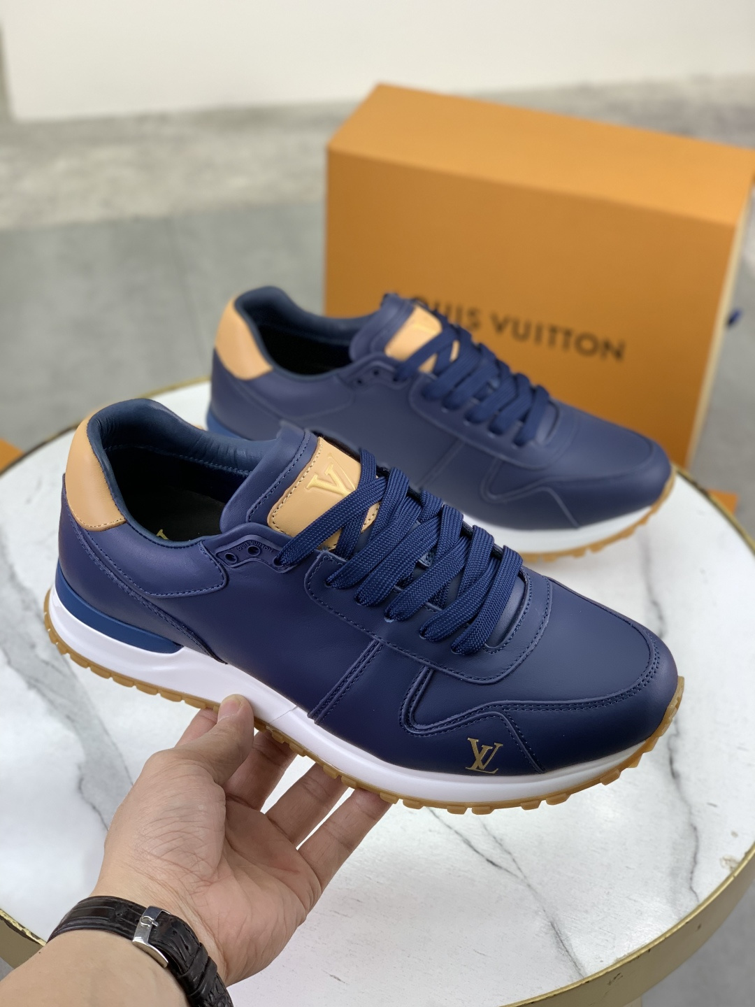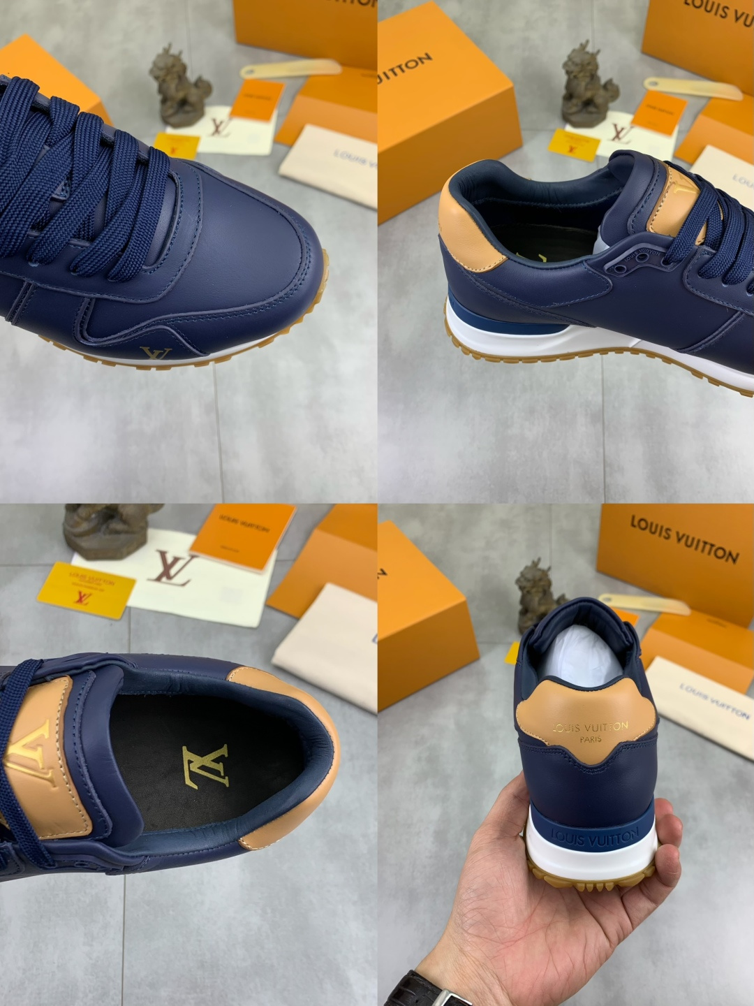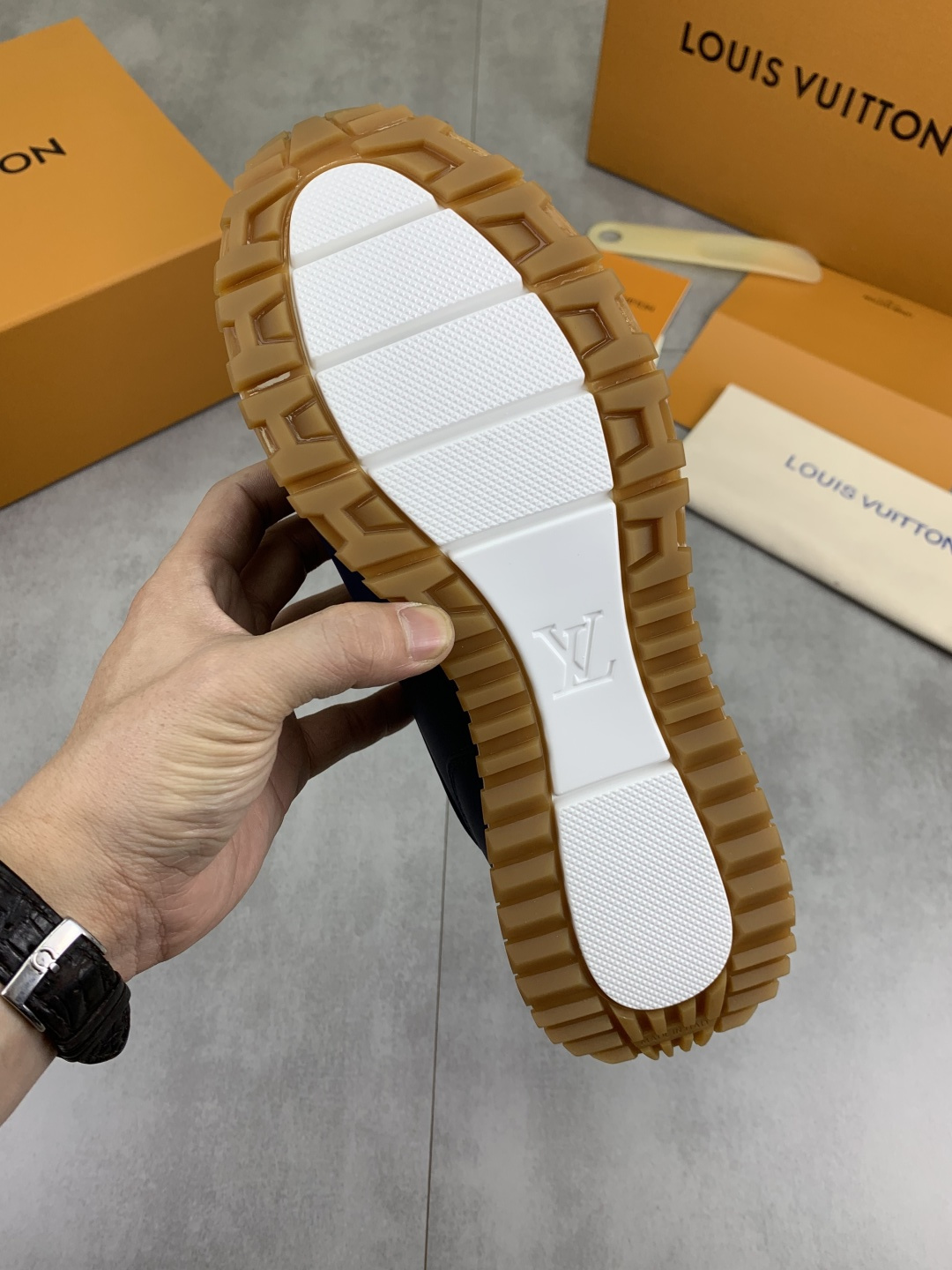 这款鞋子是AAAAA 1:1 质量 (非常棒). 使用了和原版一模一样的材料. 商标部分也保持了和路易威登/Louis Vuitton一样. 图片拍摄是实物鞋子拍摄, 您所收到的实物保证和我们图片一模一样.