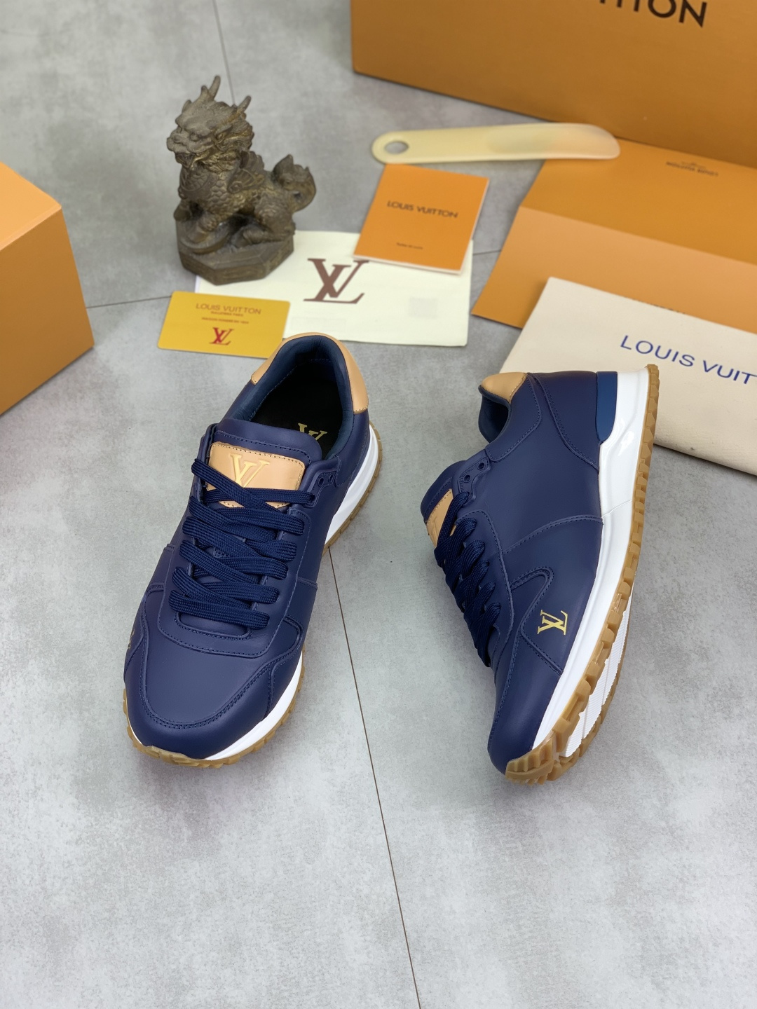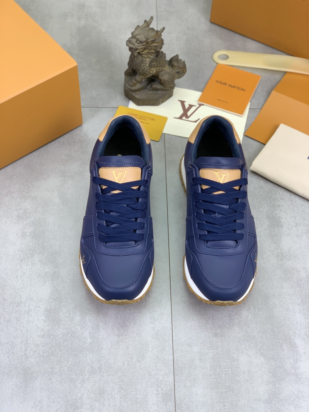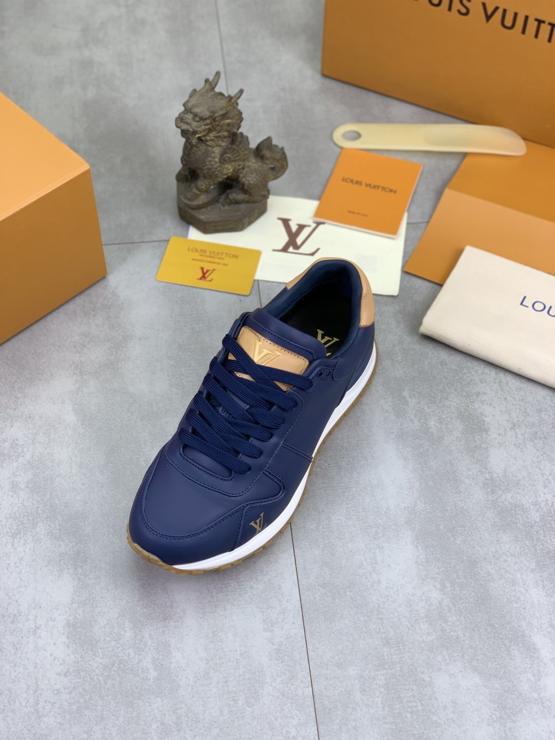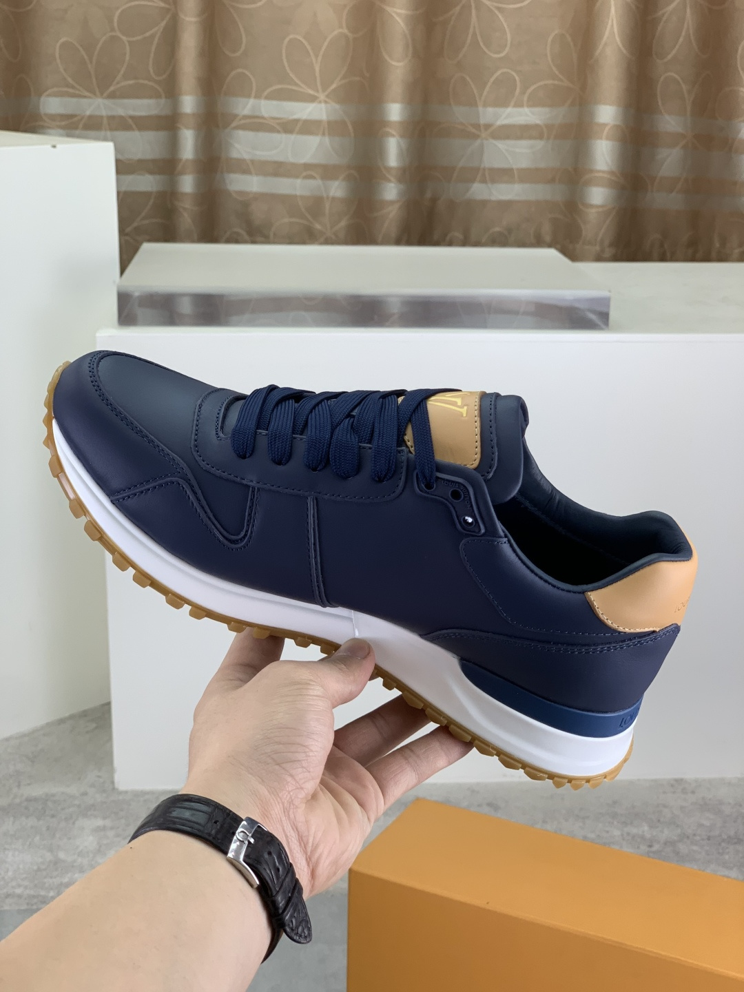 这款鞋子是AAAAA 1:1 质量 (非常棒). 使用了和原版一模一样的材料. 商标部分也保持了和路易威登/Louis Vuitton一样. 图片拍摄是实物鞋子拍摄, 您所收到的实物保证和我们图片一模一样.