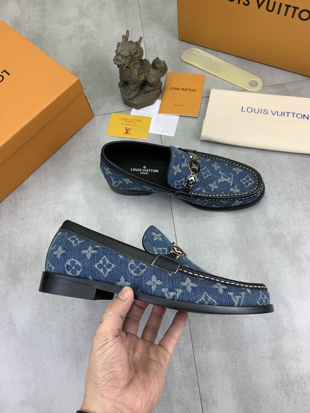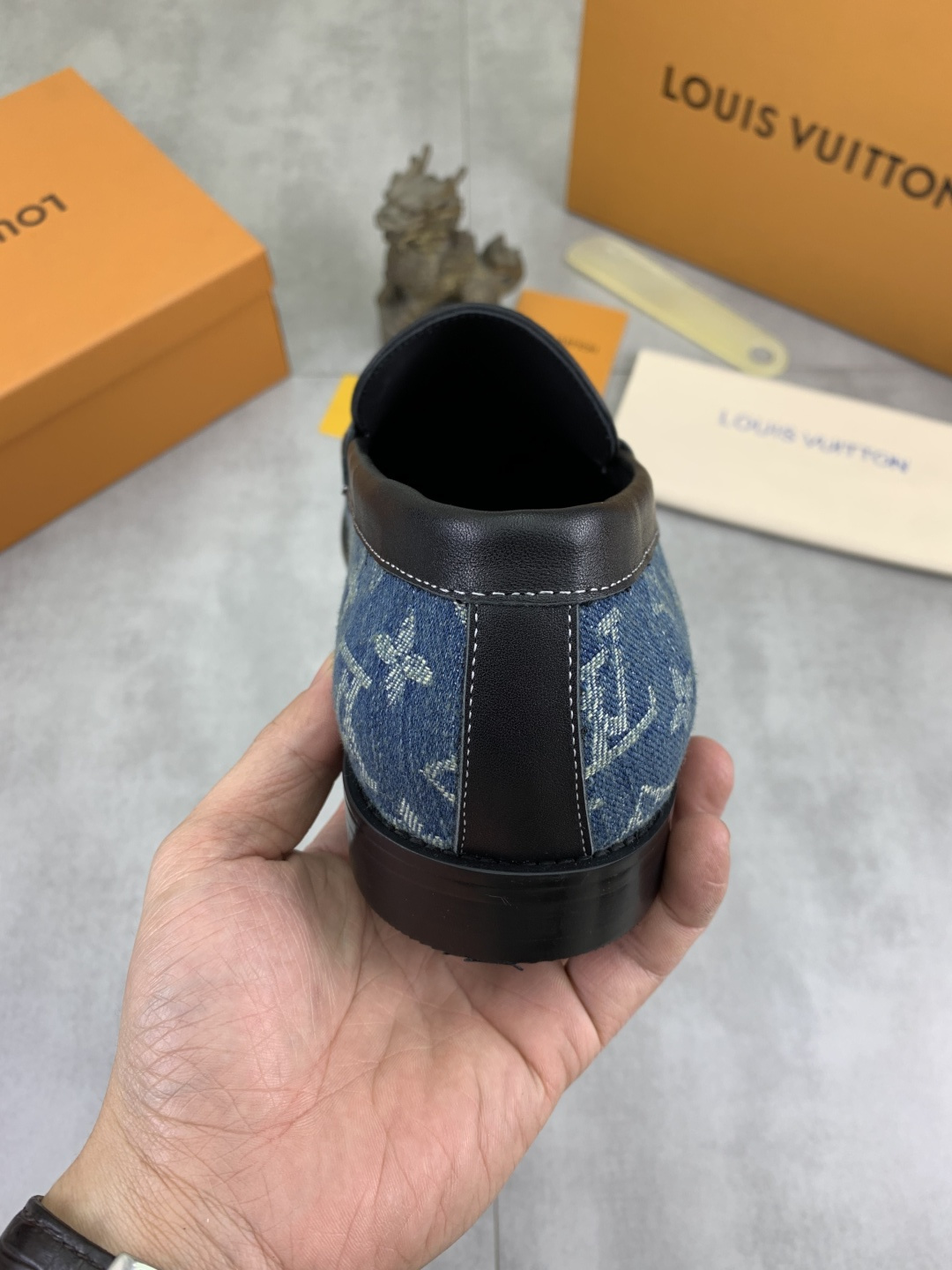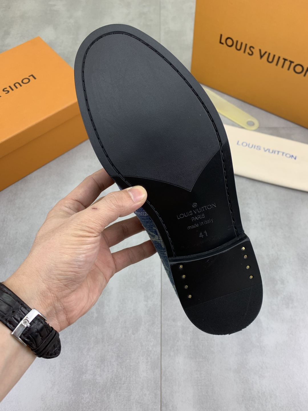 这款鞋子是AAAAA 1:1 质量 (非常棒). 使用了和原版一模一样的材料. 商标部分也保持了和路易威登/Louis Vuitton一样. 图片拍摄是实物鞋子拍摄, 您所收到的实物保证和我们图片一模一样.