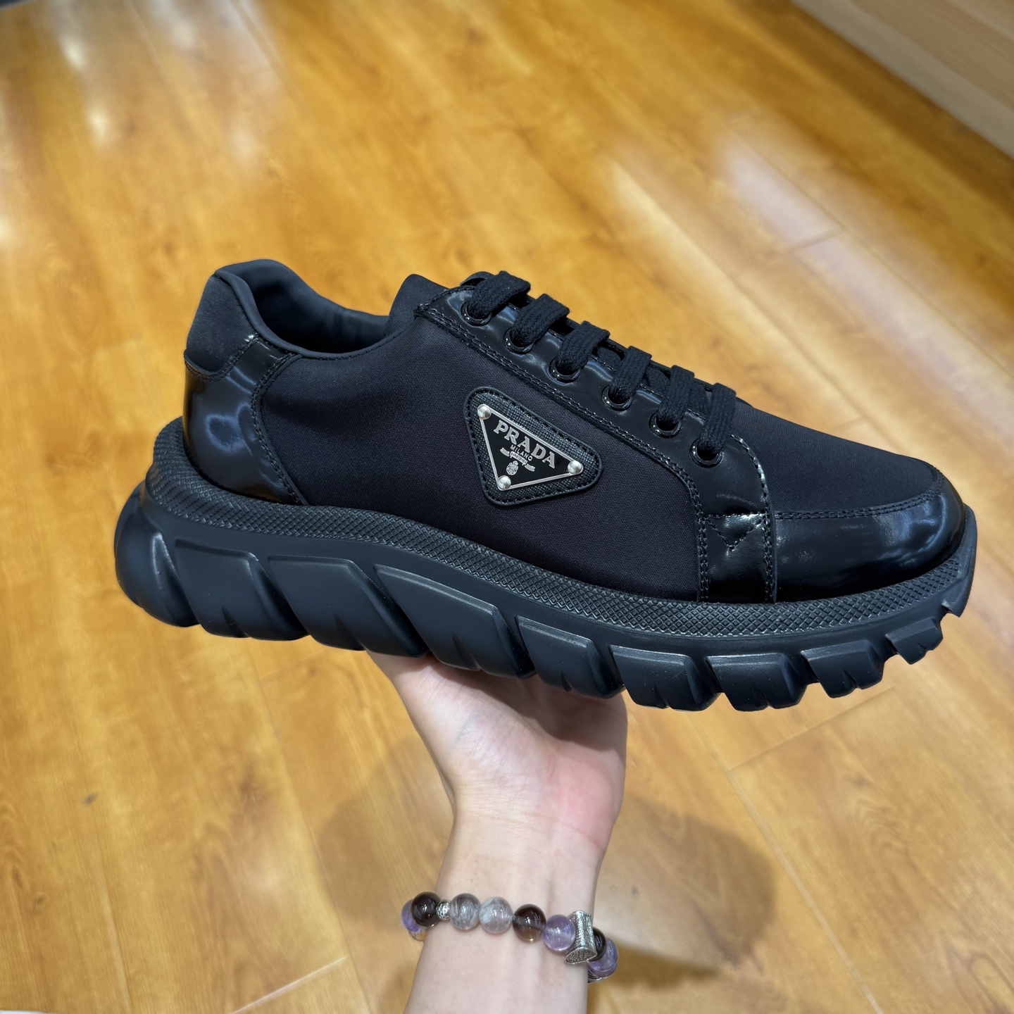 这款鞋子是AAAAA 1:1 质量 (非常棒). 使用了和原版一模一样的材料. 商标部分也保持了和普拉达/Prada一样. 图片拍摄是实物鞋子拍摄, 您所收到的实物保证和我们图片一模一样.
