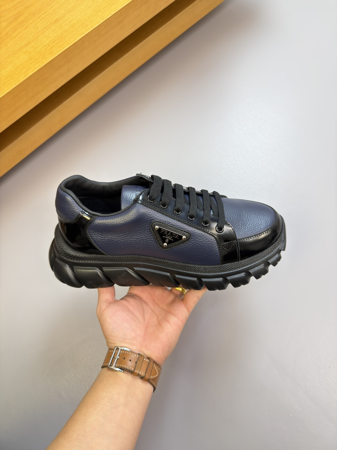 这款鞋子是AAAAA 1:1 质量 (非常棒). 使用了和原版一模一样的材料. 商标部分也保持了和普拉达/Prada一样. 图片拍摄是实物鞋子拍摄, 您所收到的实物保证和我们图片一模一样.