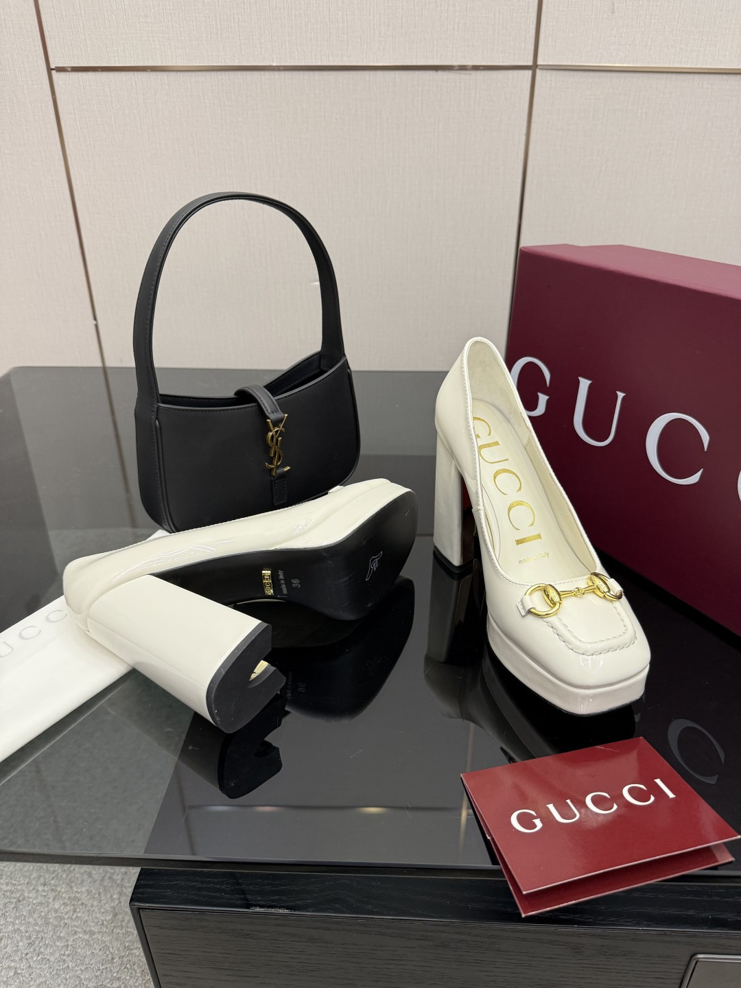 这款鞋子是AAAAA 1:1 质量 (非常棒). 使用了和原版一模一样的材料. 商标部分也保持了和古奇/Gucci一样. 图片拍摄是实物鞋子拍摄, 您所收到的实物保证和我们图片一模一样.