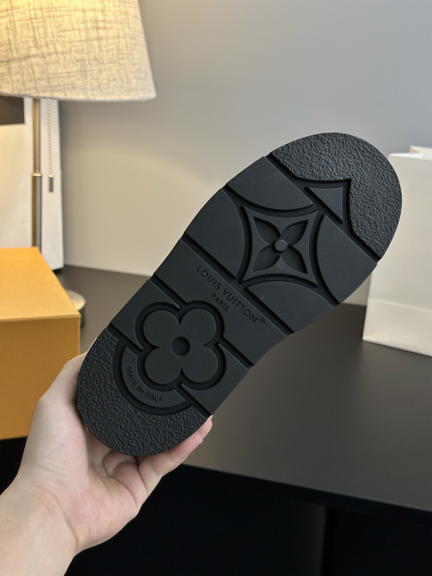这款鞋子是AAAAA 1:1 质量 (非常棒). 使用了和原版一模一样的材料. 商标部分也保持了和路易威登/Louis Vuitton一样. 图片拍摄是实物鞋子拍摄, 您所收到的实物保证和我们图片一模一样.