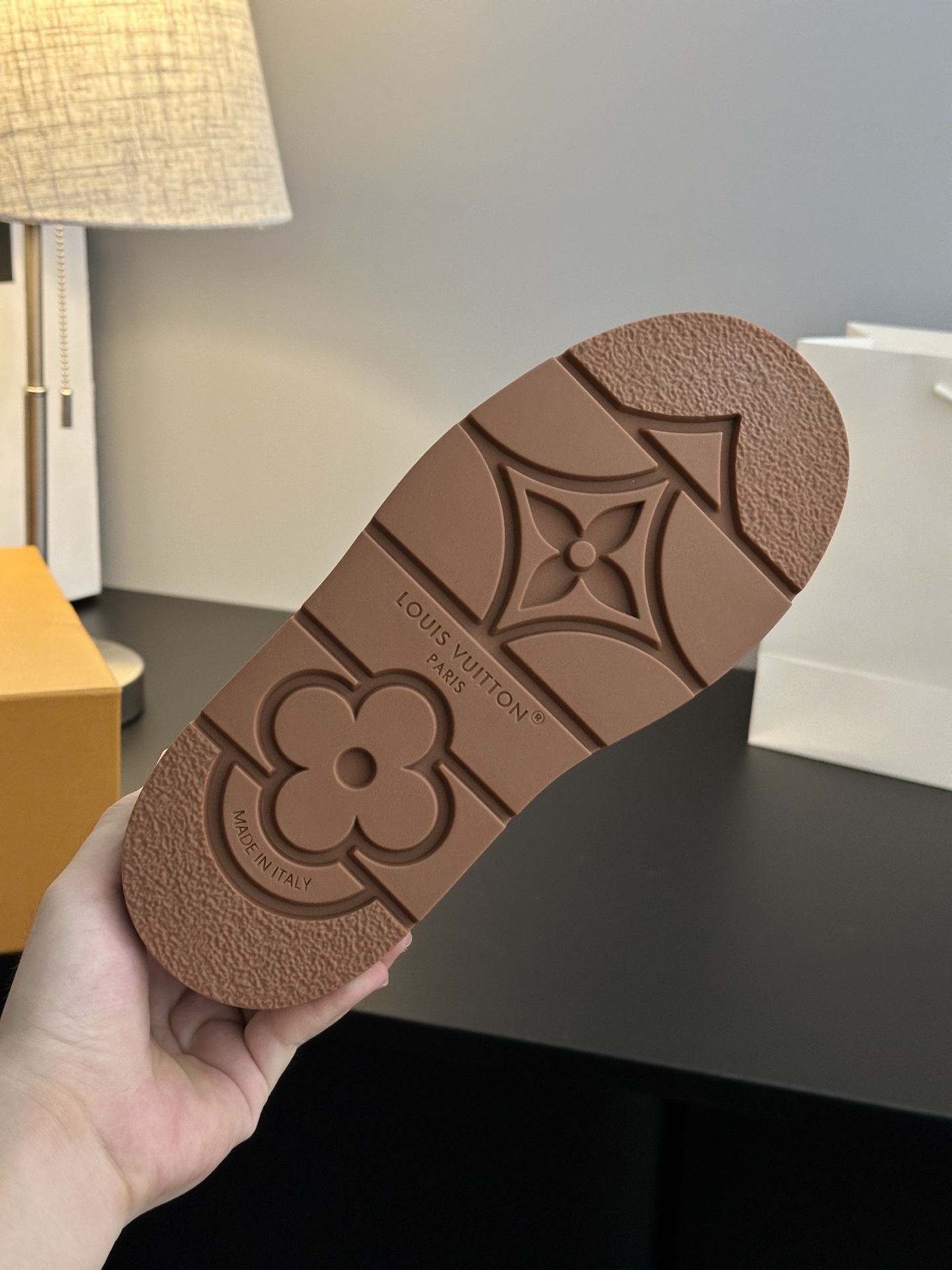这款鞋子是AAAAA 1:1 质量 (非常棒). 使用了和原版一模一样的材料. 商标部分也保持了和路易威登/Louis Vuitton一样. 图片拍摄是实物鞋子拍摄, 您所收到的实物保证和我们图片一模一样.