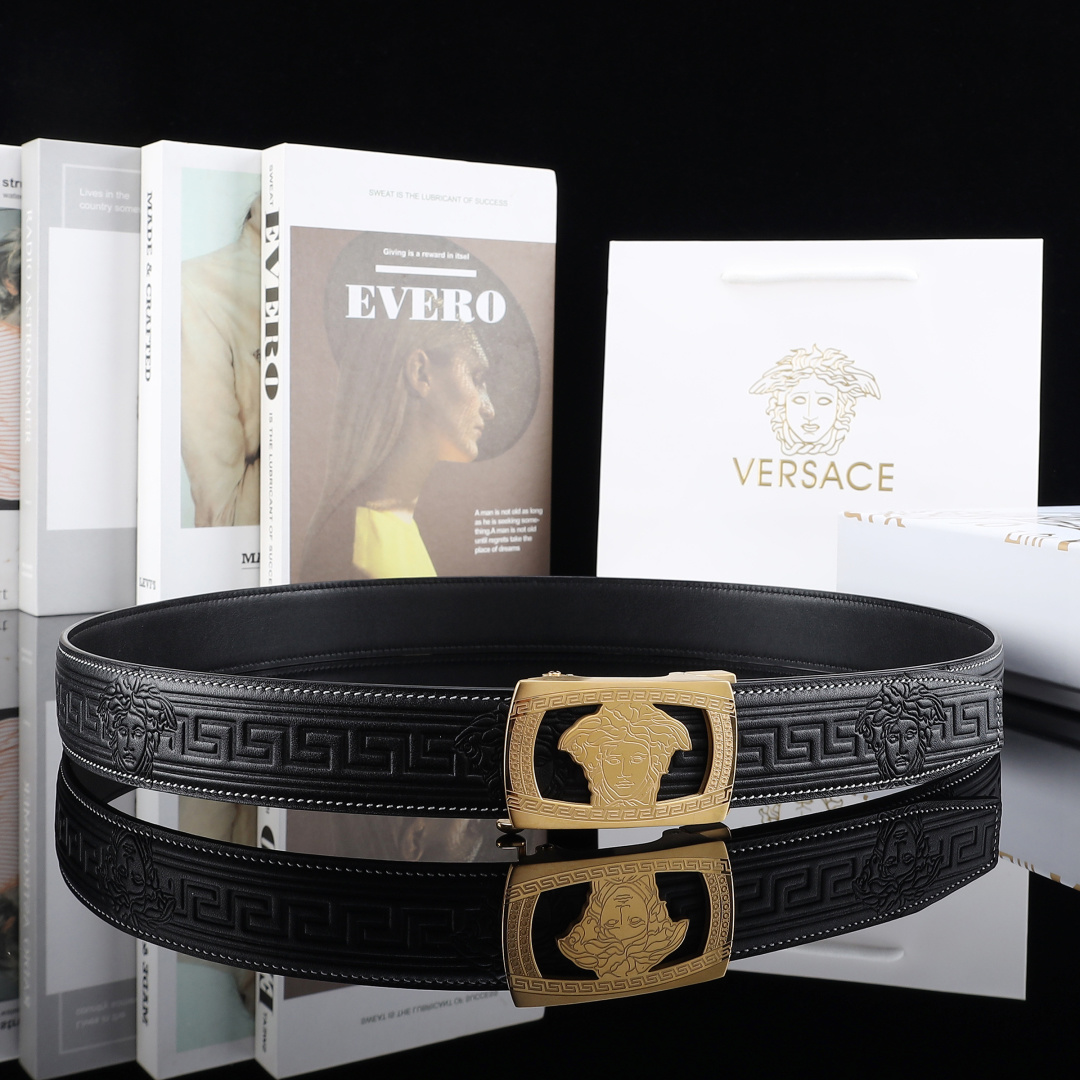 这款皮带是AAAAA 1:1 质量 (非常棒). 使用了和原版一模一样的材料. 商标部分也保持了和范思哲/Versace一样. 图片拍摄是实物皮带拍摄, 您所收到的实物保证和我们图片一模一样.