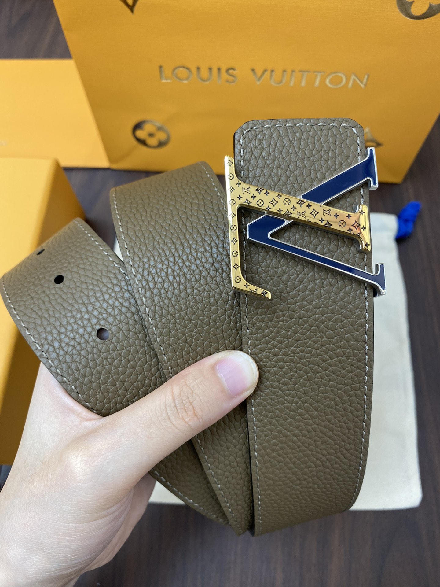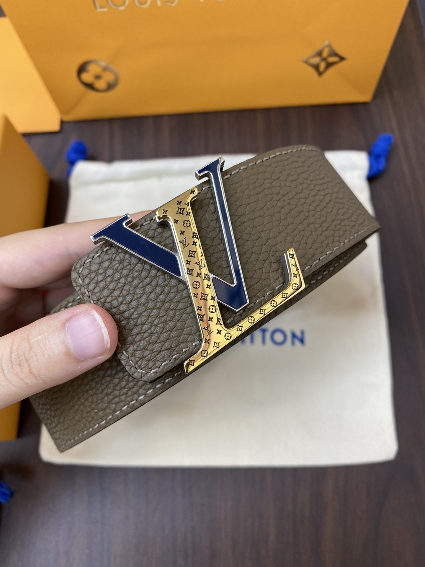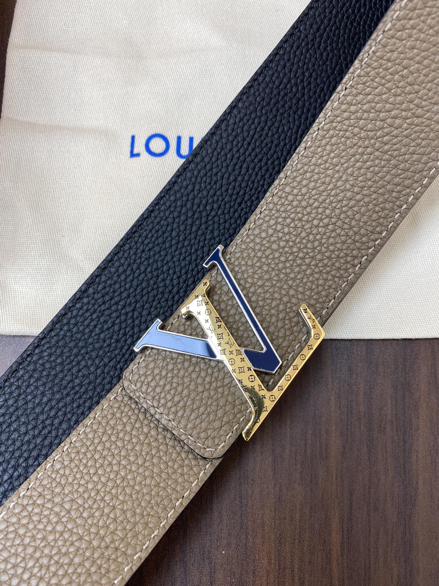 这款皮带是AAAAA 1:1 质量 (非常棒). 使用了和原版一模一样的材料. 商标部分也保持了和路易威登/Louis Vuitton一样. 图片拍摄是实物皮带拍摄, 您所收到的实物保证和我们图片一模一样.