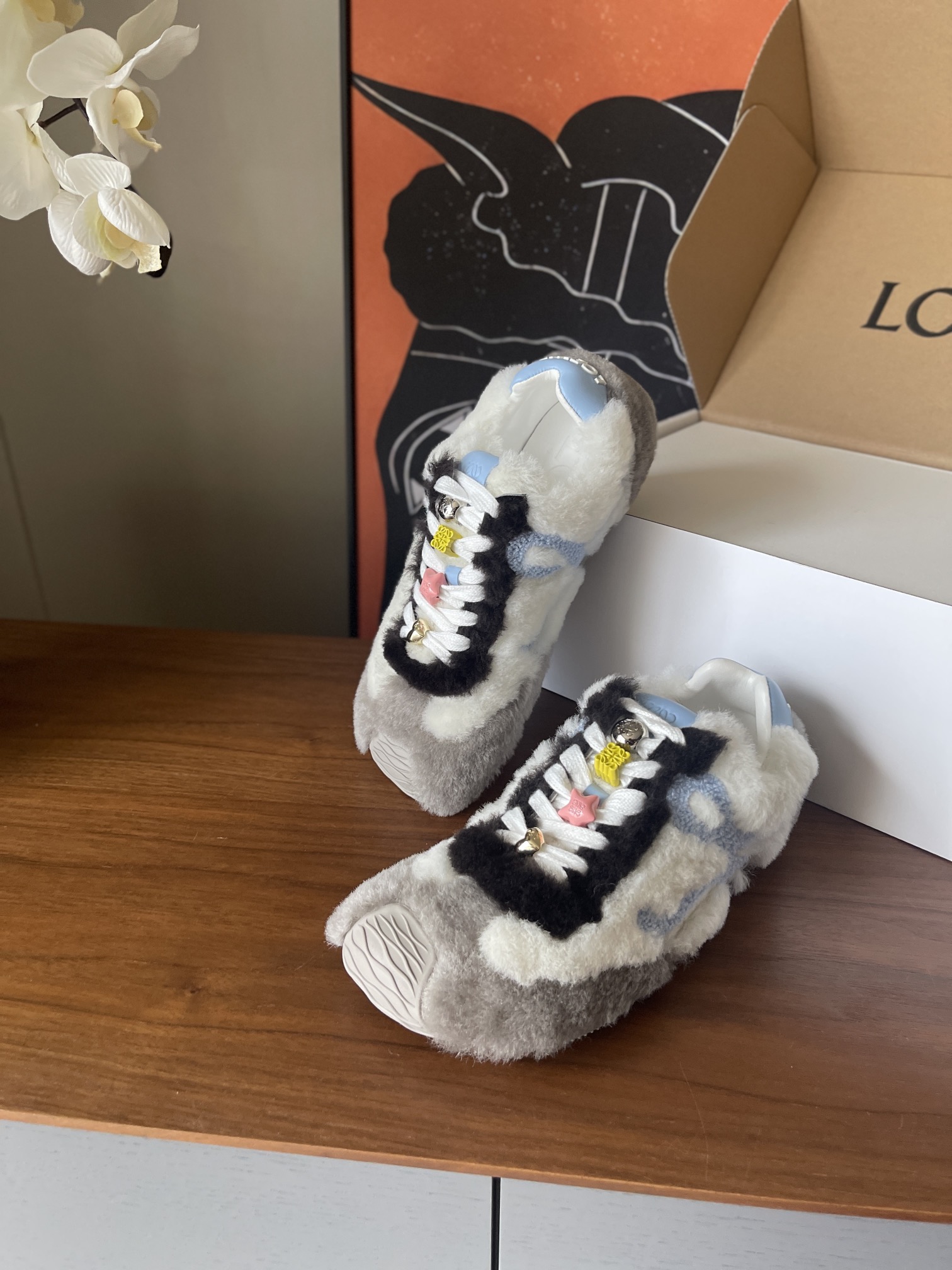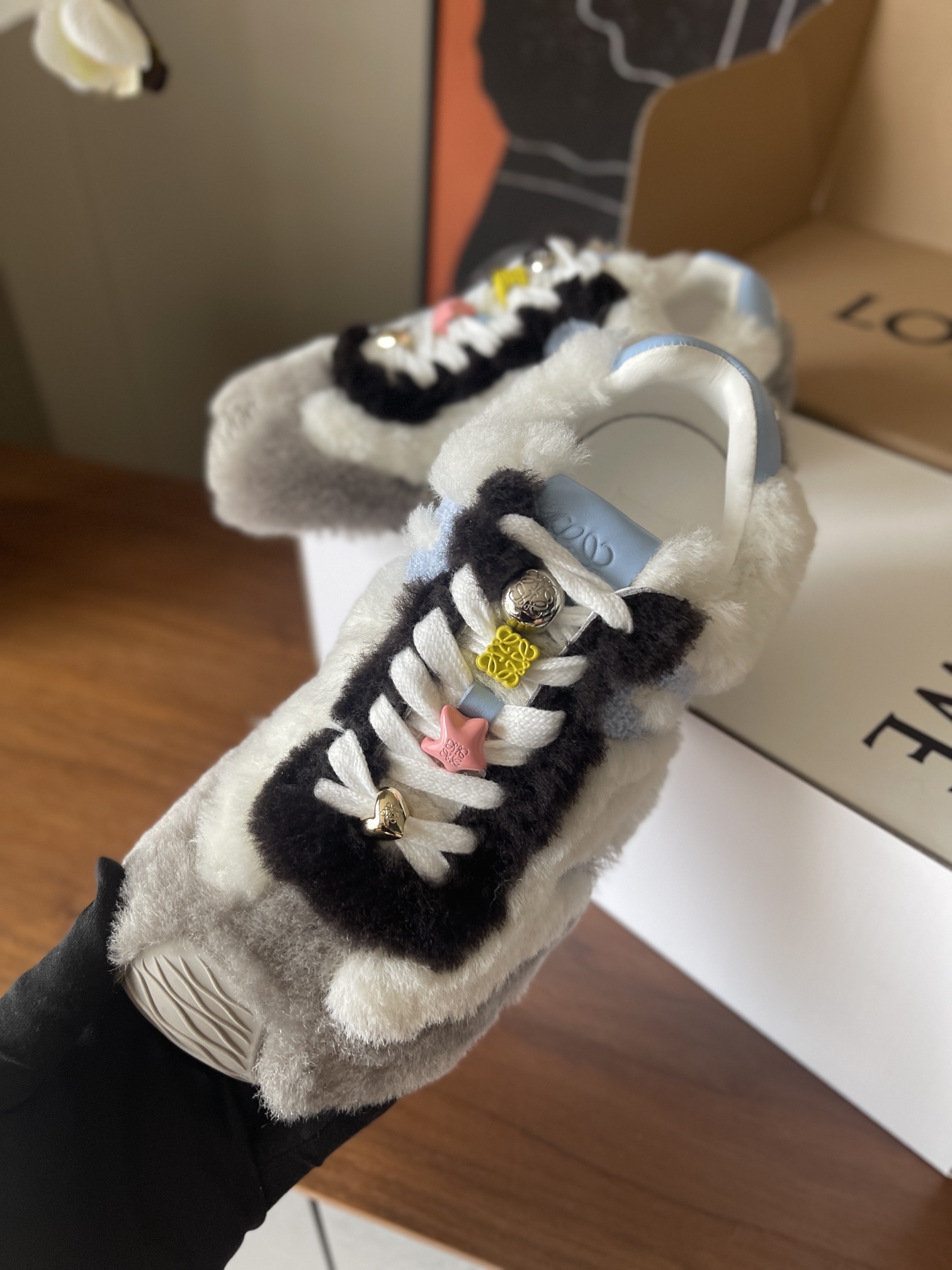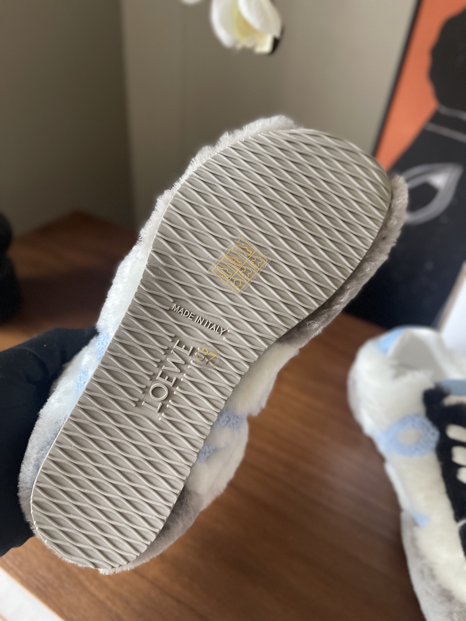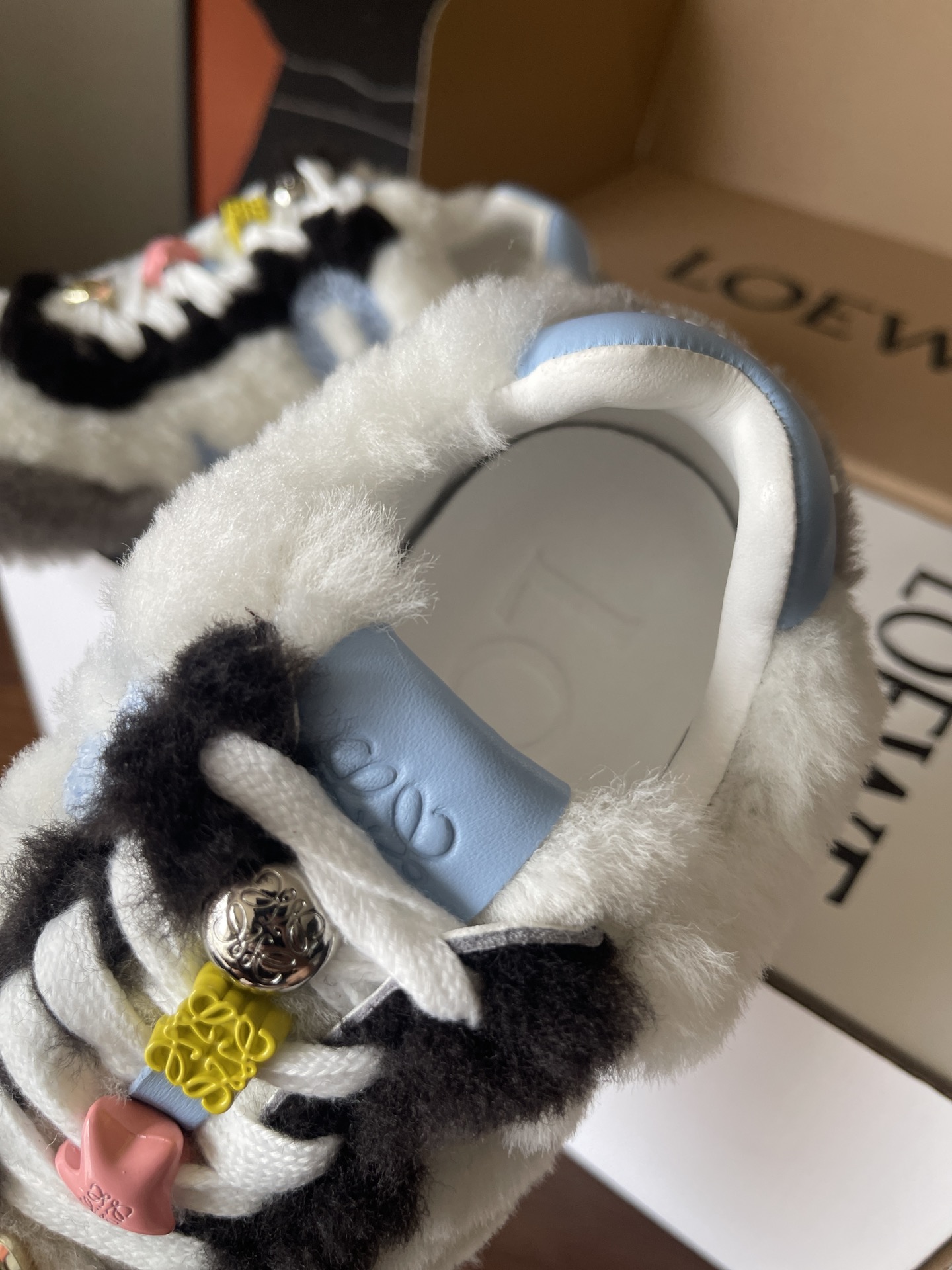 这款鞋子是AAAAA 1:1 质量 (非常棒). 使用了和原版一模一样的材料. 商标部分也保持了和罗意威/Loewe一样. 图片拍摄是实物鞋子拍摄, 您所收到的实物保证和我们图片一模一样.
