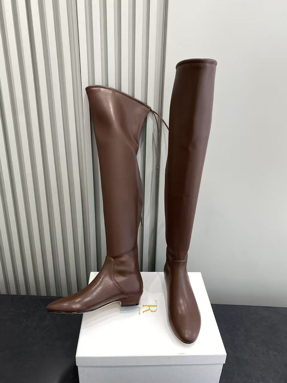 这款鞋子是AAAAA 1:1 质量 (非常棒). 使用了和原版一模一样的材料. 商标部分也保持了和The Row一样. 图片拍摄是实物鞋子拍摄, 您所收到的实物保证和我们图片一模一样.