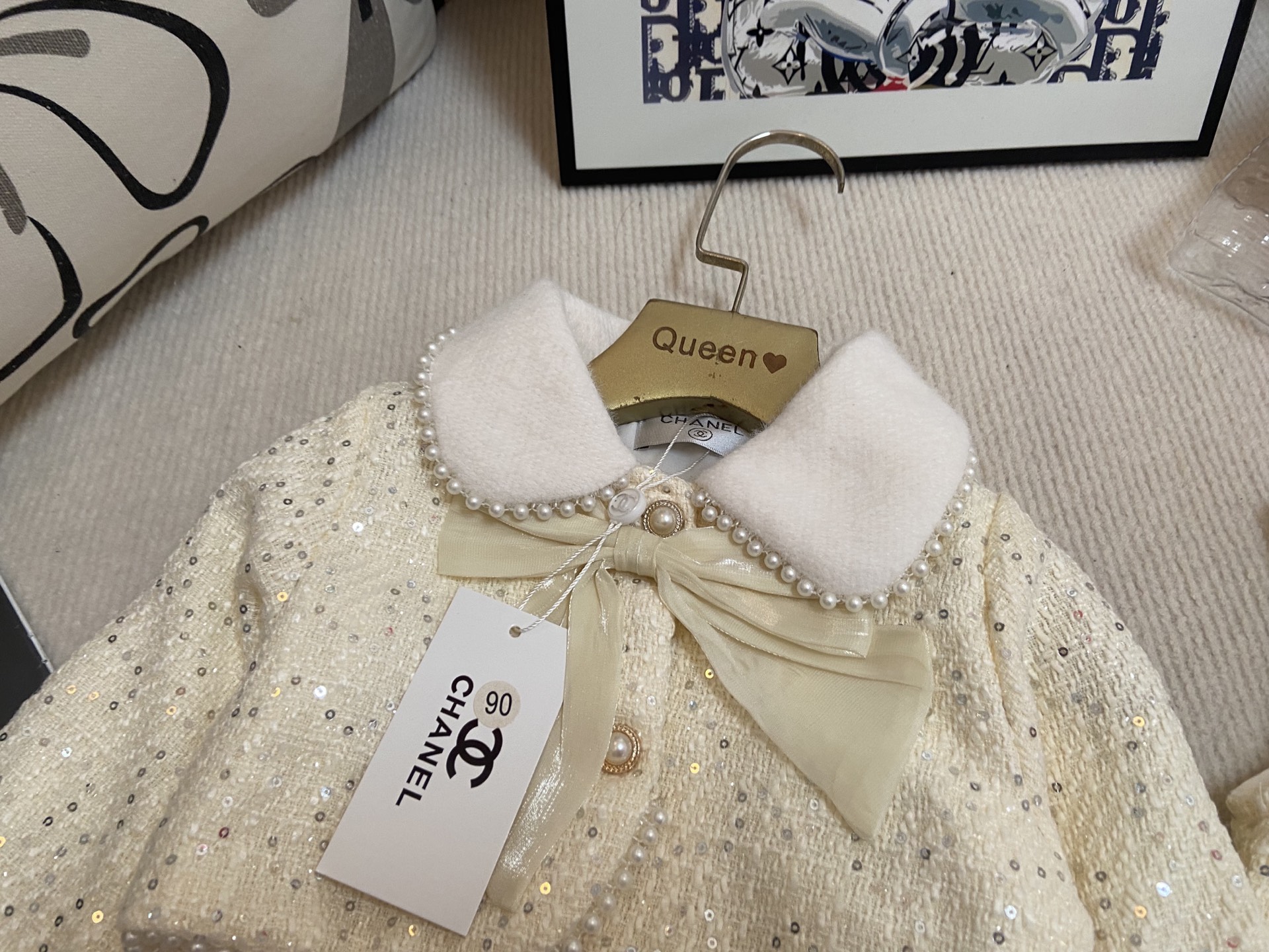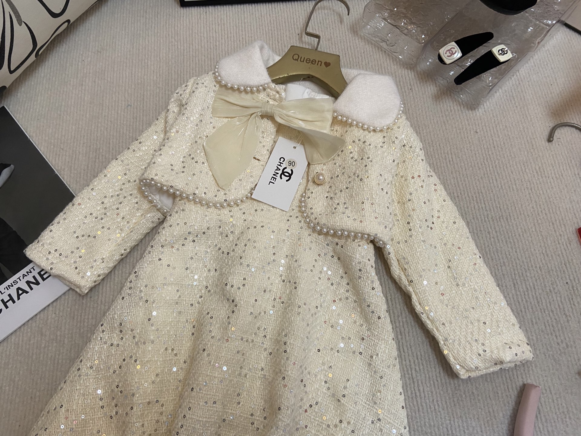 这款children's clothes是AAAAA 1:1 质量 (非常棒). 使用了和原版一模一样的材料. 商标部分也保持了和香奈儿/Chanel一样. 图片拍摄是实物children's clothes拍摄, 您所收到的实物保证和我们图片一模一样.
