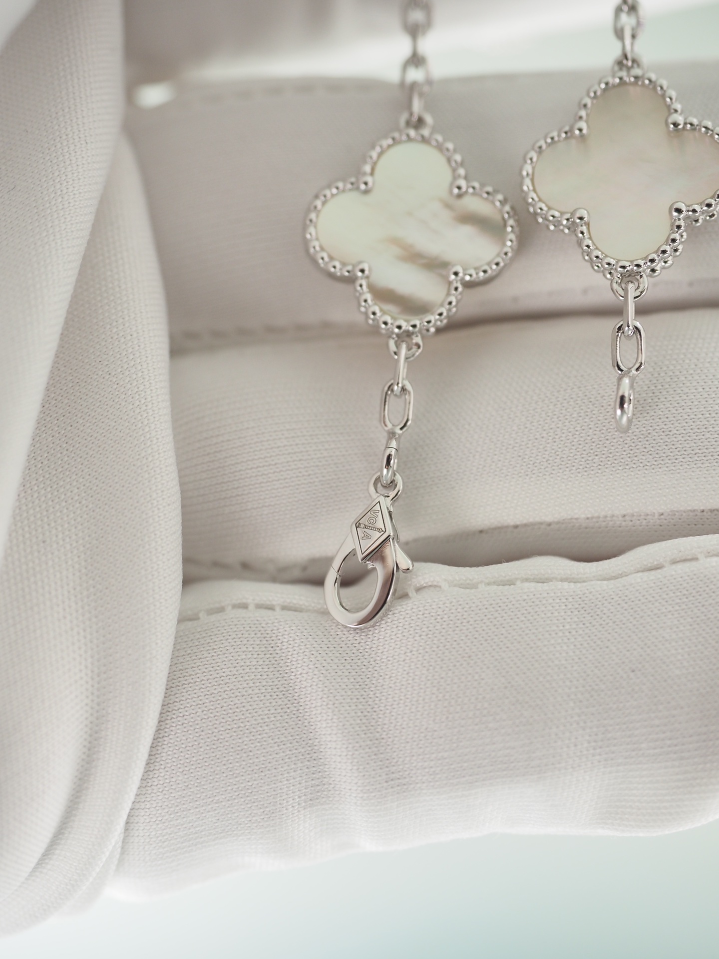 这款首饰是AAAAA 1:1 质量 (非常棒). 使用了和原版一模一样的材料. 商标部分也保持了和梵克雅宝/Van Cleef & Arpels一样. 图片拍摄是实物首饰拍摄, 您所收到的实物保证和我们图片一模一样.