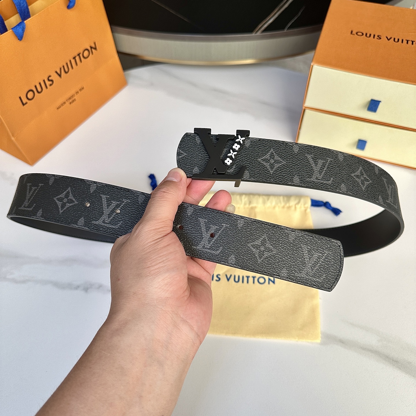这款皮带是AAAAA 1:1 质量 (非常棒). 使用了和原版一模一样的材料. 商标部分也保持了和一样. 图片拍摄是实物皮带拍摄, 您所收到的实物保证和我们图片一模一样.