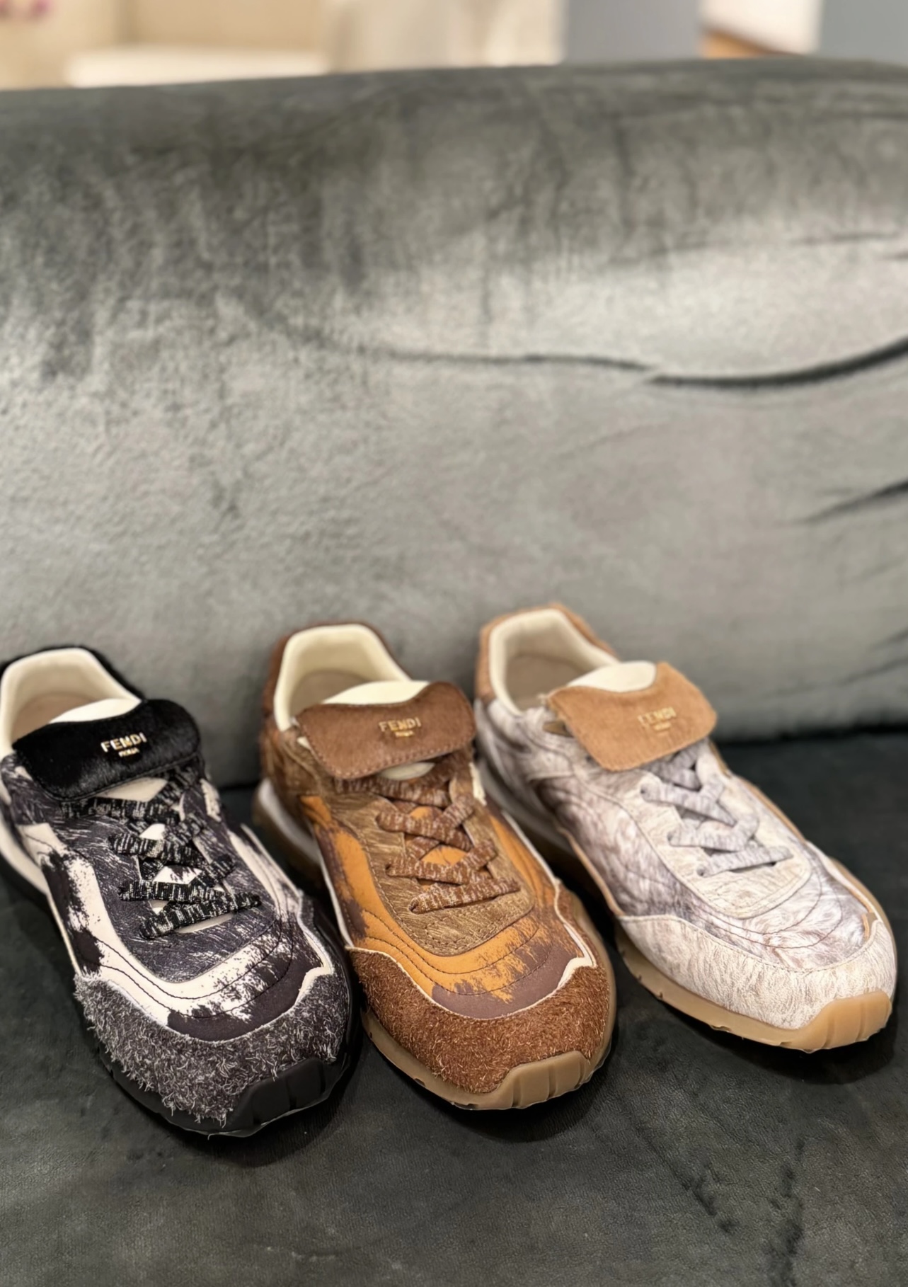 这款鞋子是AAAAA 1:1 质量 (非常棒). 使用了和原版一模一样的材料. 商标部分也保持了和芬迪/Fendi一样. 图片拍摄是实物鞋子拍摄, 您所收到的实物保证和我们图片一模一样.