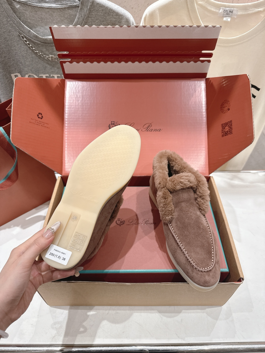 这款鞋子是AAAAA 1:1 质量 (非常棒). 使用了和原版一模一样的材料. 商标部分也保持了和洛罗皮亚纳/Loro Piana一样. 图片拍摄是实物鞋子拍摄, 您所收到的实物保证和我们图片一模一样.