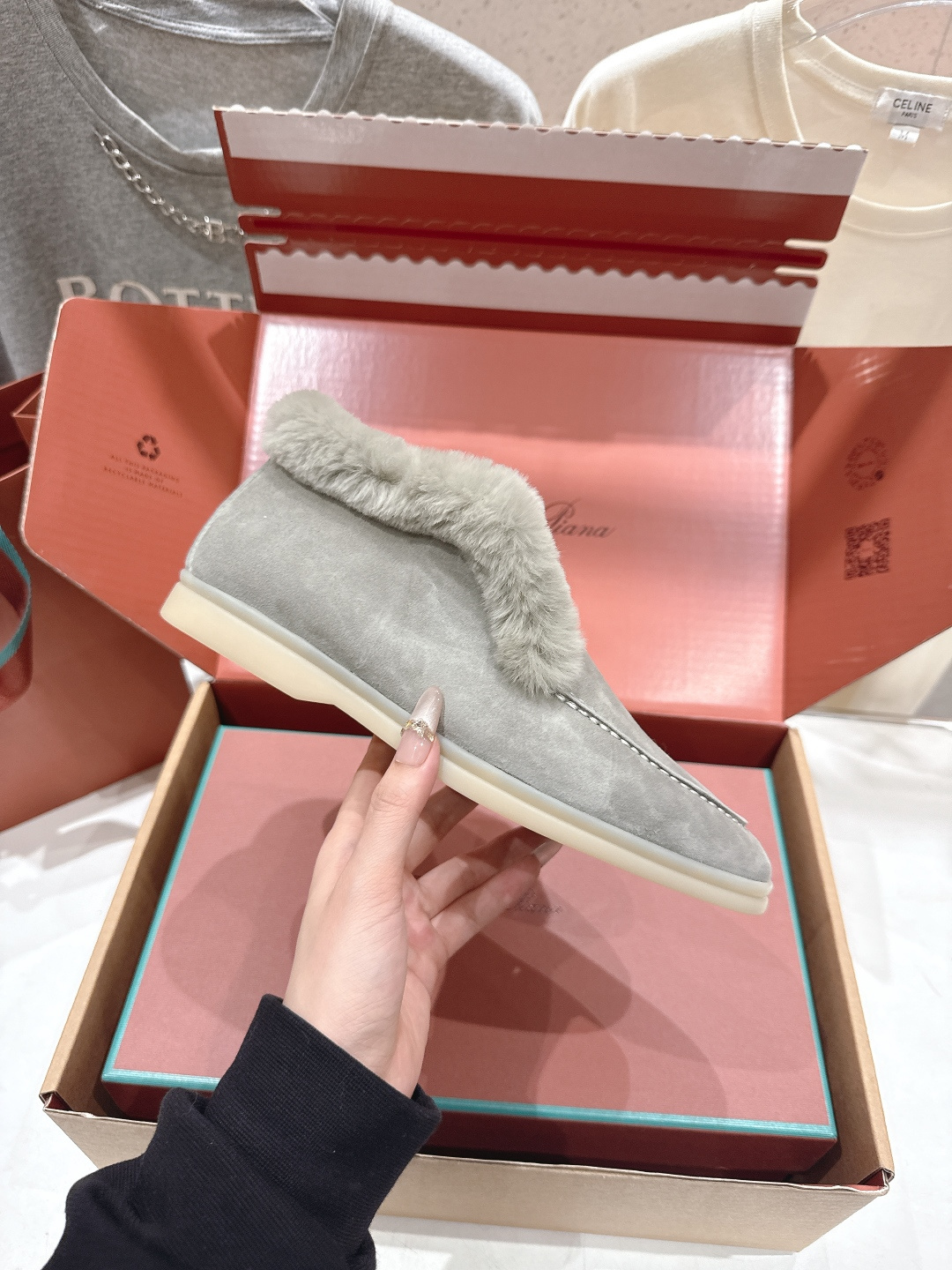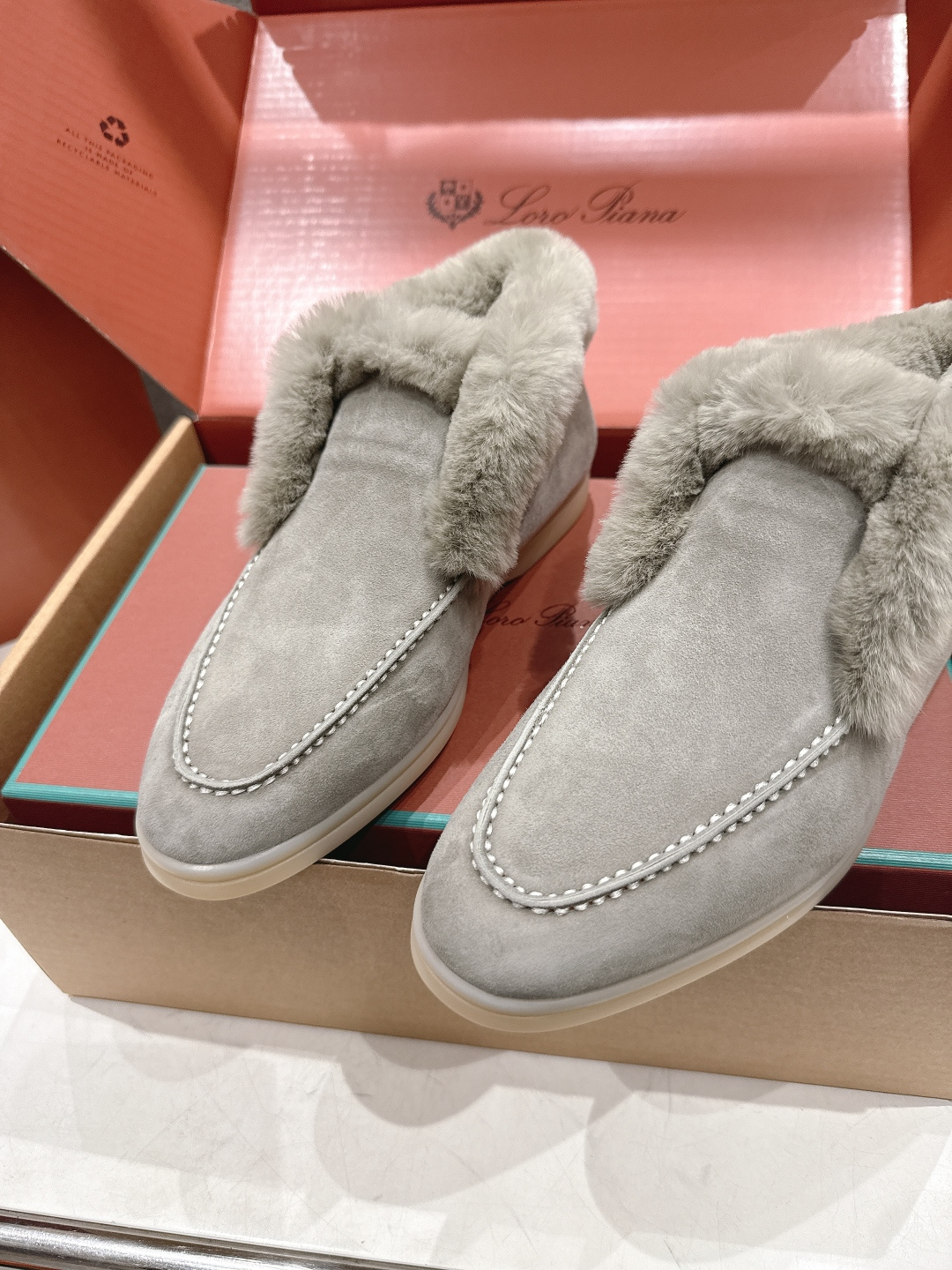 这款鞋子是AAAAA 1:1 质量 (非常棒). 使用了和原版一模一样的材料. 商标部分也保持了和洛罗皮亚纳/Loro Piana一样. 图片拍摄是实物鞋子拍摄, 您所收到的实物保证和我们图片一模一样.