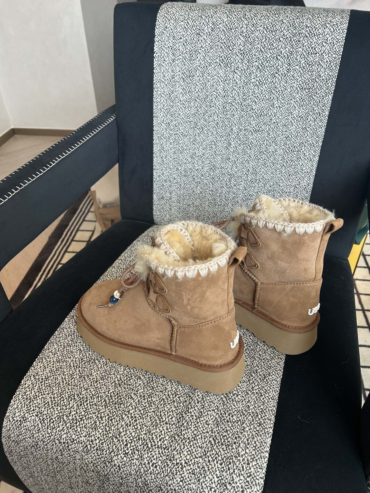 这款鞋子是AAAAA 1:1 质量 (非常棒). 使用了和原版一模一样的材料. 商标部分也保持了和UGG雪地靴一样. 图片拍摄是实物鞋子拍摄, 您所收到的实物保证和我们图片一模一样.