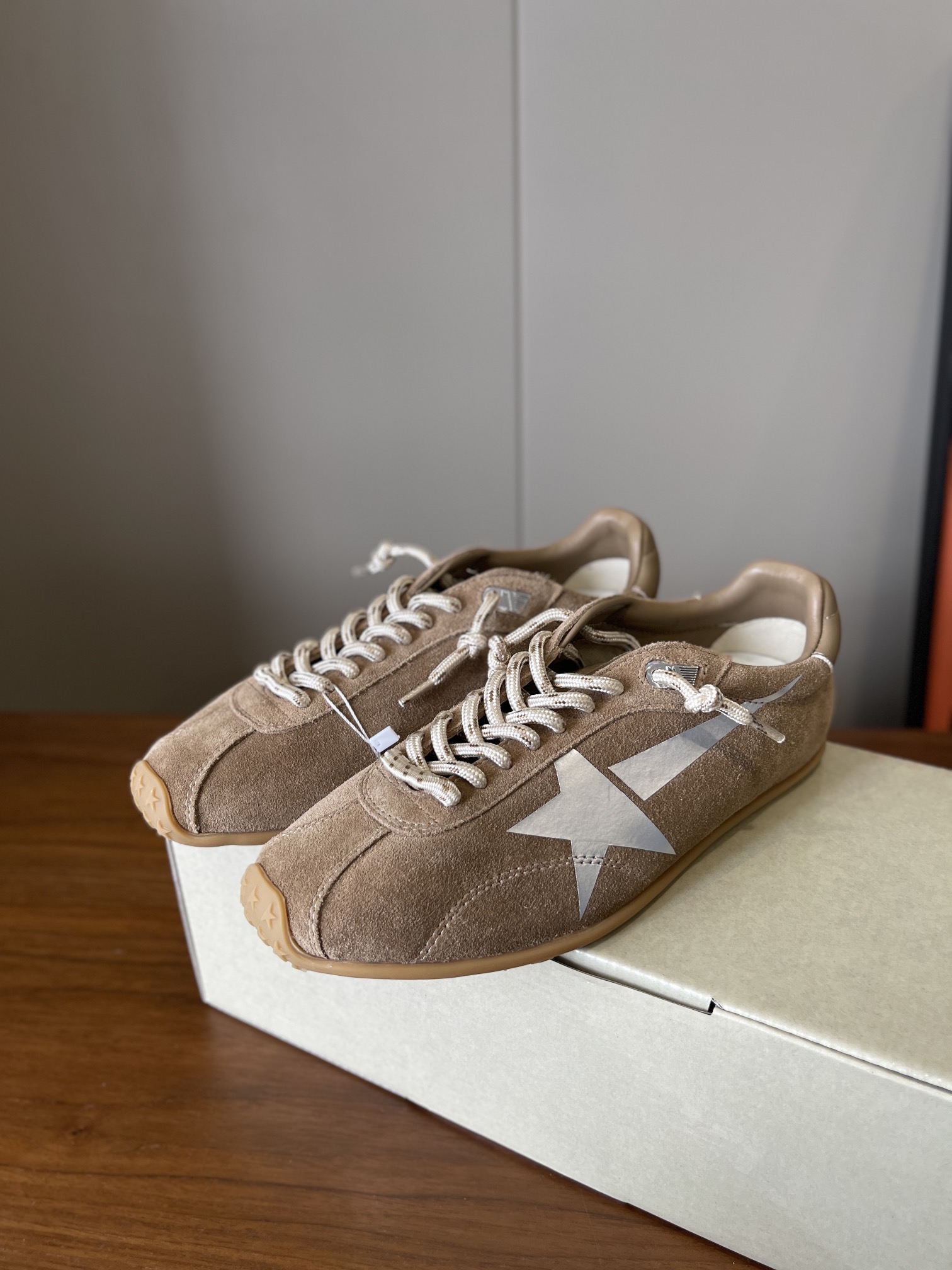 这款鞋子是AAAAA 1:1 质量 (非常棒). 使用了和原版一模一样的材料. 商标部分也保持了和Golden Goose一样. 图片拍摄是实物鞋子拍摄, 您所收到的实物保证和我们图片一模一样.