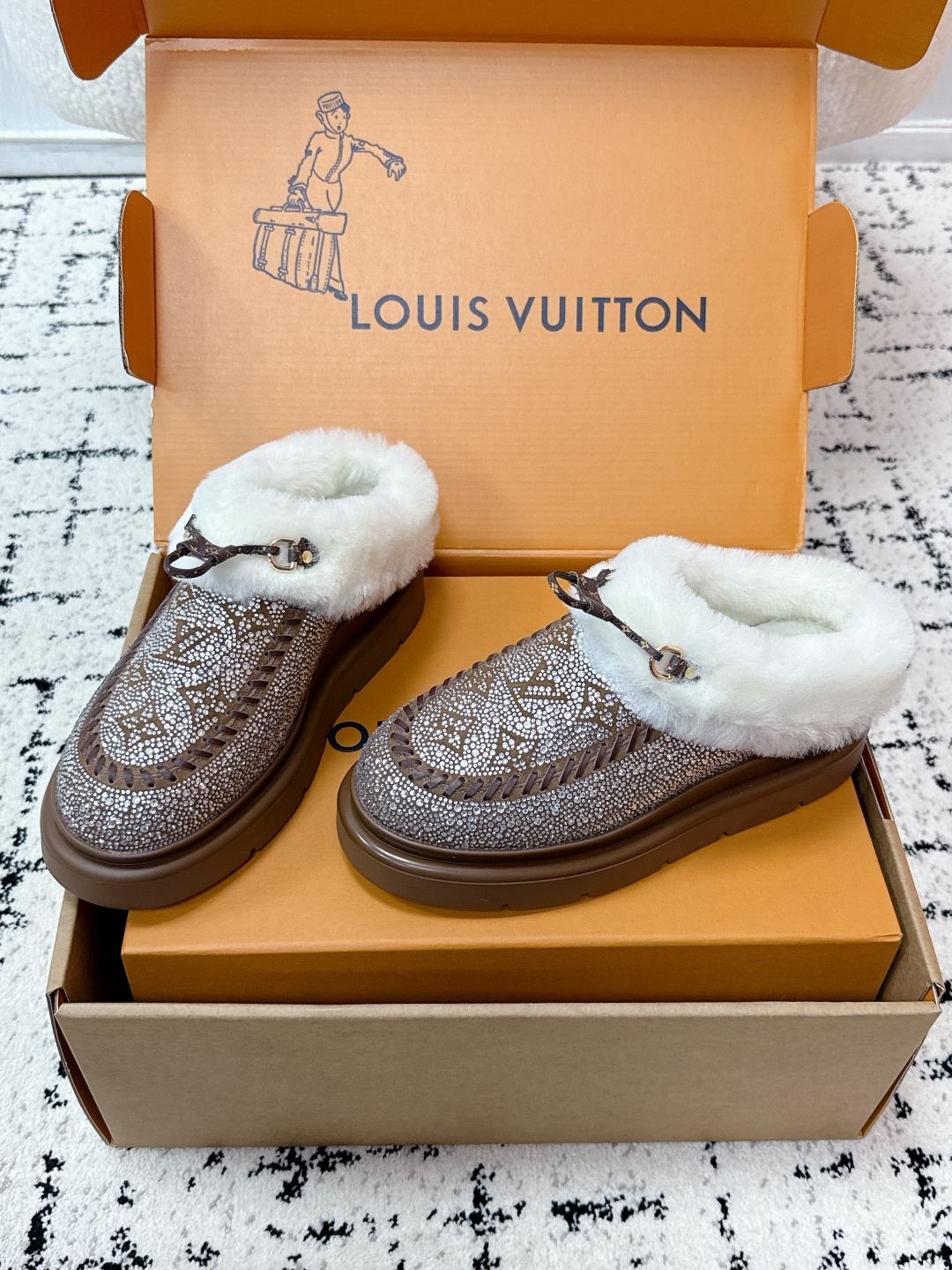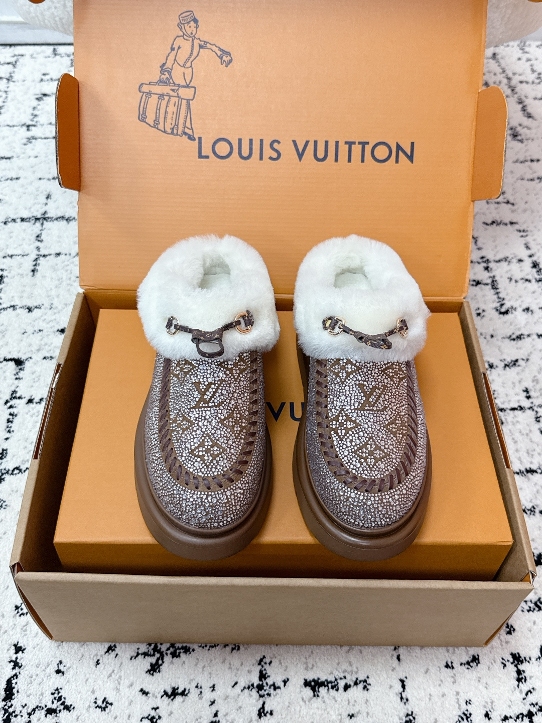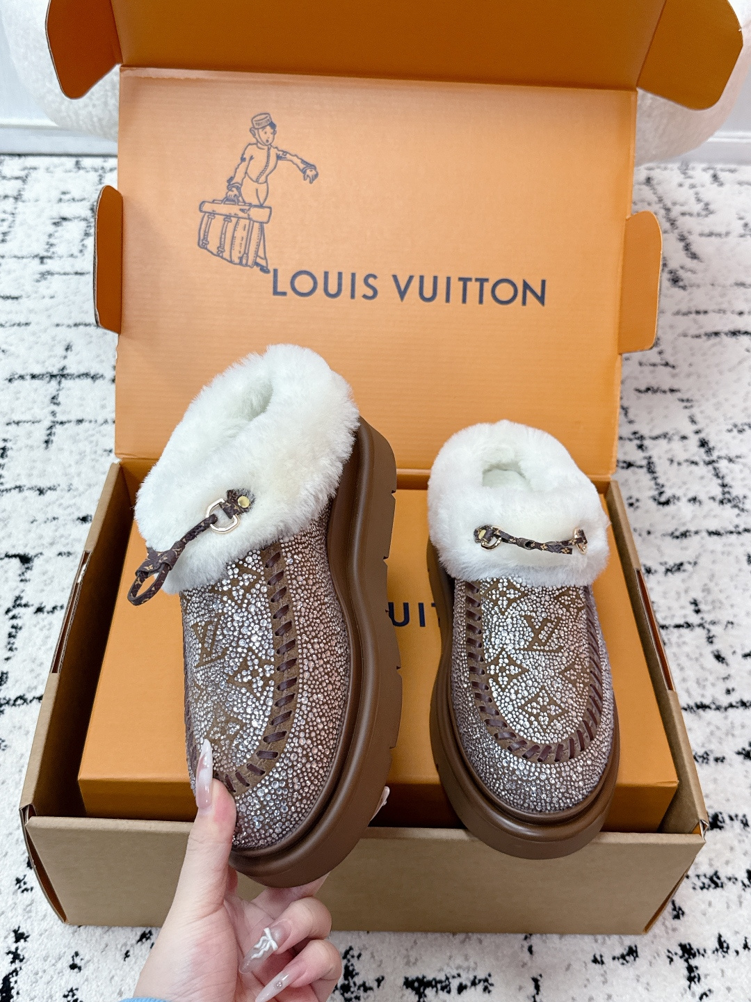 这款鞋子是AAAAA 1:1 质量 (非常棒). 使用了和原版一模一样的材料. 商标部分也保持了和路易威登/Louis Vuitton一样. 图片拍摄是实物鞋子拍摄, 您所收到的实物保证和我们图片一模一样.