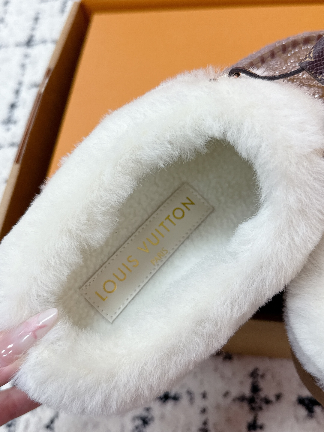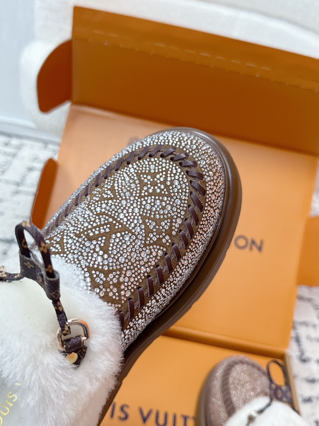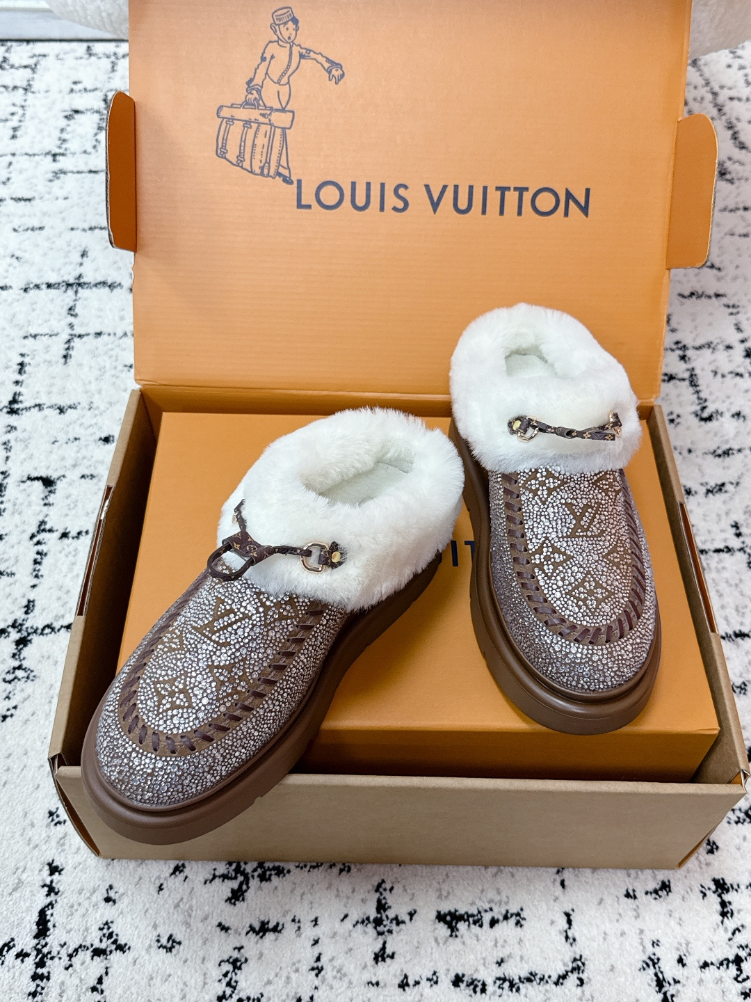 这款鞋子是AAAAA 1:1 质量 (非常棒). 使用了和原版一模一样的材料. 商标部分也保持了和路易威登/Louis Vuitton一样. 图片拍摄是实物鞋子拍摄, 您所收到的实物保证和我们图片一模一样.