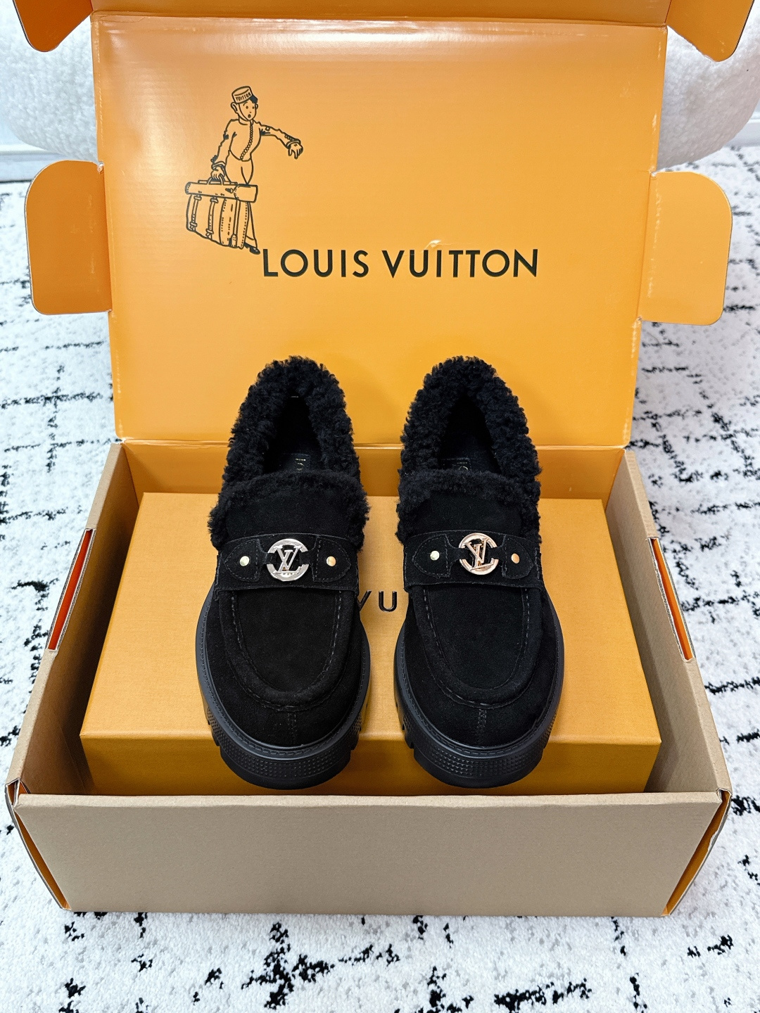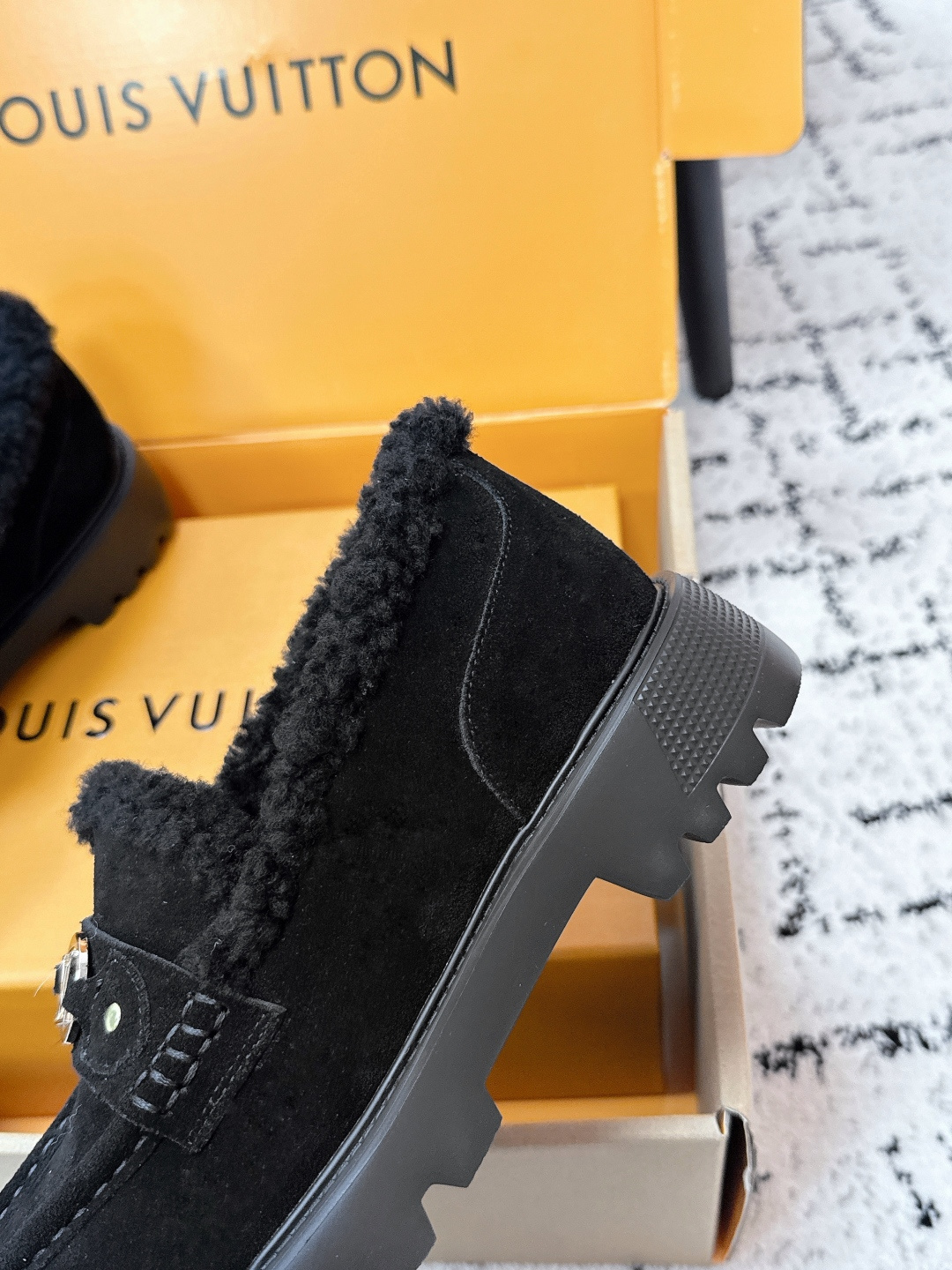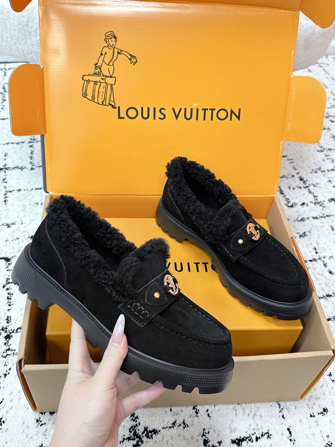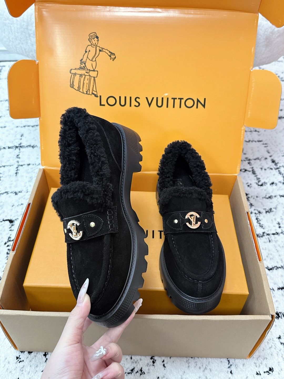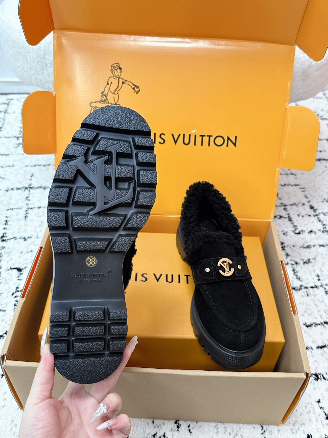 这款鞋子是AAAAA 1:1 质量 (非常棒). 使用了和原版一模一样的材料. 商标部分也保持了和路易威登/Louis Vuitton一样. 图片拍摄是实物鞋子拍摄, 您所收到的实物保证和我们图片一模一样.