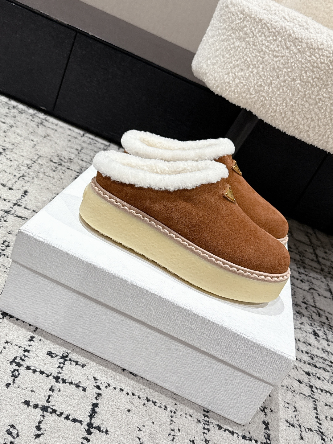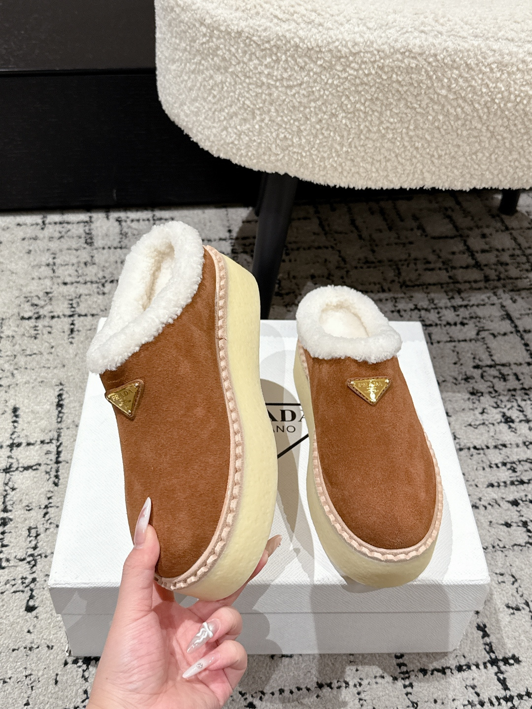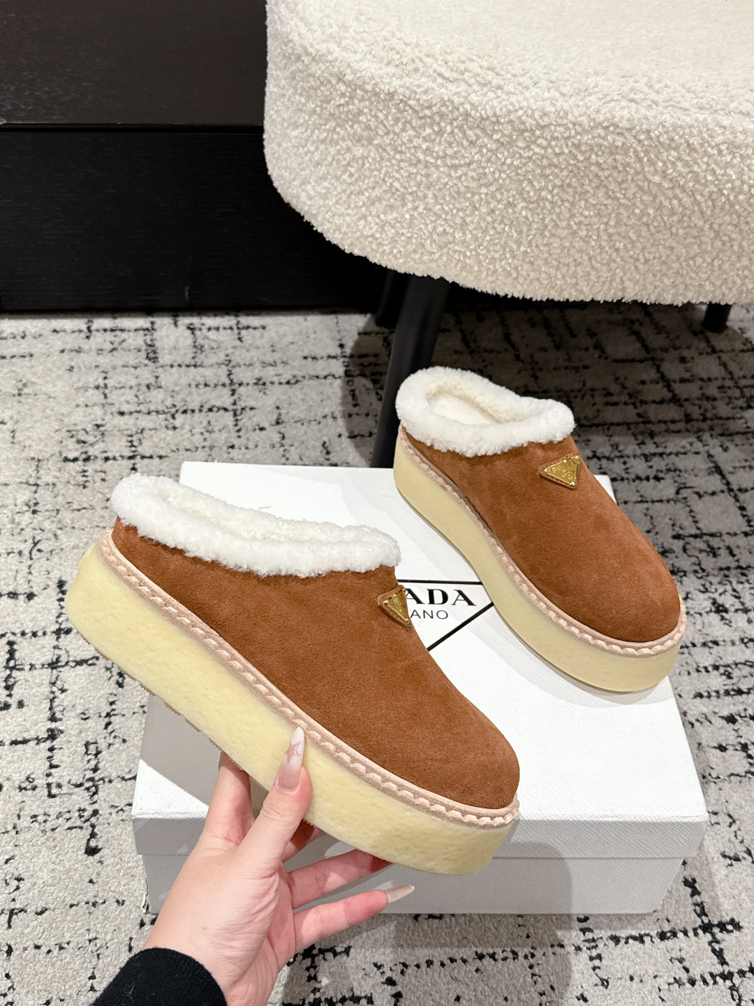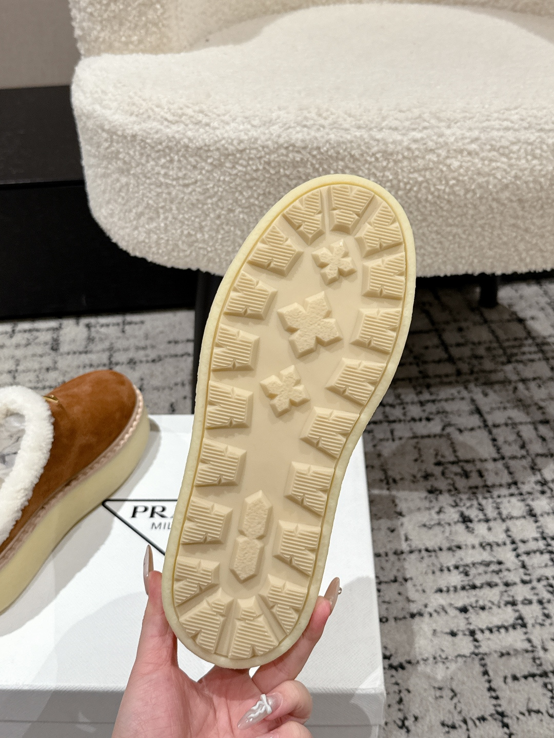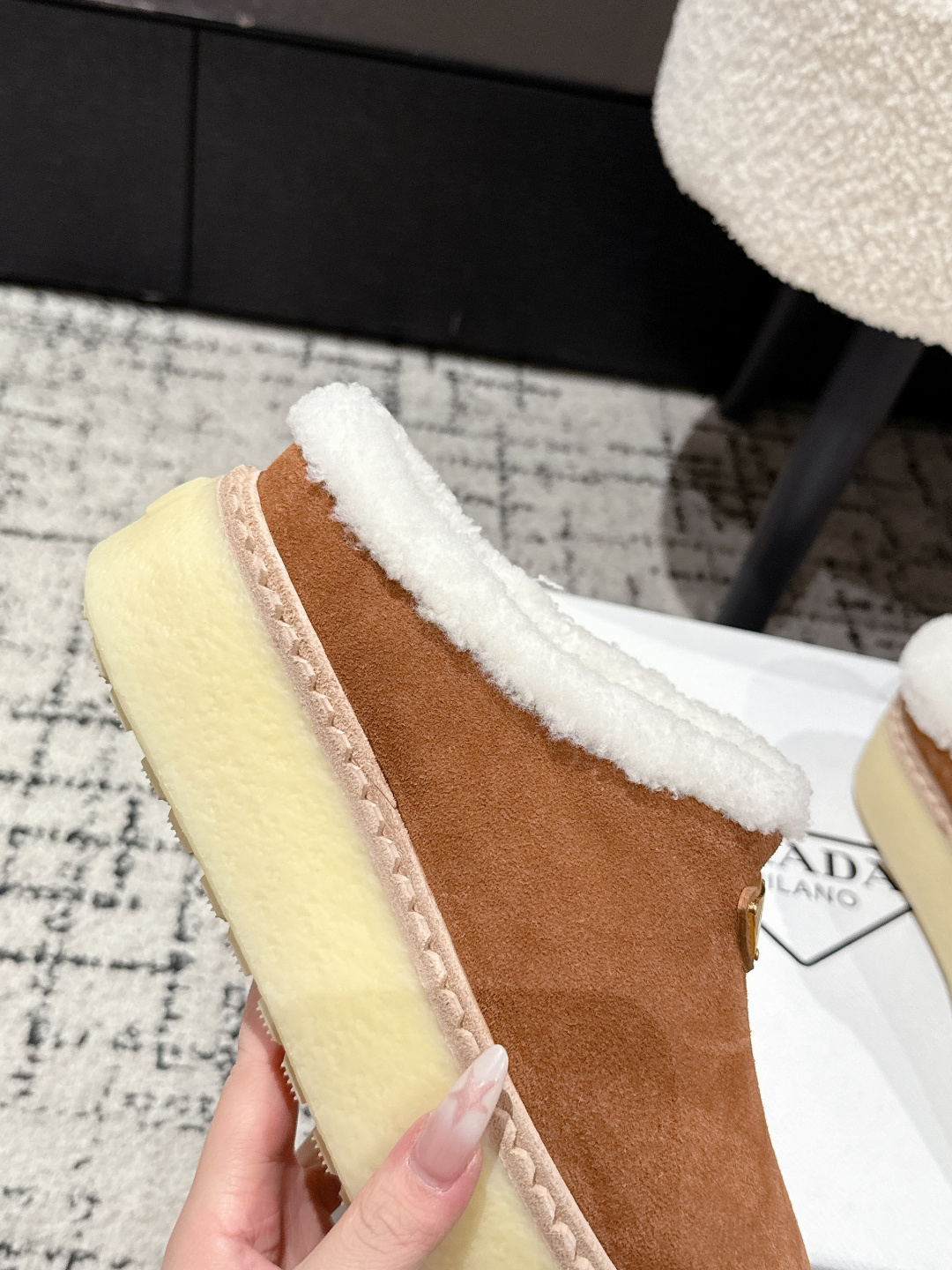 这款鞋子是AAAAA 1:1 质量 (非常棒). 使用了和原版一模一样的材料. 商标部分也保持了和普拉达/Prada一样. 图片拍摄是实物鞋子拍摄, 您所收到的实物保证和我们图片一模一样.