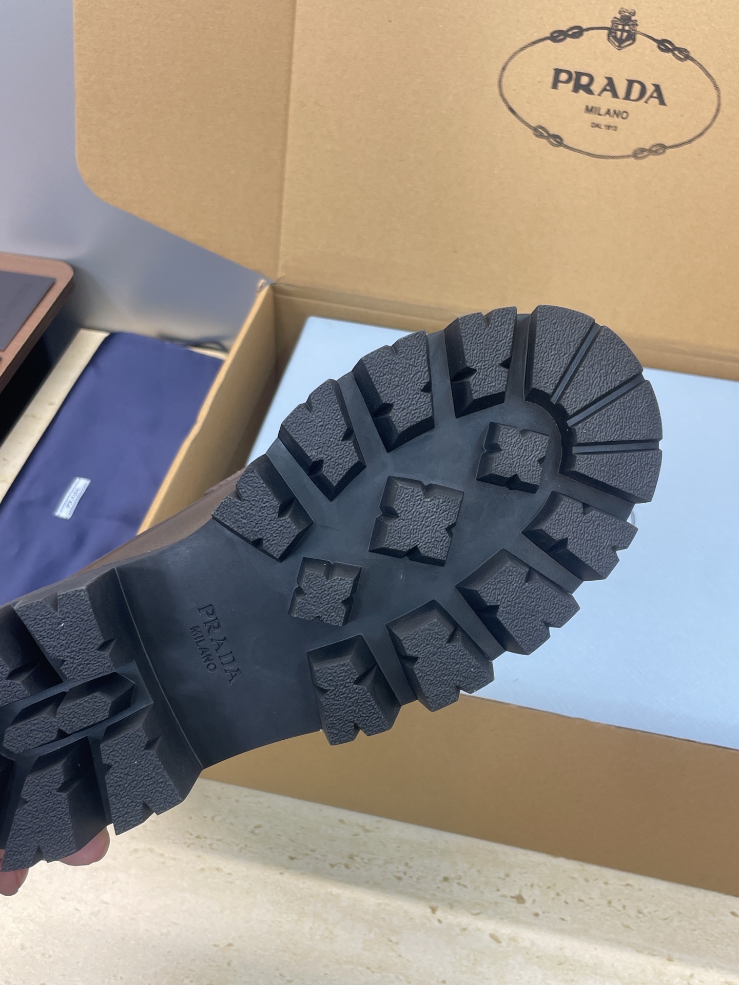 这款鞋子是AAAAA 1:1 质量 (非常棒). 使用了和原版一模一样的材料. 商标部分也保持了和普拉达/Prada一样. 图片拍摄是实物鞋子拍摄, 您所收到的实物保证和我们图片一模一样.